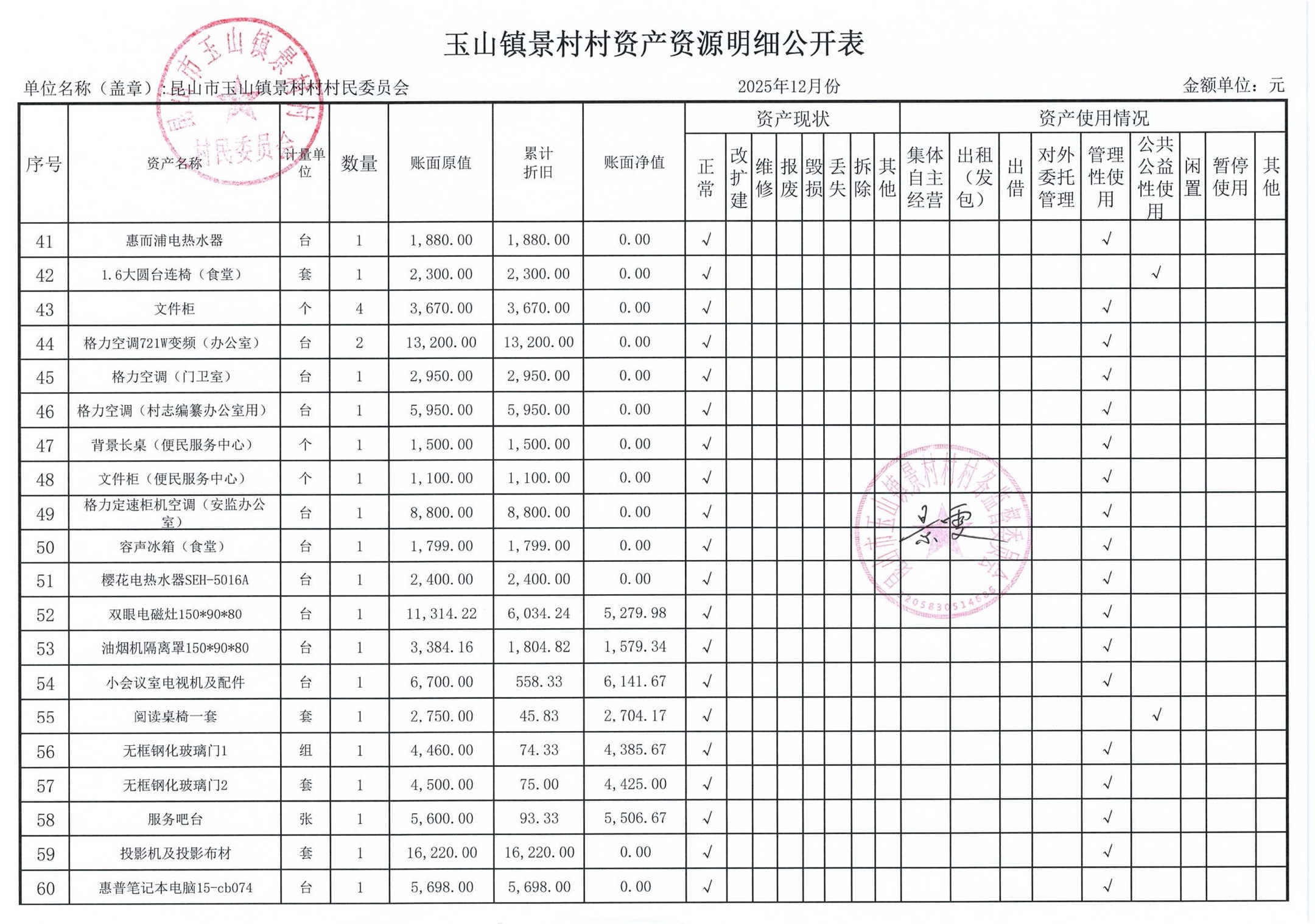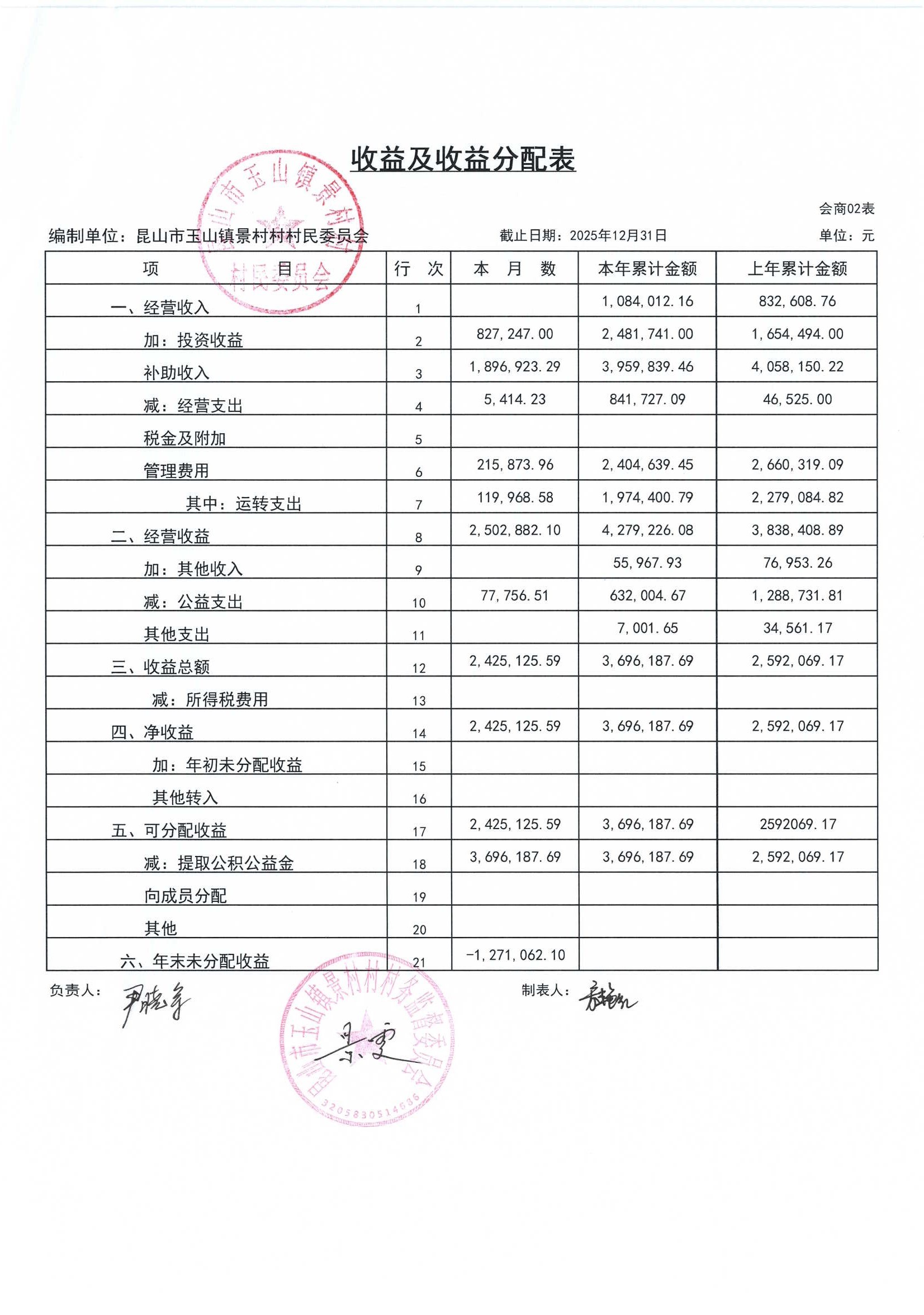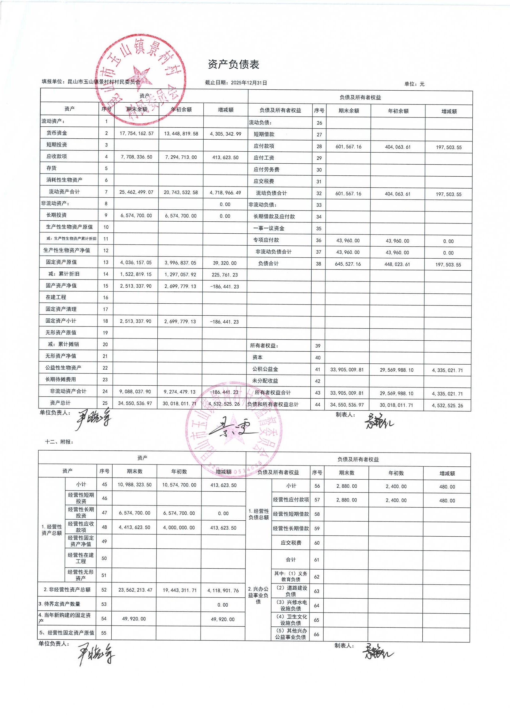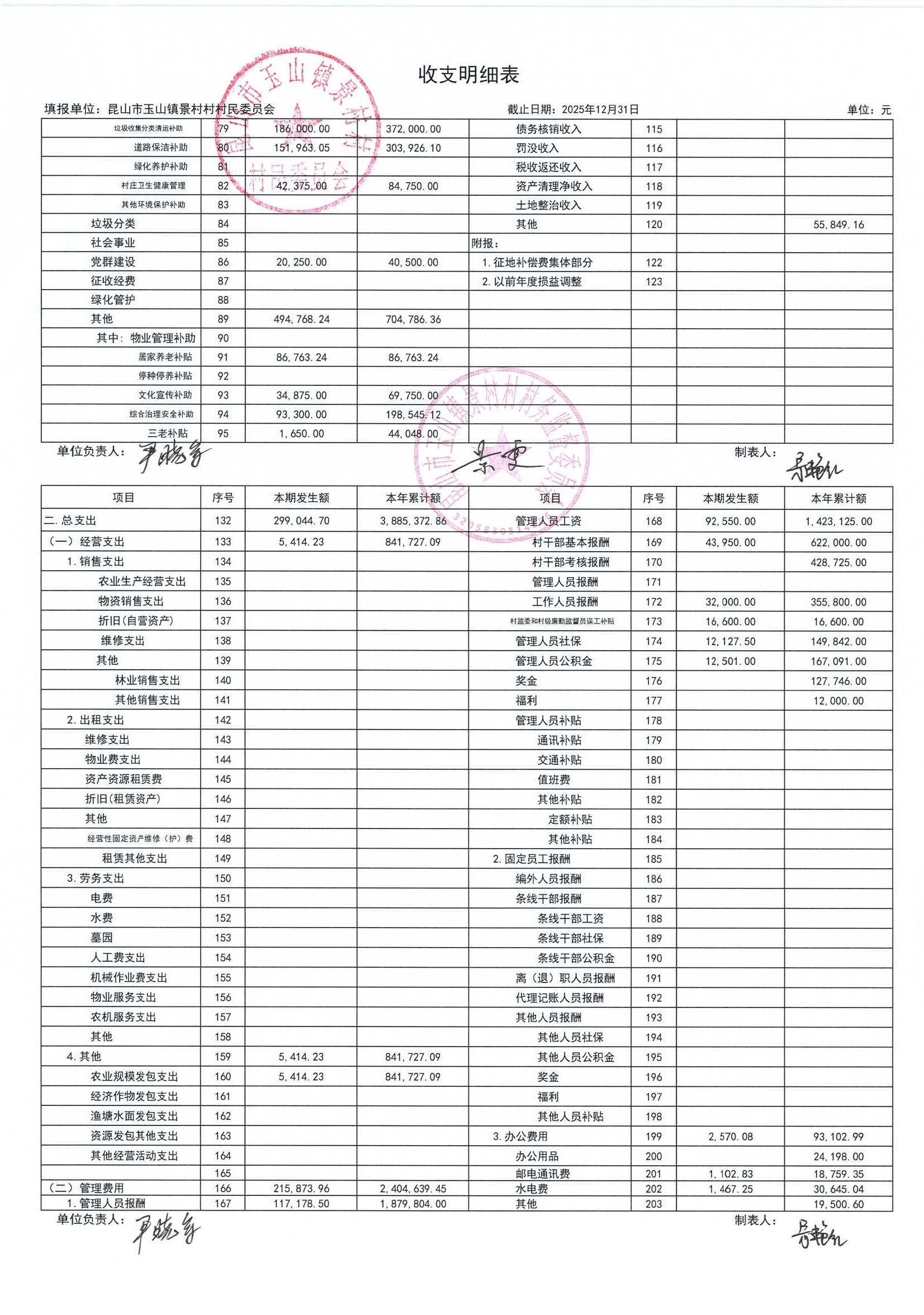 高新区景村村委会2026年1月财务公开: