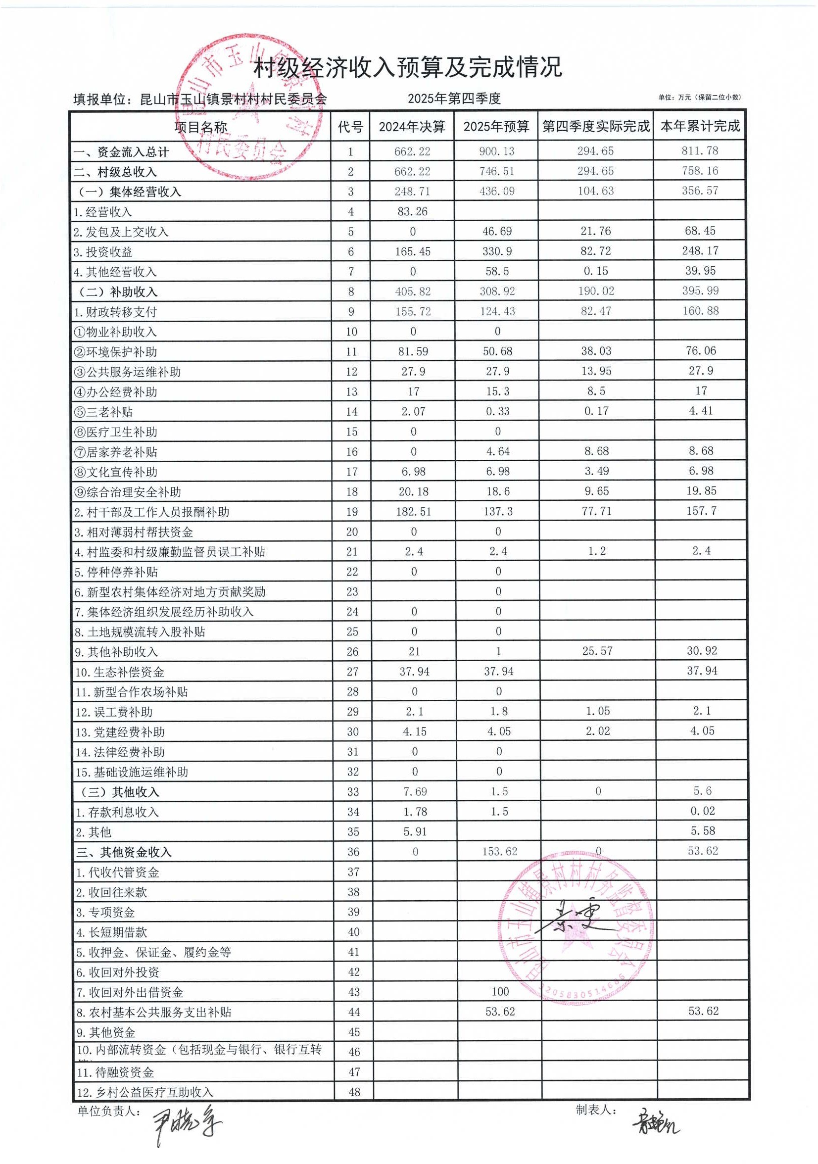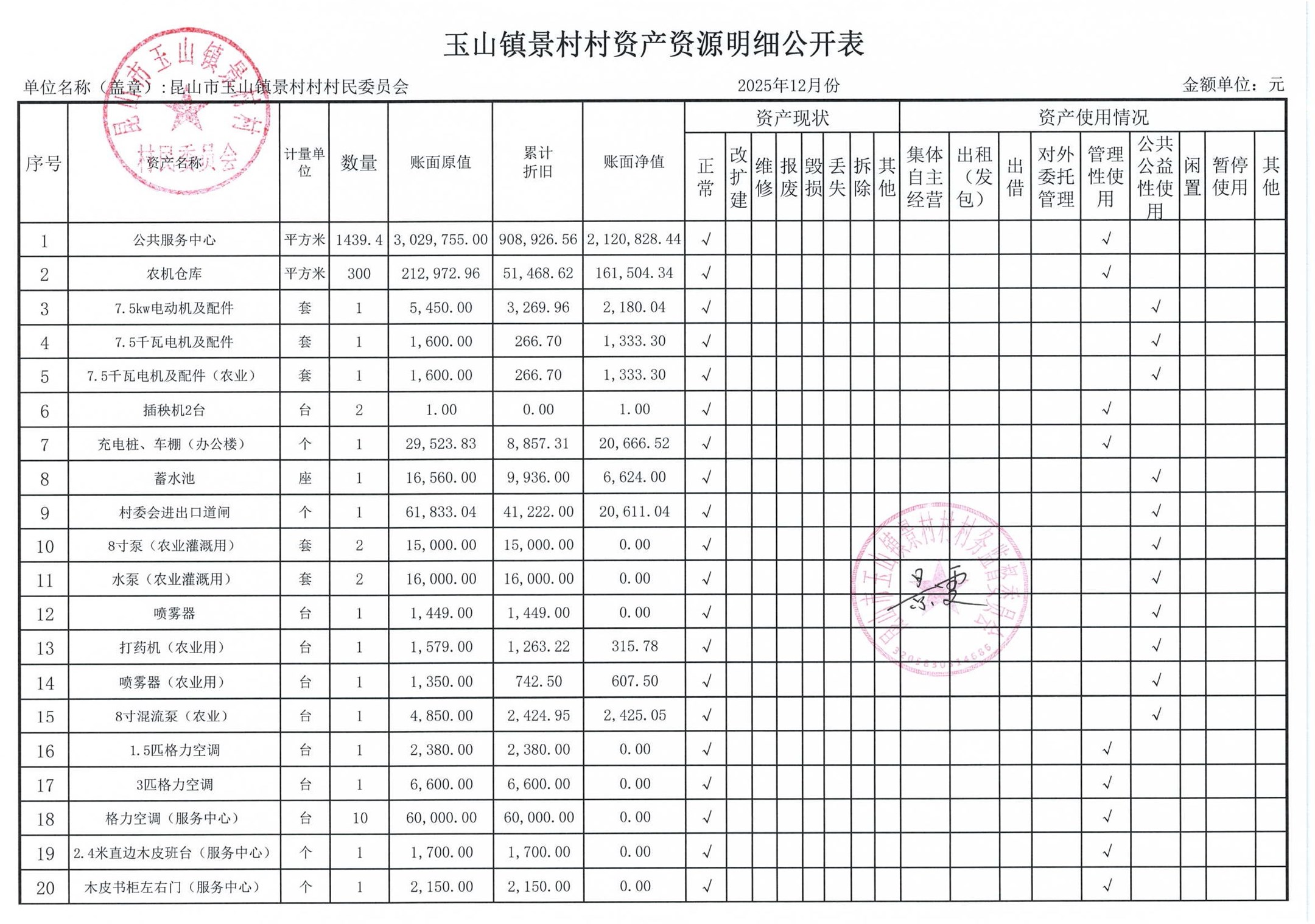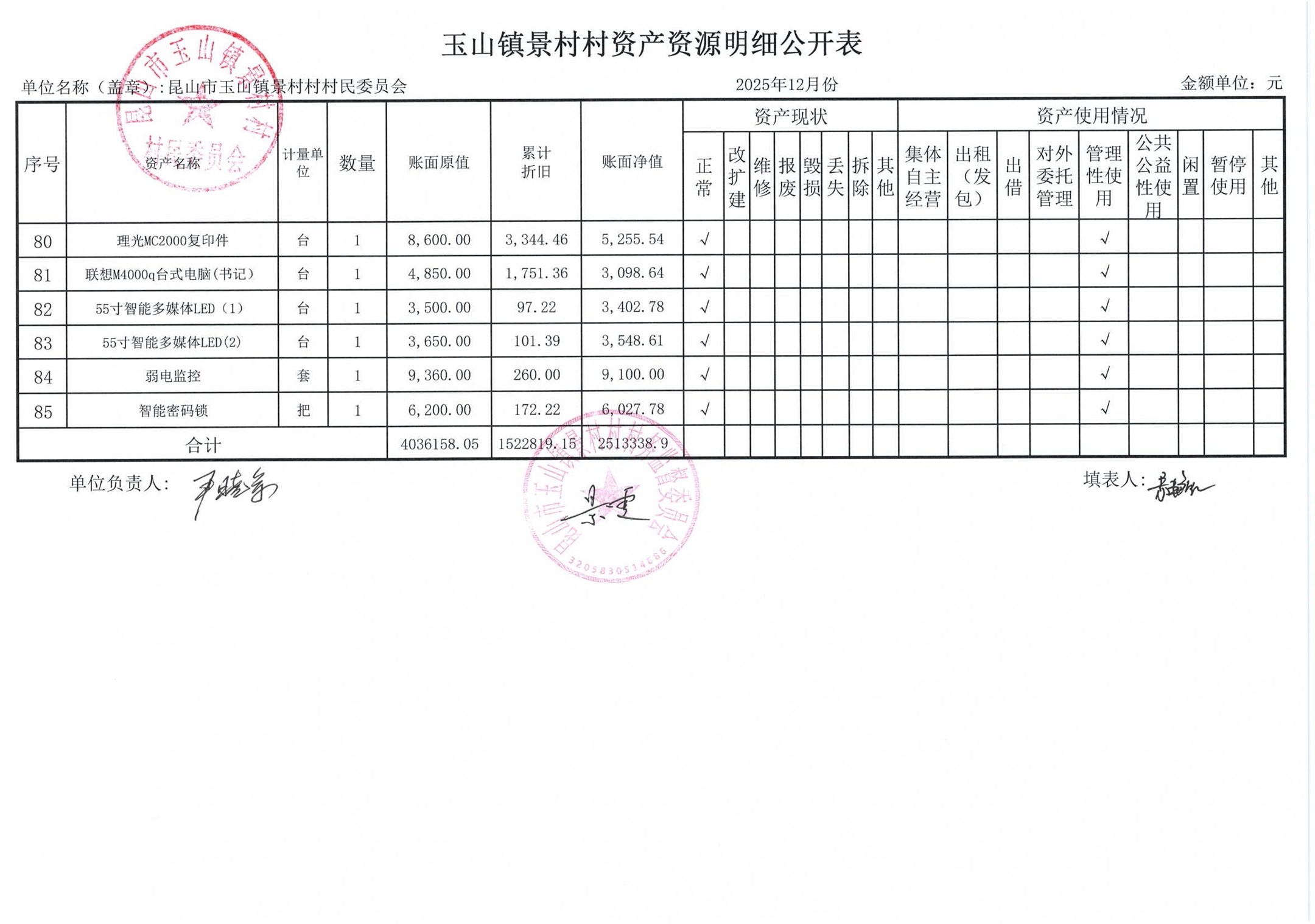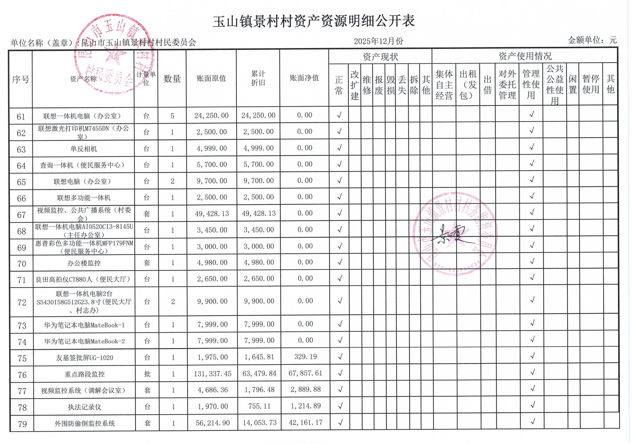 高新区景村村委会2026年1月财务公开: