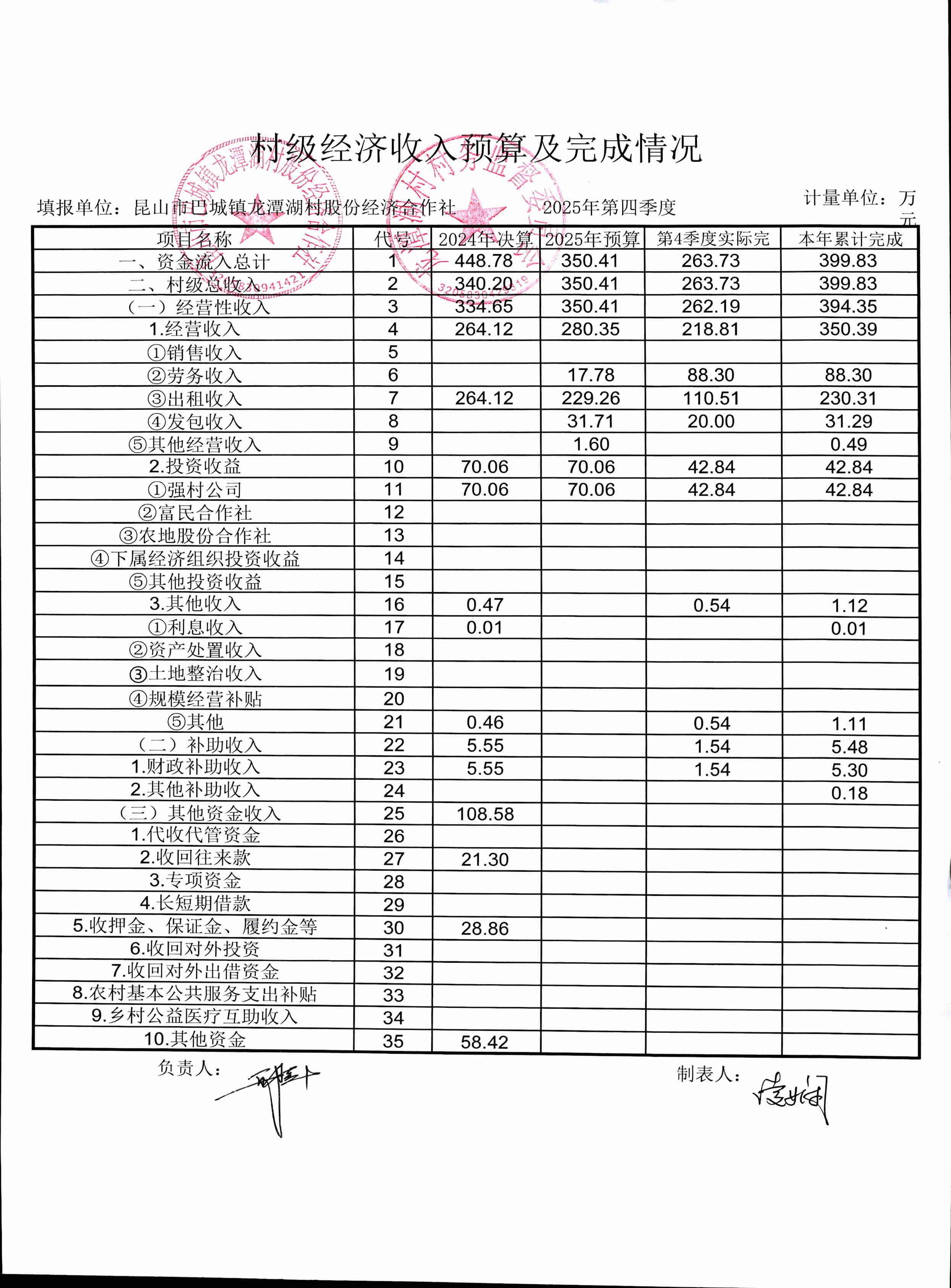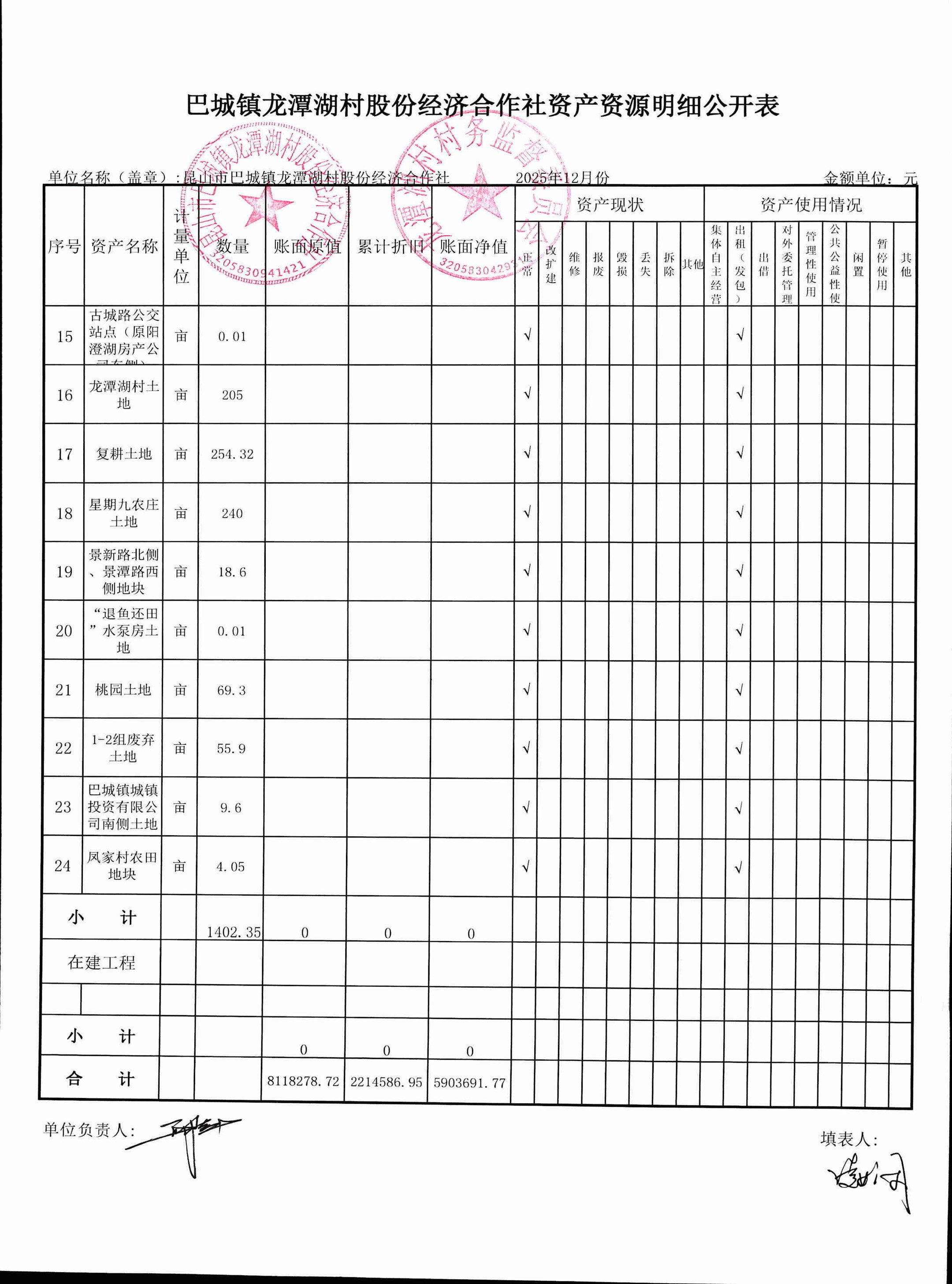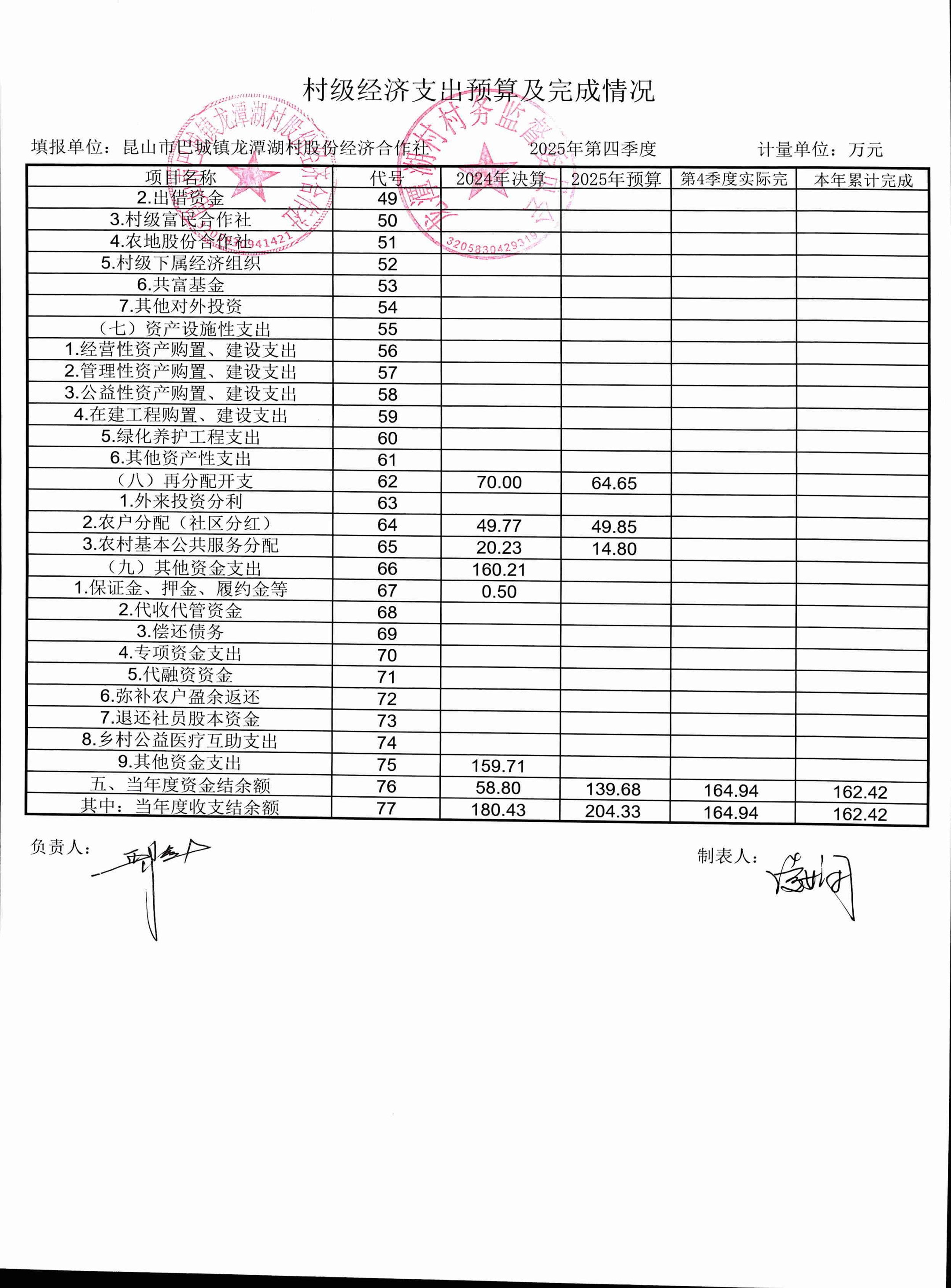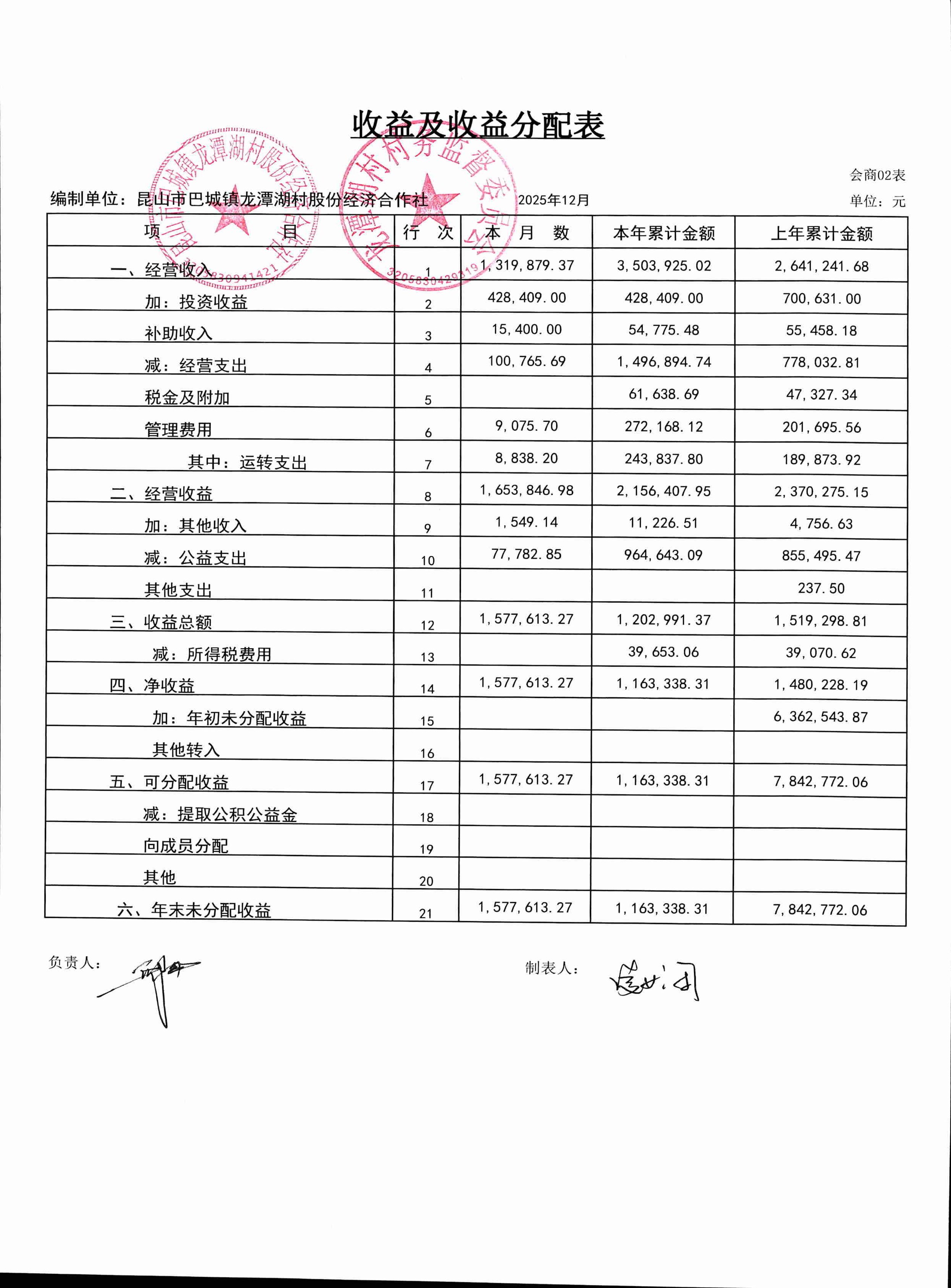 2026年1月份龙潭湖村股份经济合作社财务公开