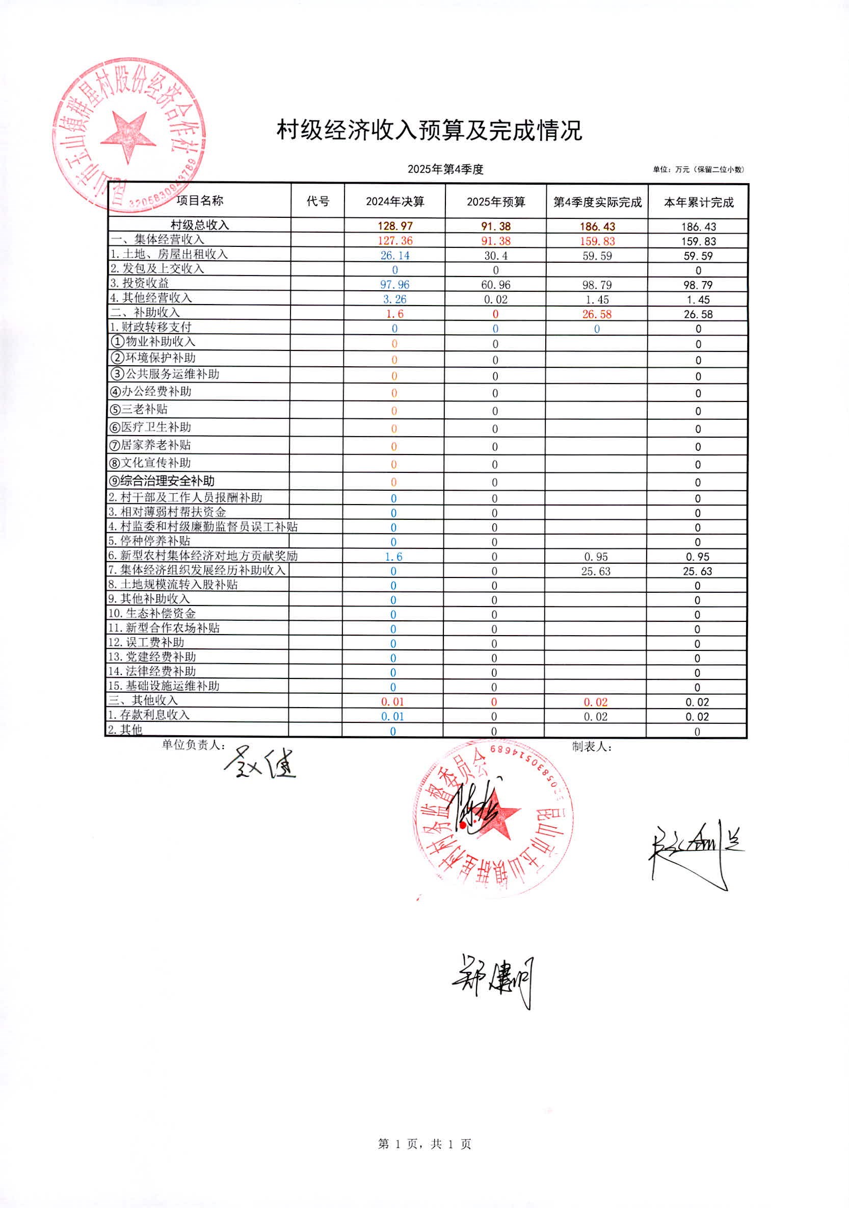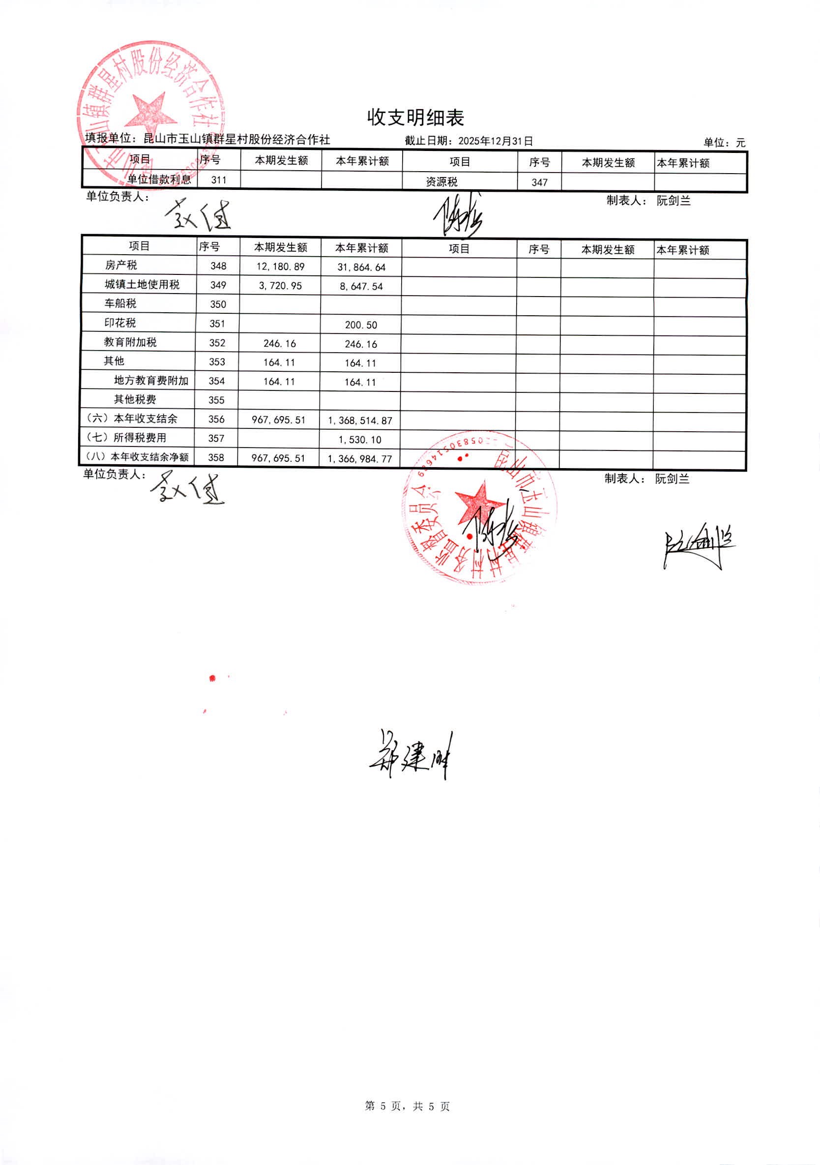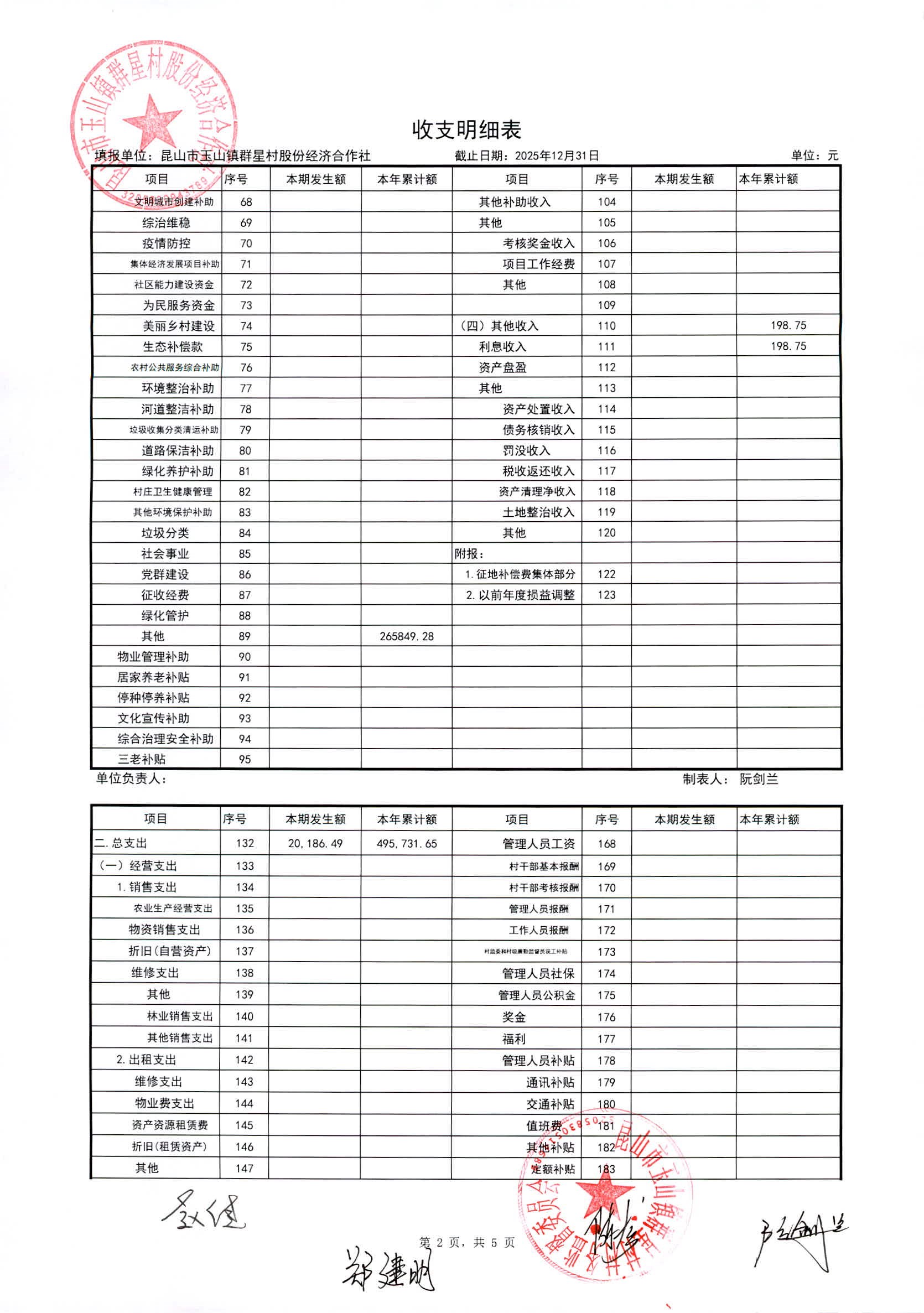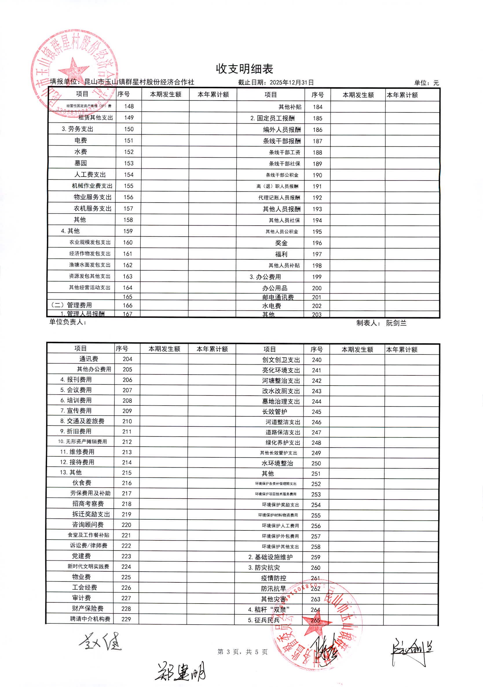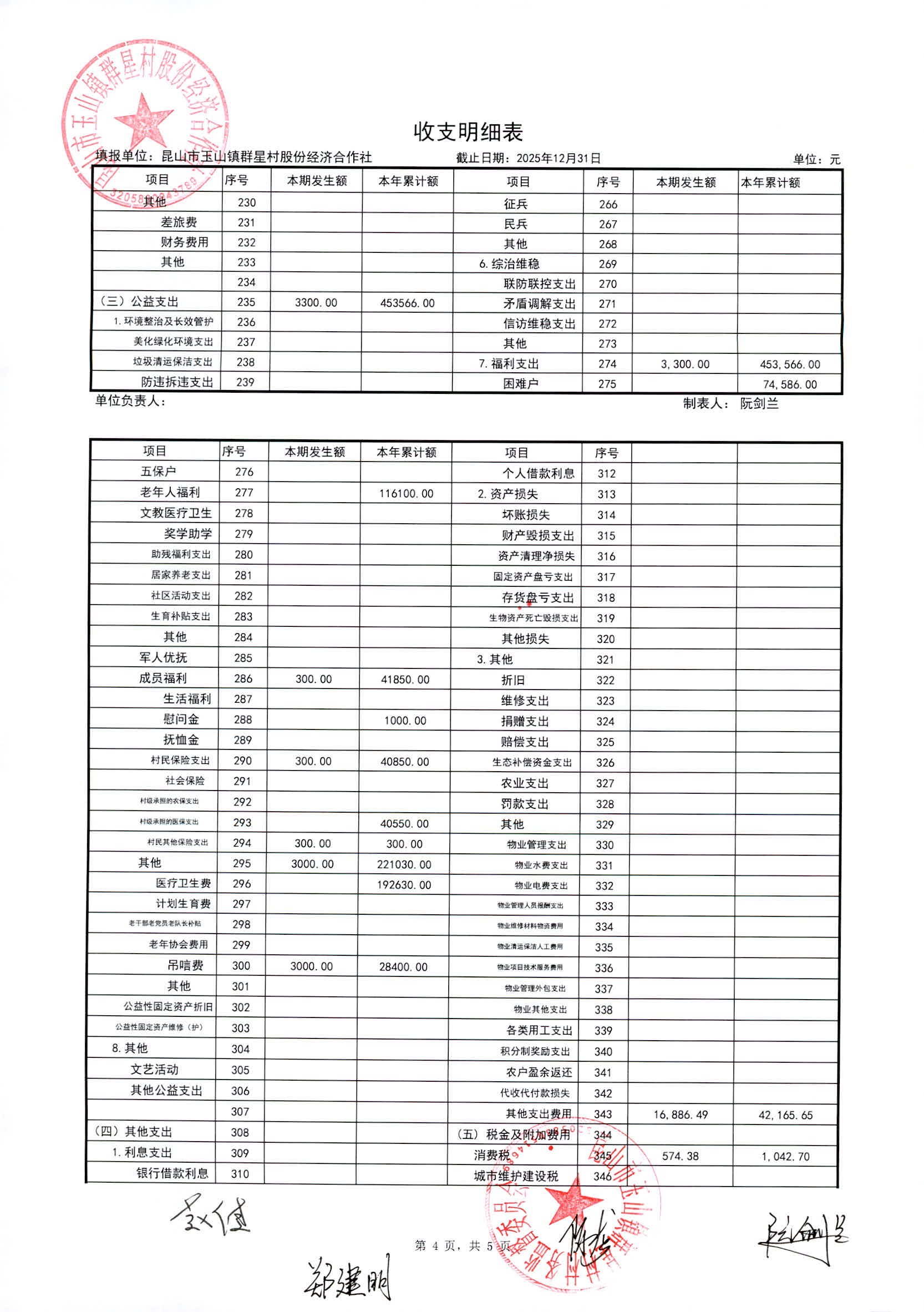 昆山高新区群星村2026年01月份公开股份经济合作社2025年12月财务信息