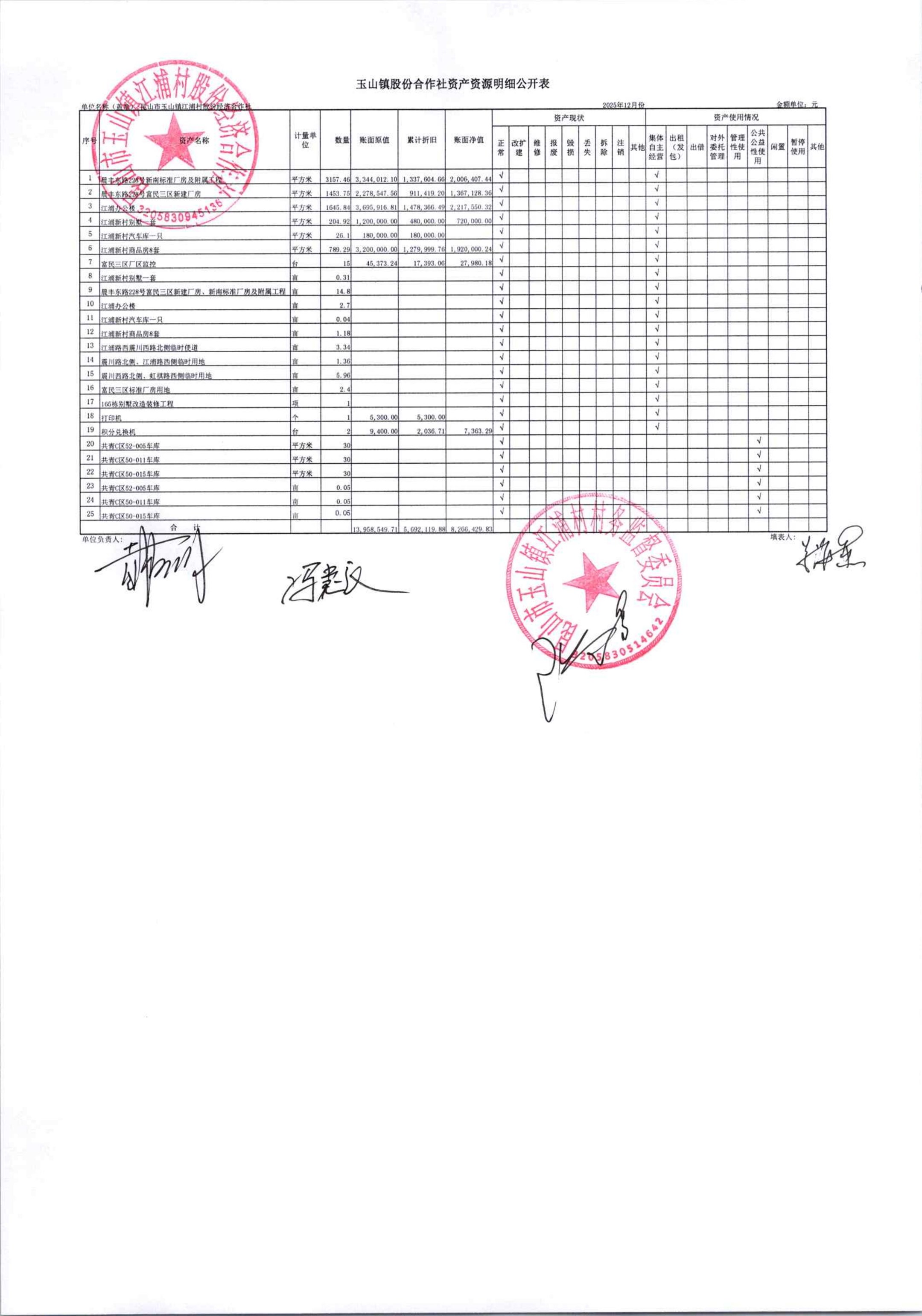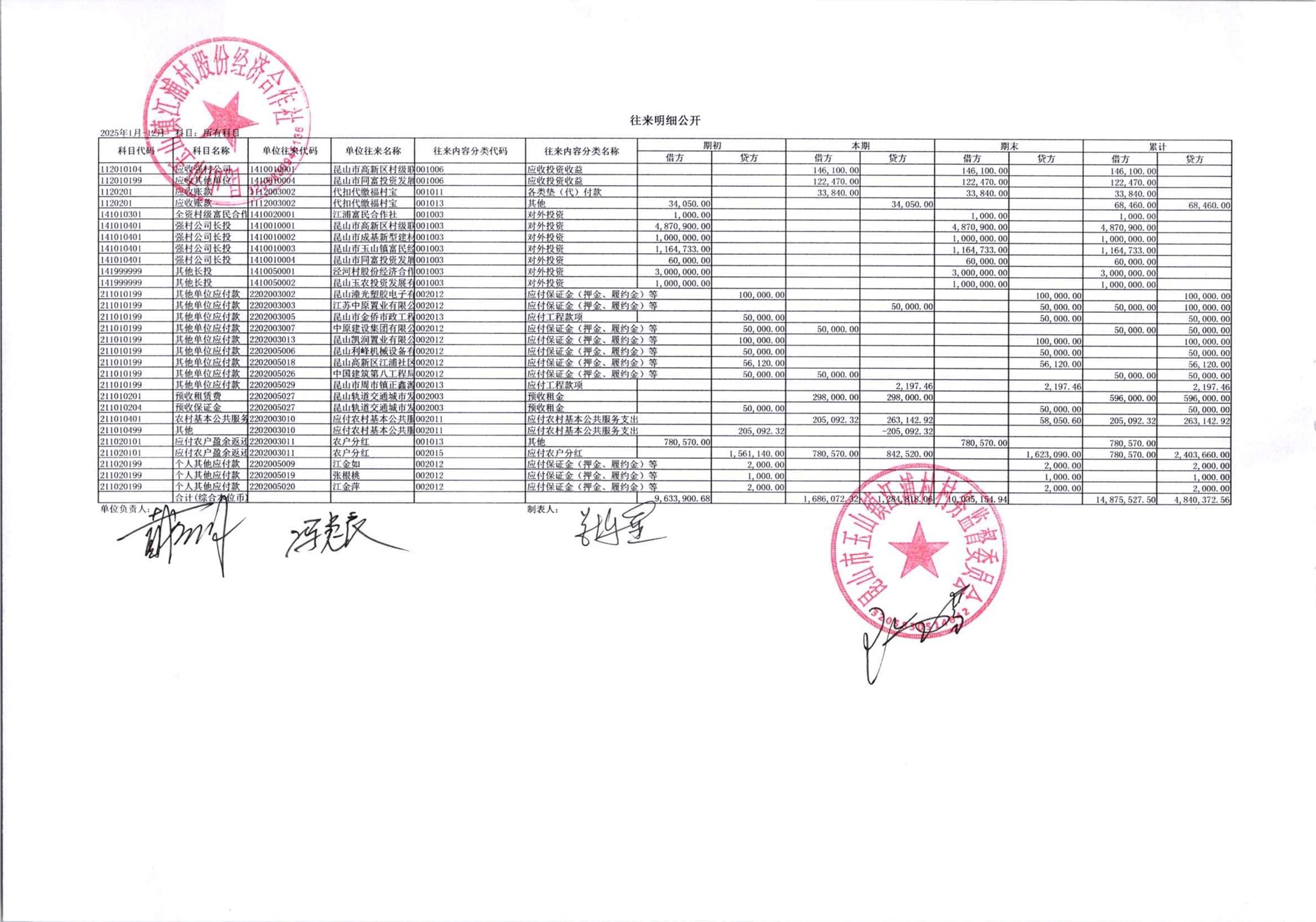 2026年江浦村股份经济合作社1月份财务公开及公示照片