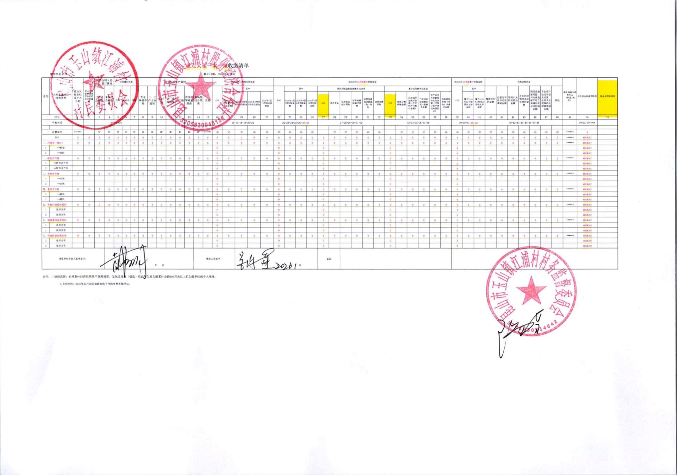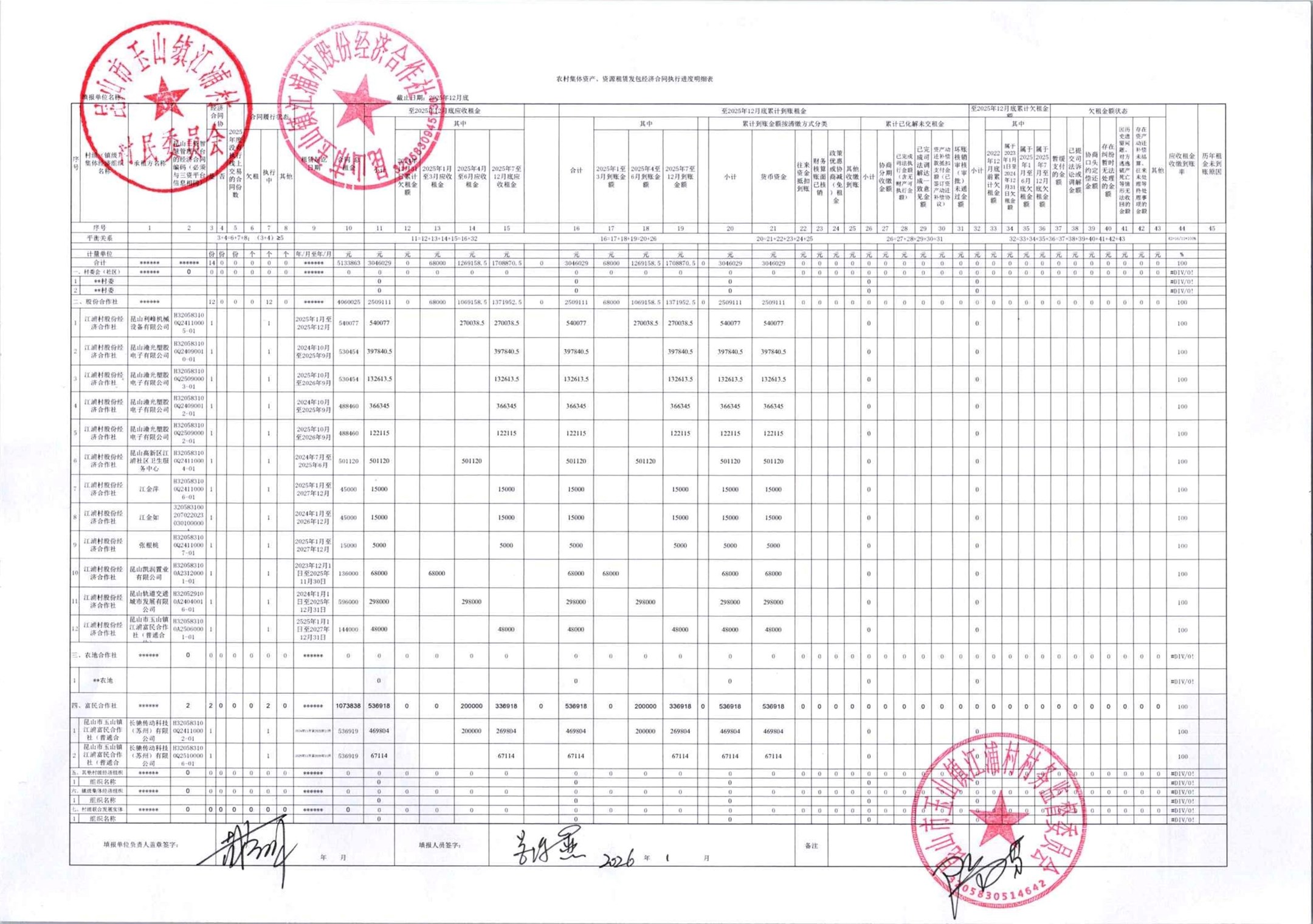 2026年江浦村和江浦村股份经济合作社第四季度清缴欠租财务公开
