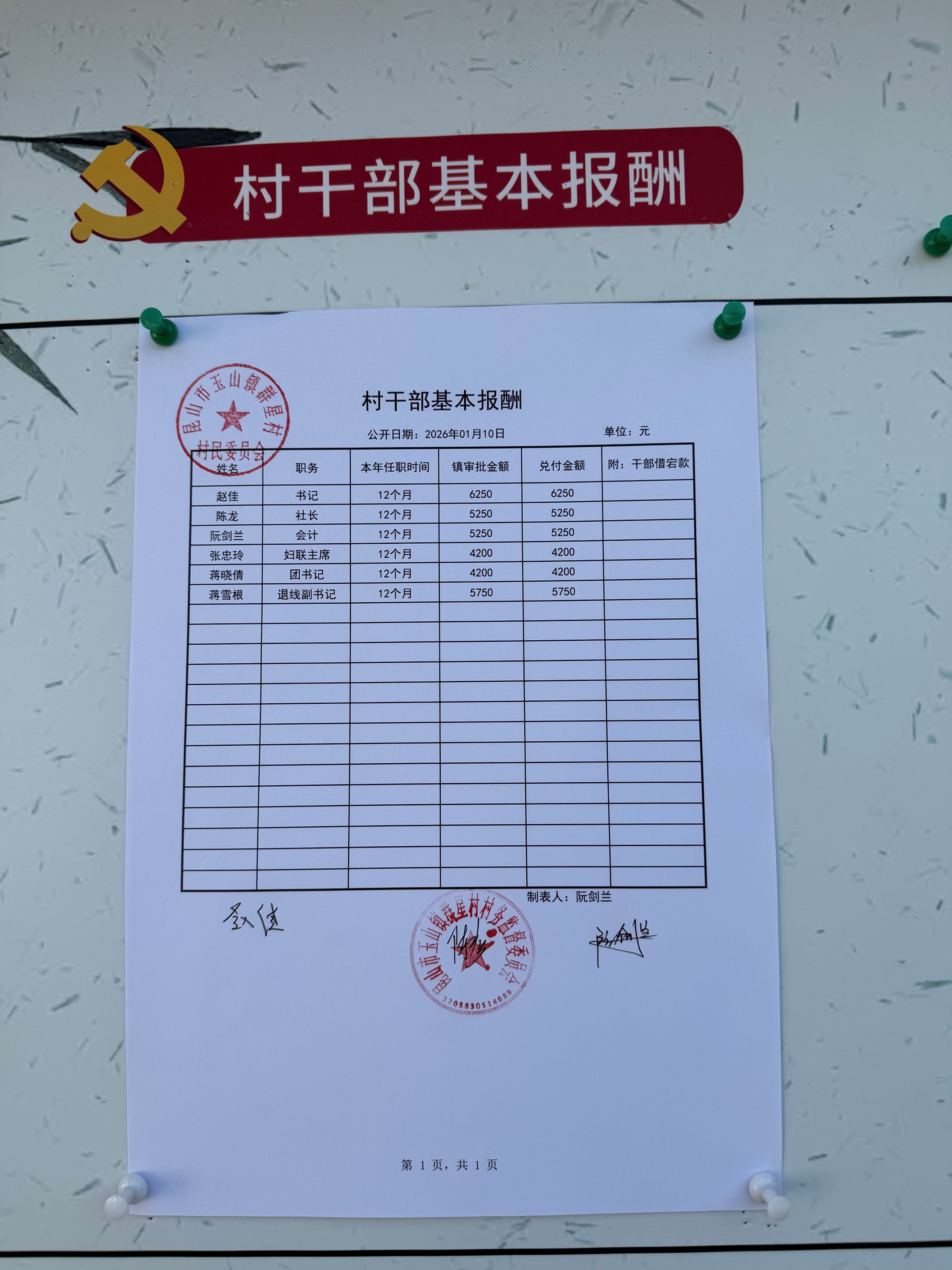 昆山高新区群星村2026年01月份公开村干部基本报酬信息公开图片