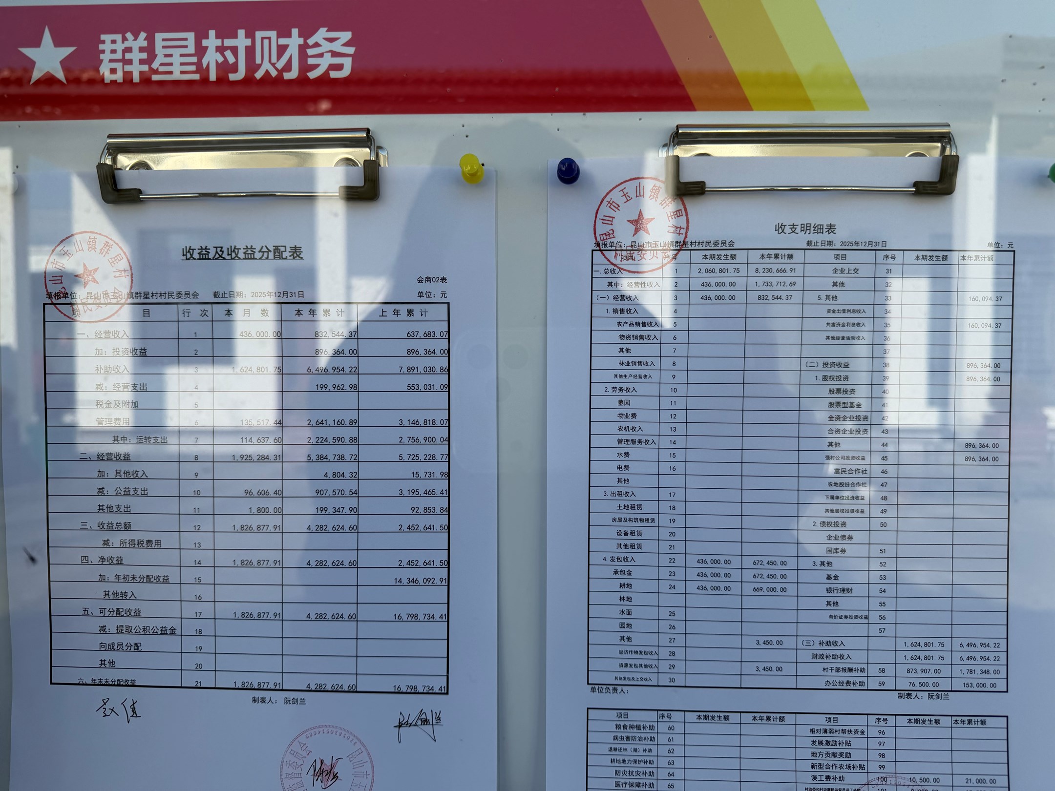 昆山高新区群星村2026年01月财务公开2025年12月财务信息图片