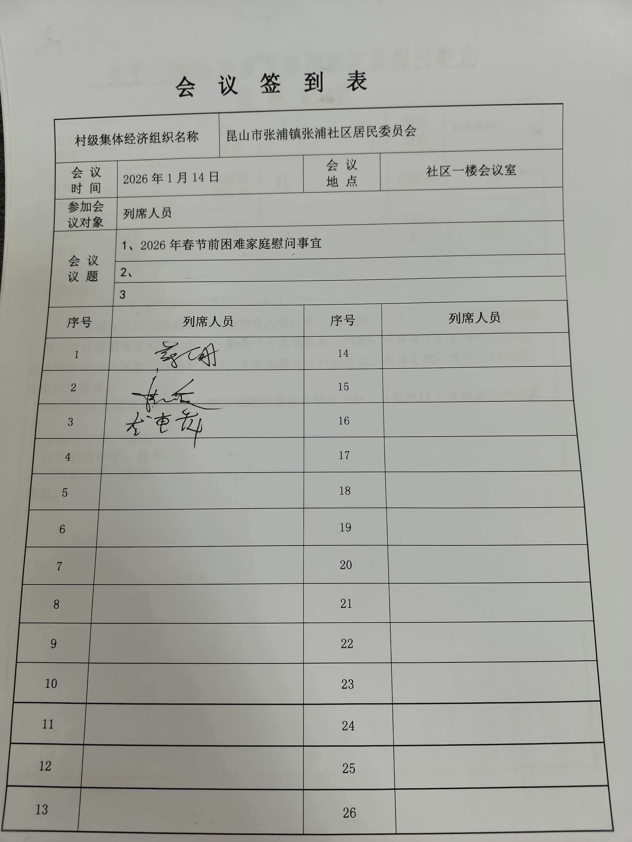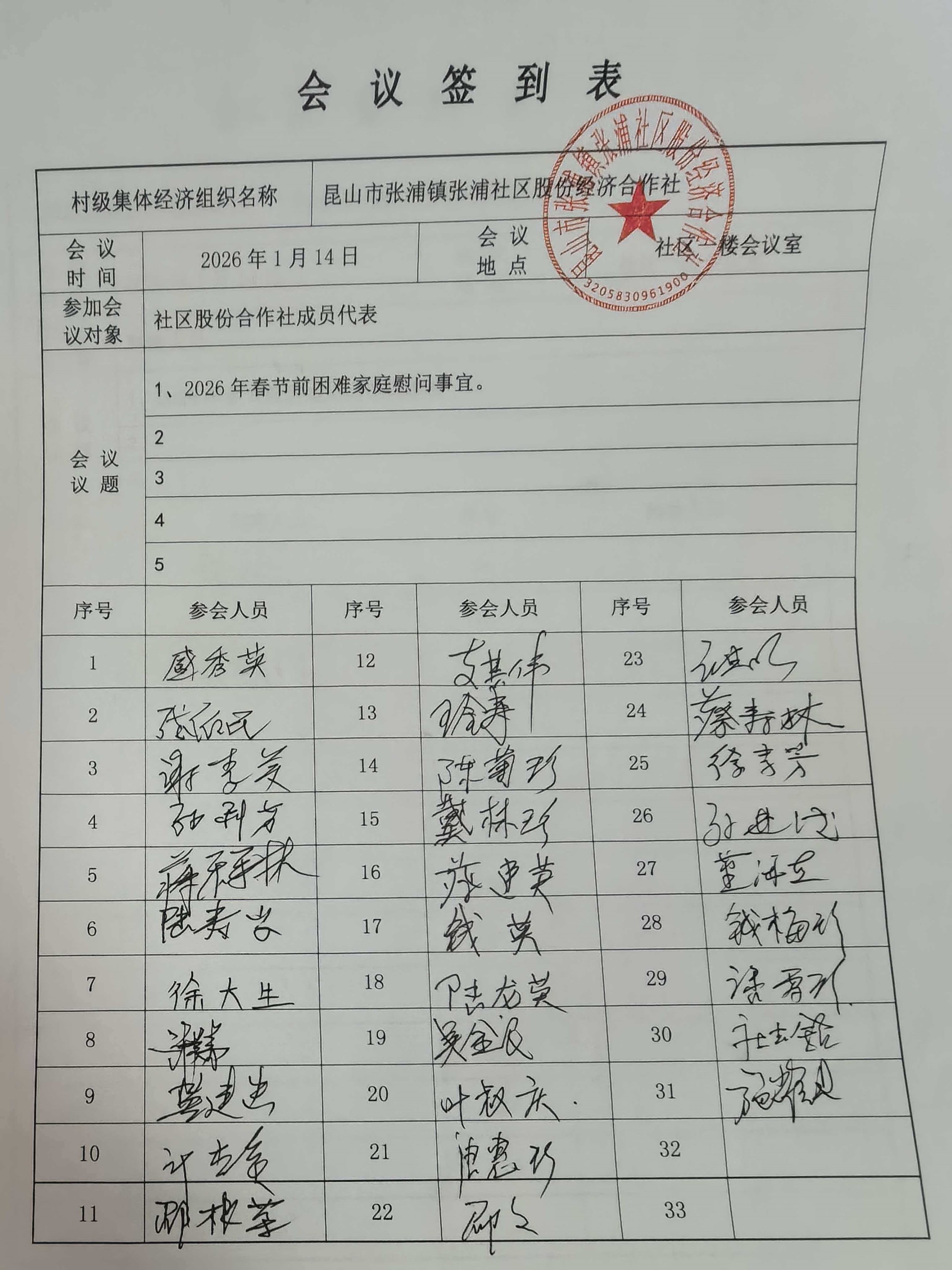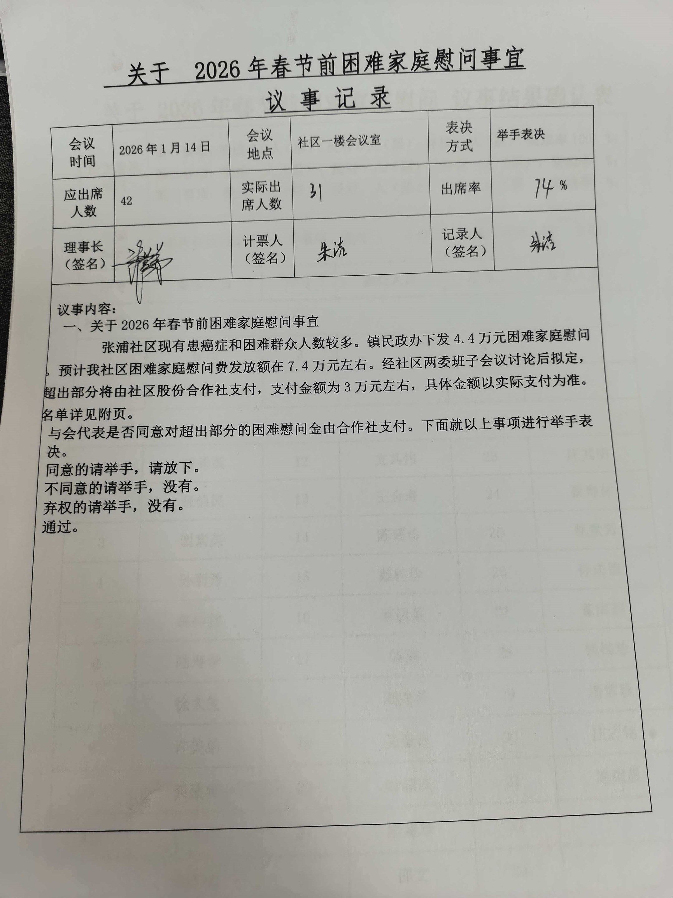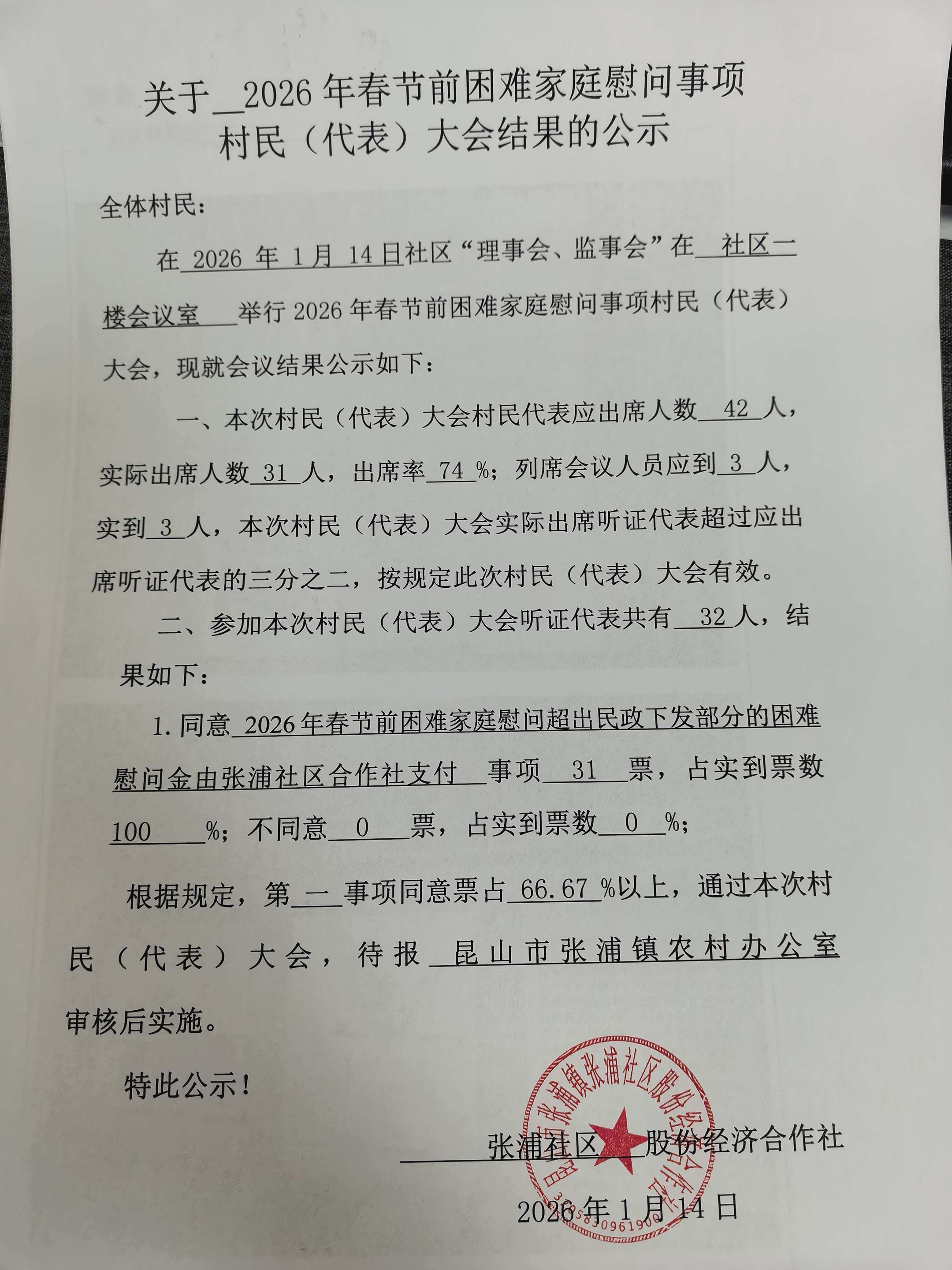 关于2025年度张浦社区股份经济合作社——2026年春节前困难家庭慰问事项决策听证