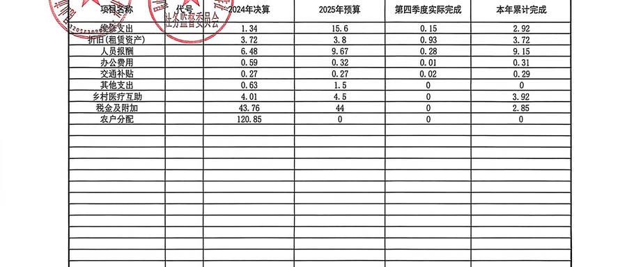 2025年周泾村股份经济合作社12月财务公示