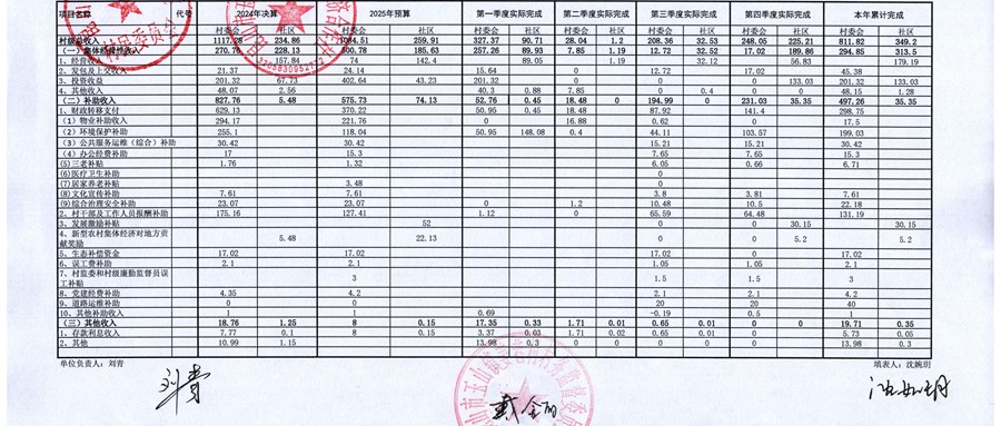 姜巷村2026年1月份财务公开(2025年第四季度收入支出预算完成情况表)