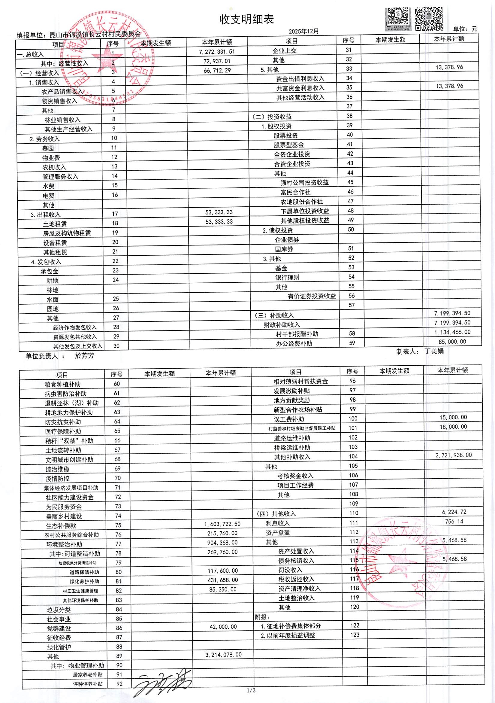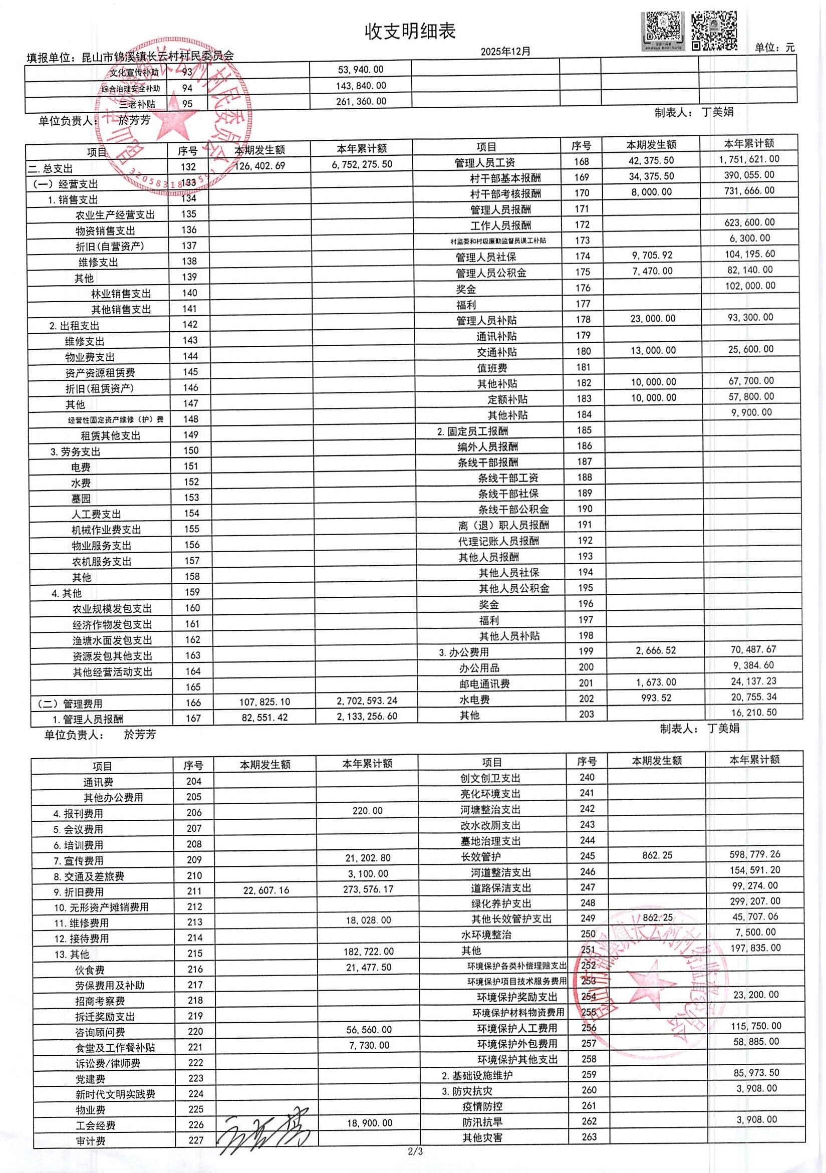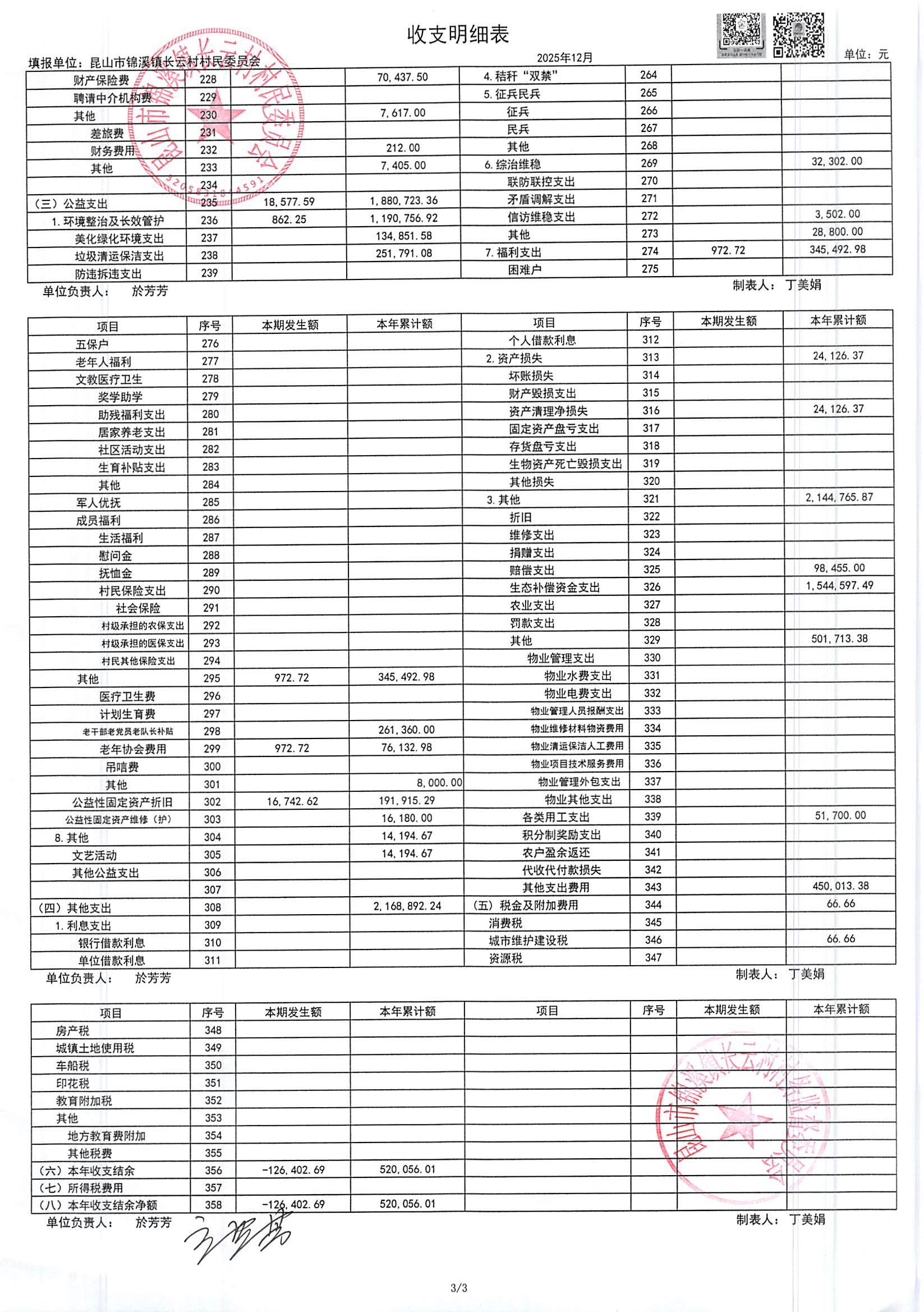 2025年第四季度财务公开定期公开(村委会)(12月份)
