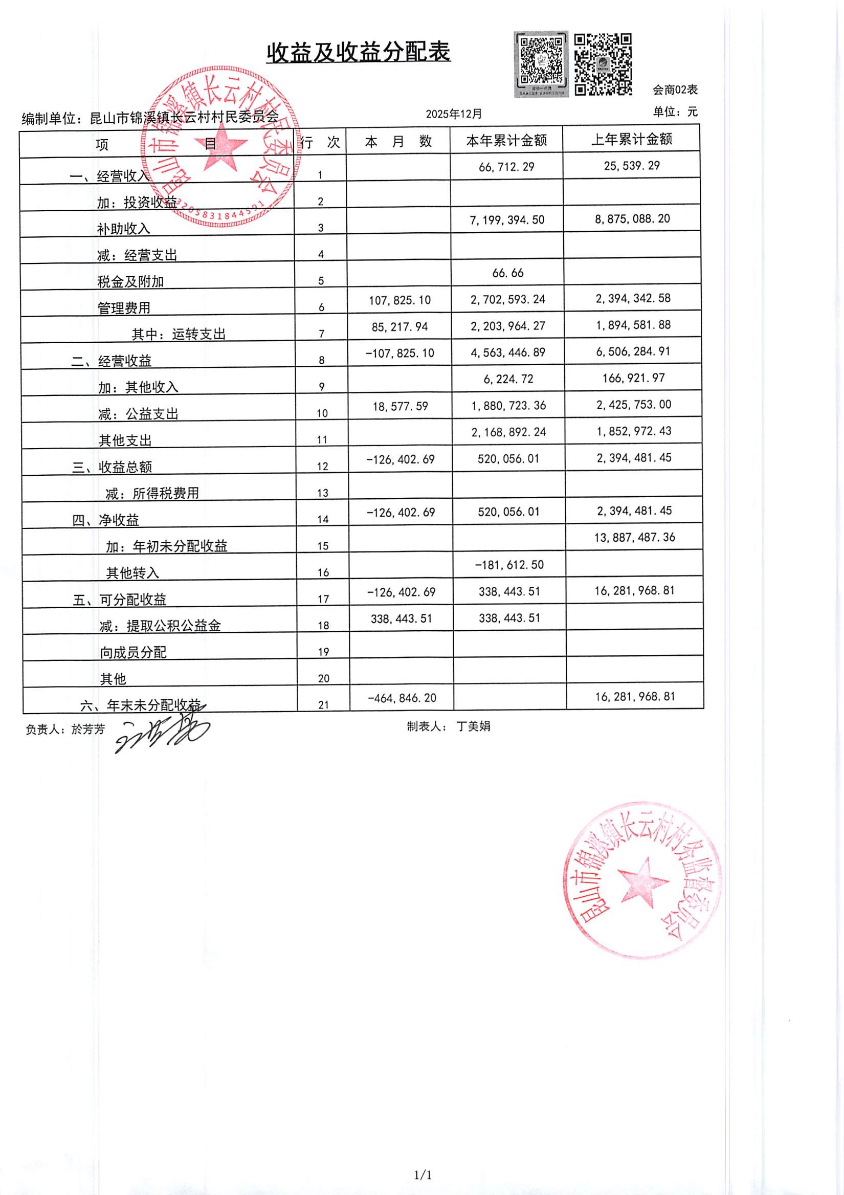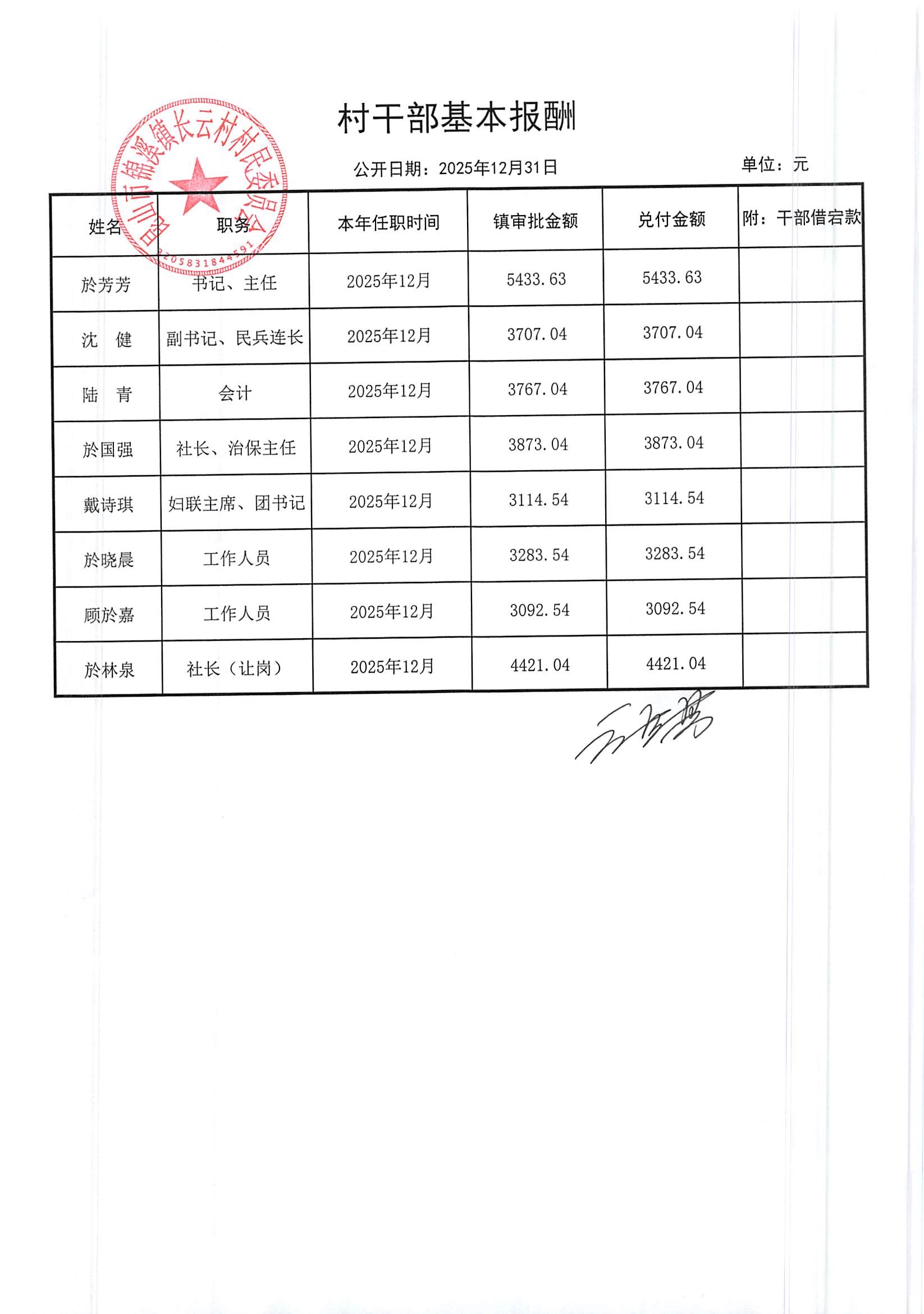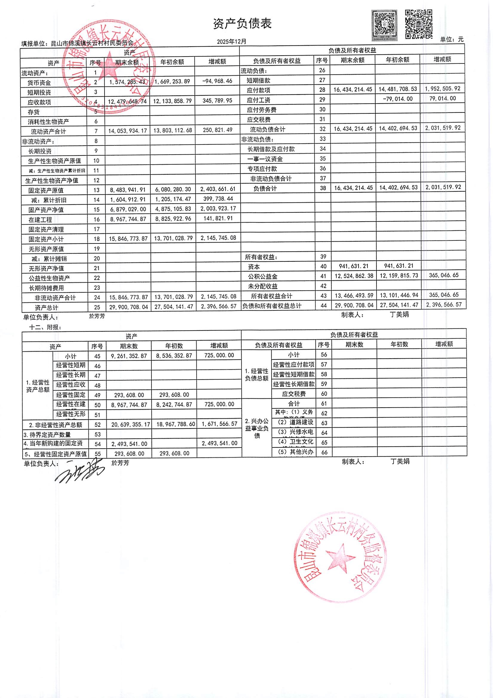 2025年第四季度财务公开定期公开(村委会)(12月份)
