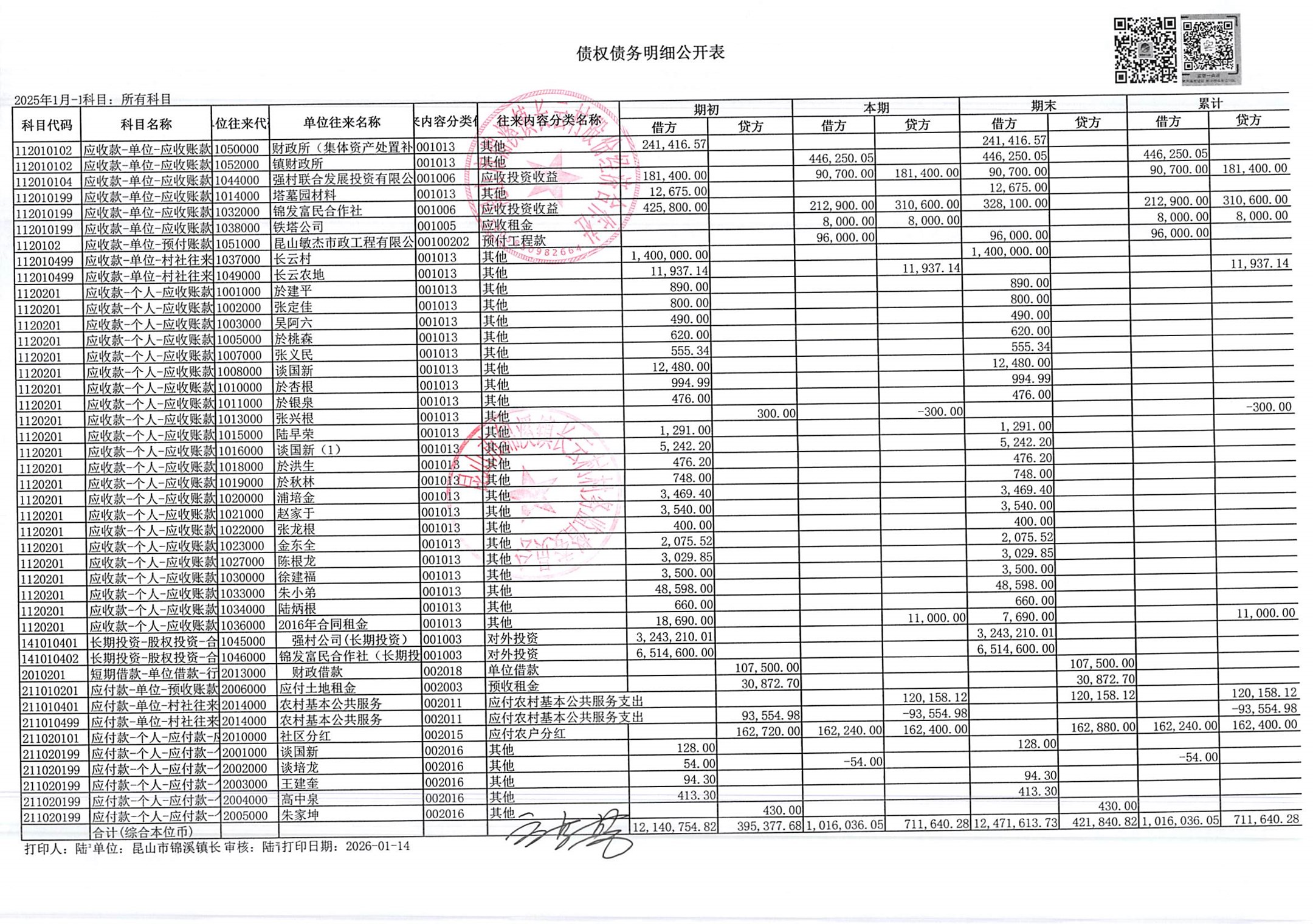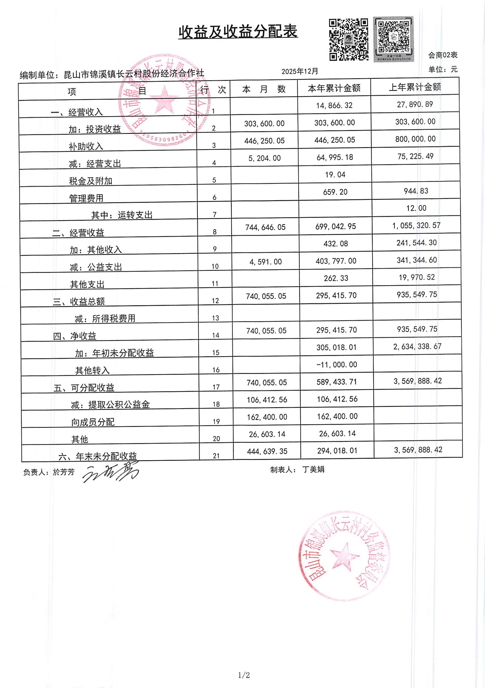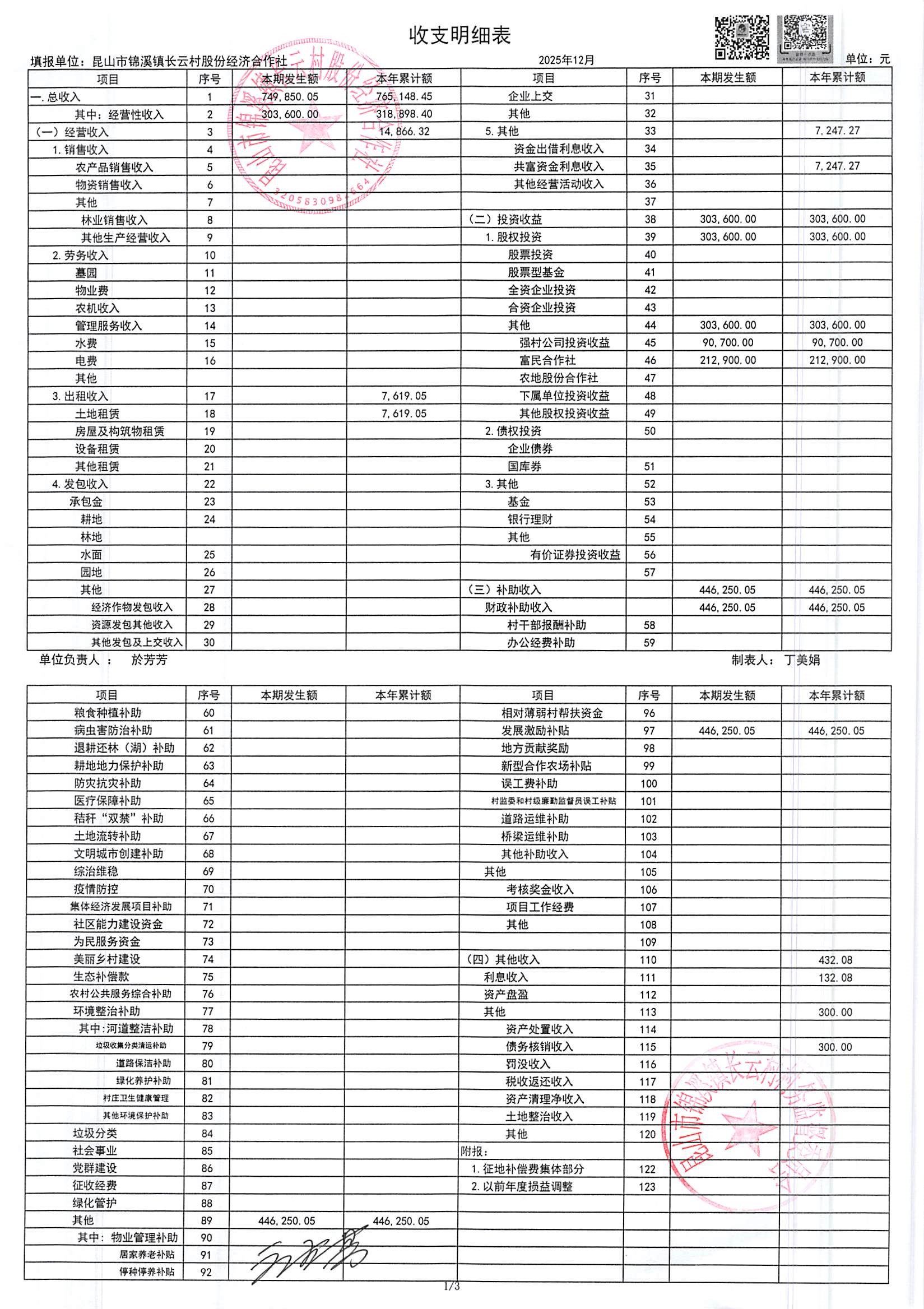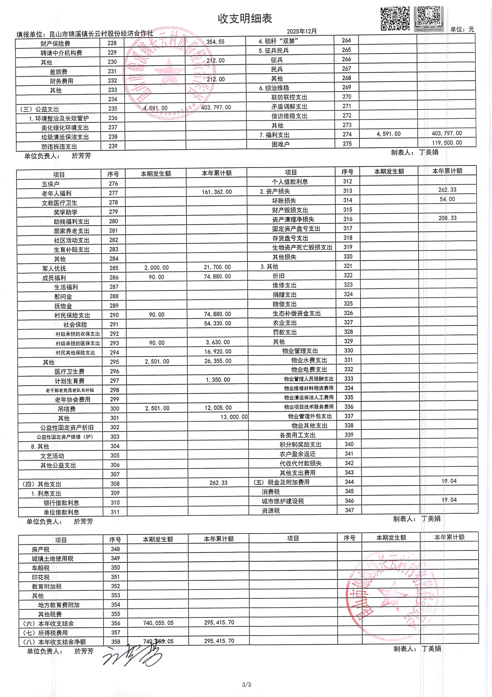2025年第四季度财务公开定期公开(社区)(12月份)