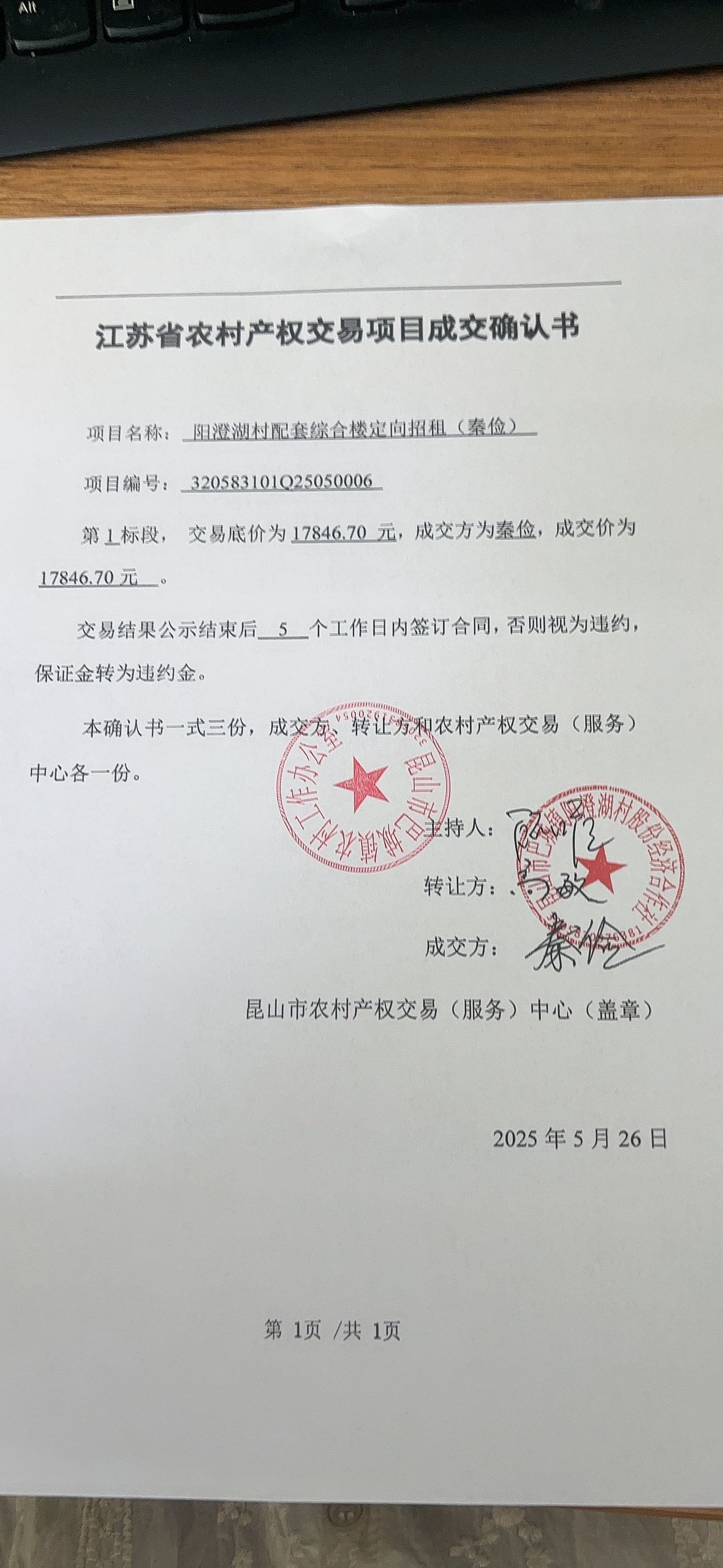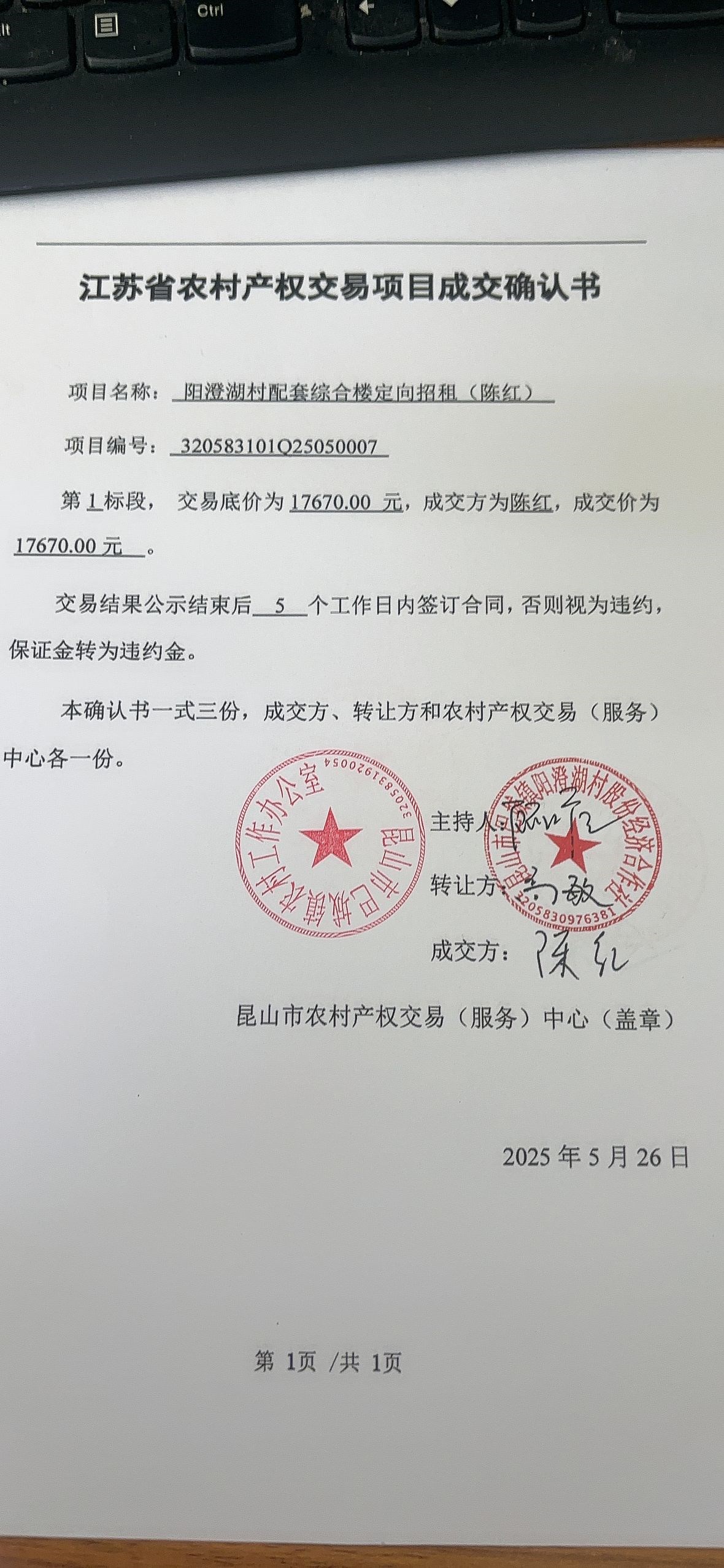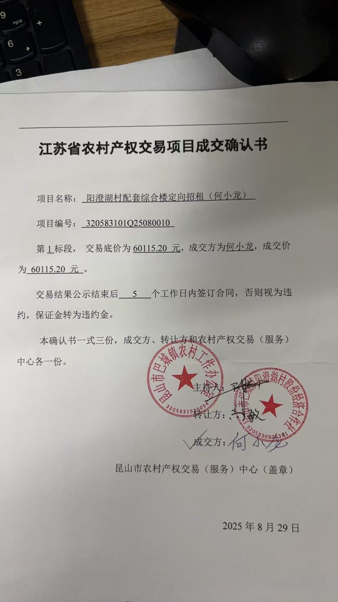 阳澄湖村配套综合楼定向招租(陈红、秦俭、何小龙)成交公告