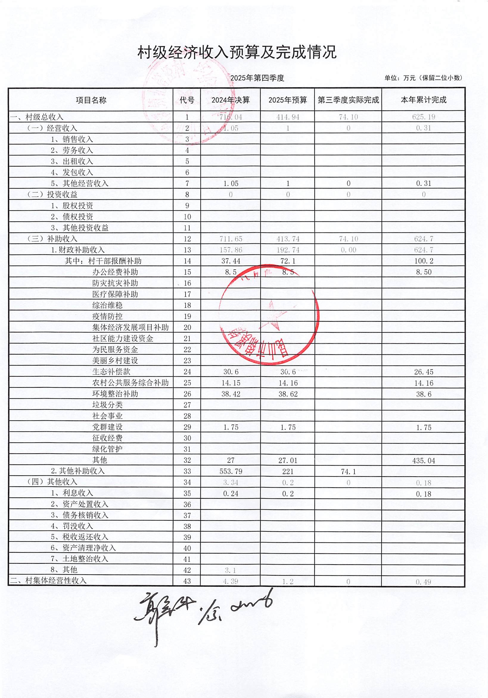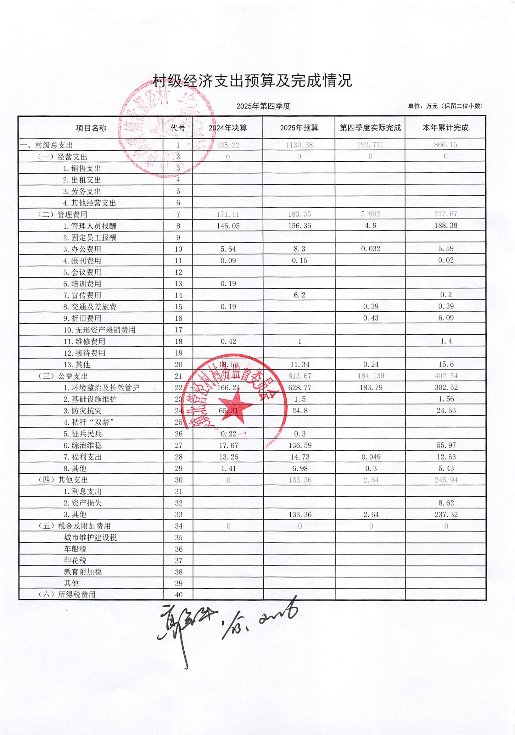 2025年12月份村级经济收入支出预算及完成情况(村委会)