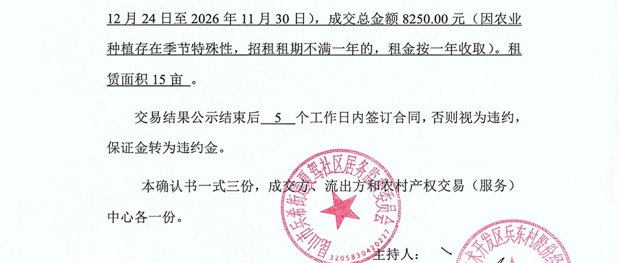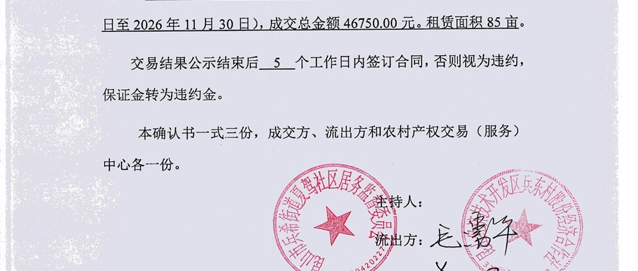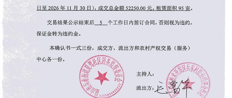 大农户成交确认书公开