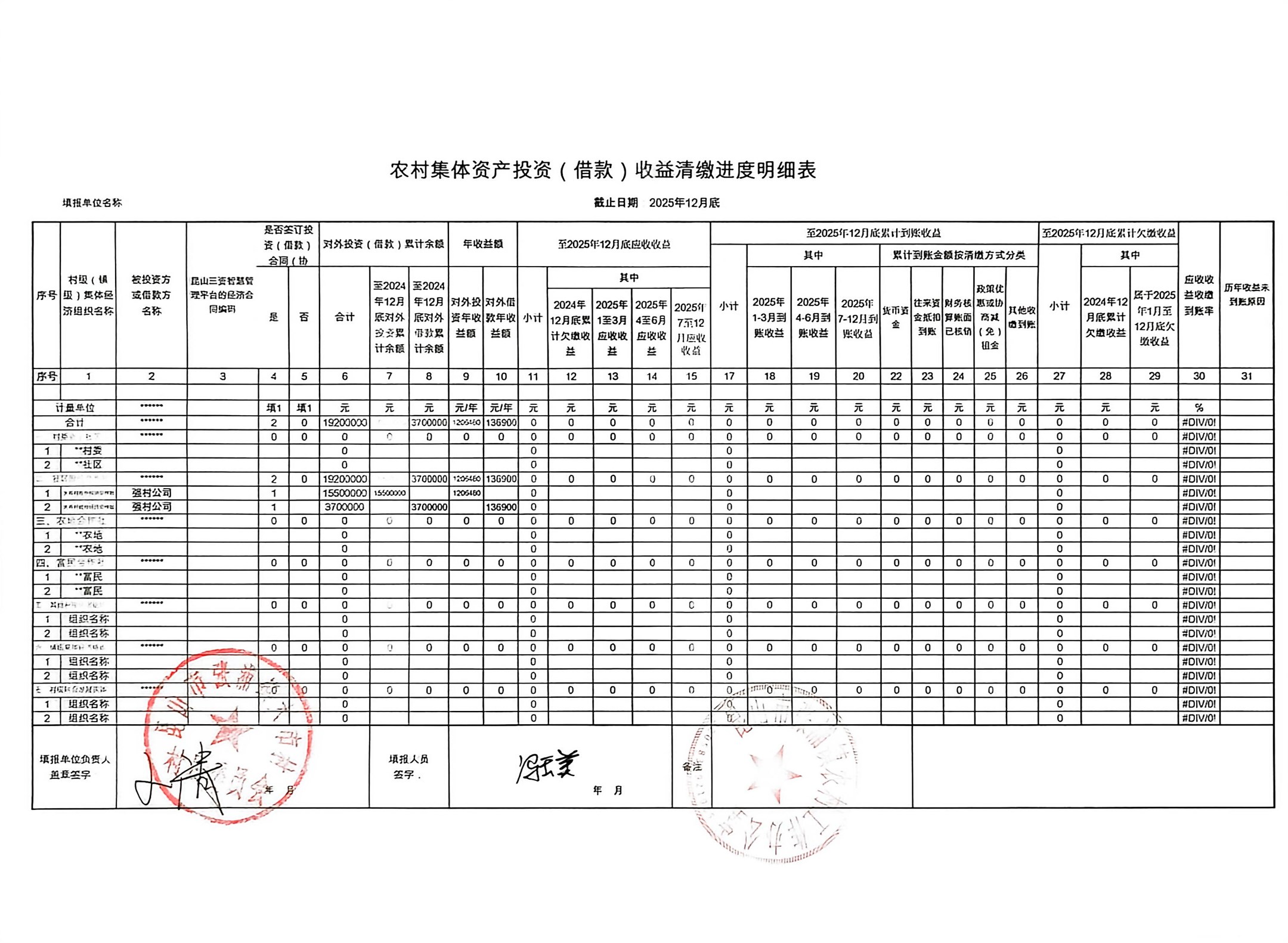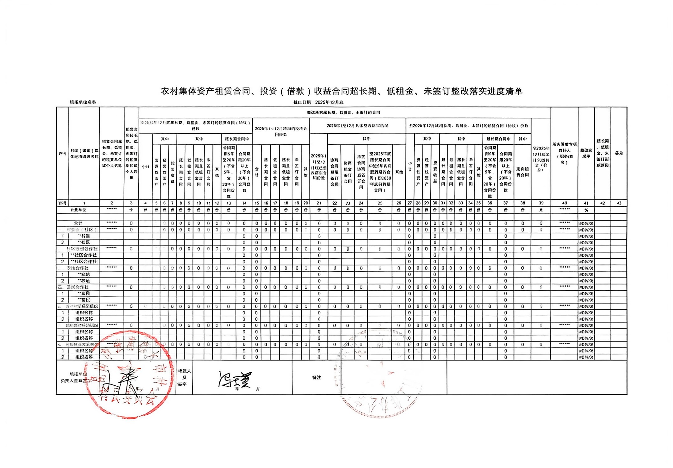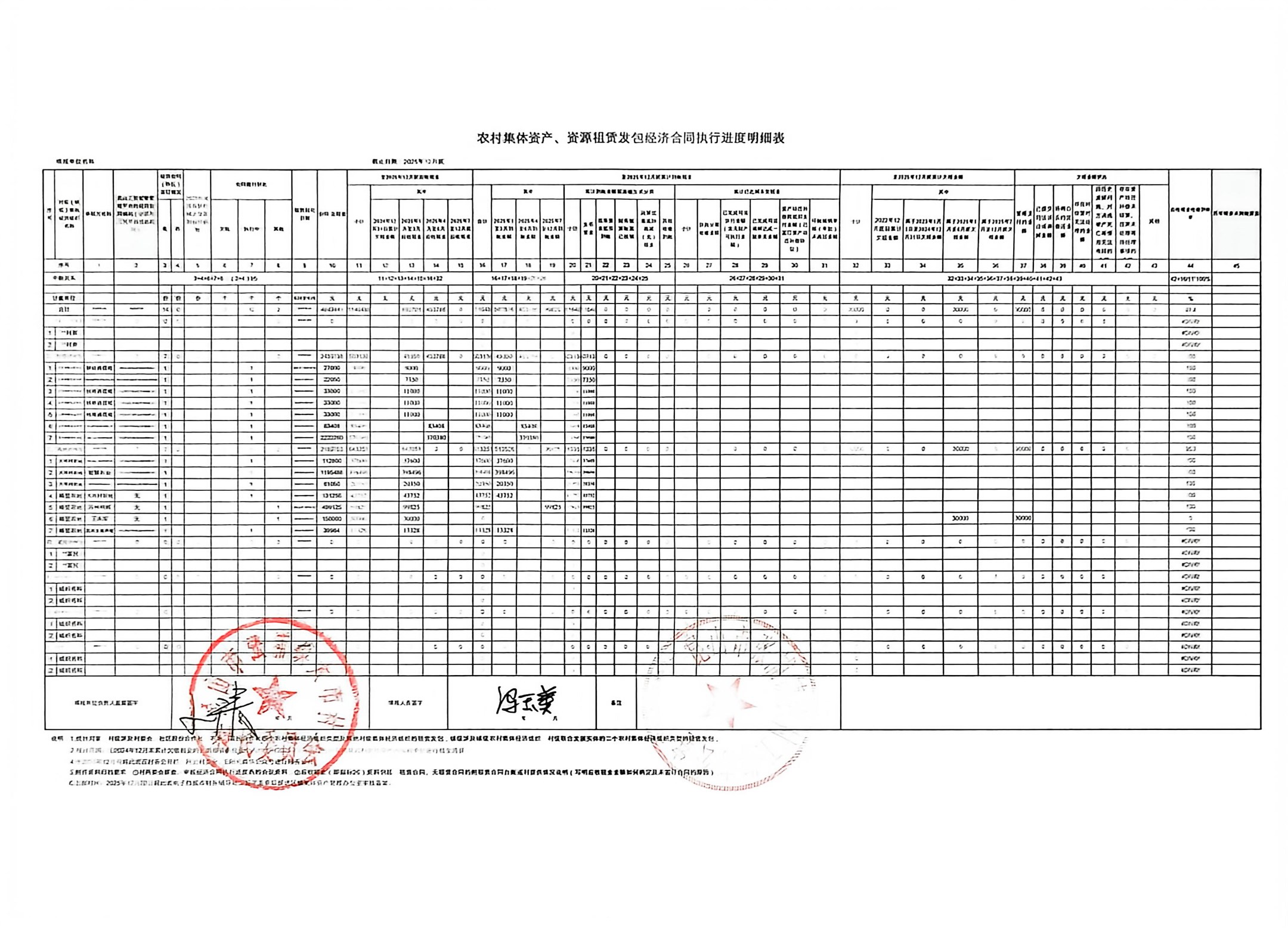 2025年4季度农村集体资产、资源租赁发包经济合同执行进度明细等