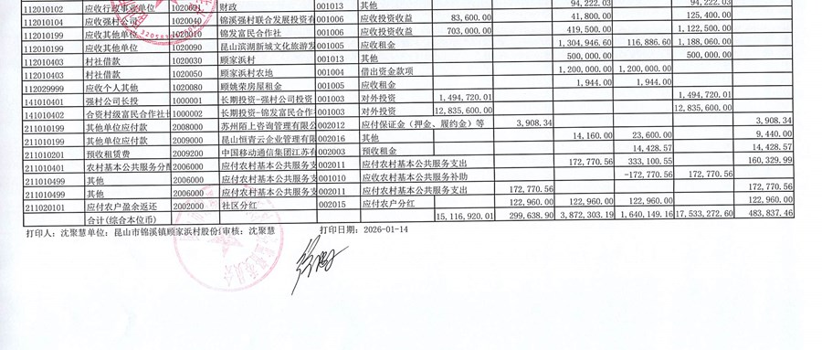 2025年12月份股份经济合作社财务公开