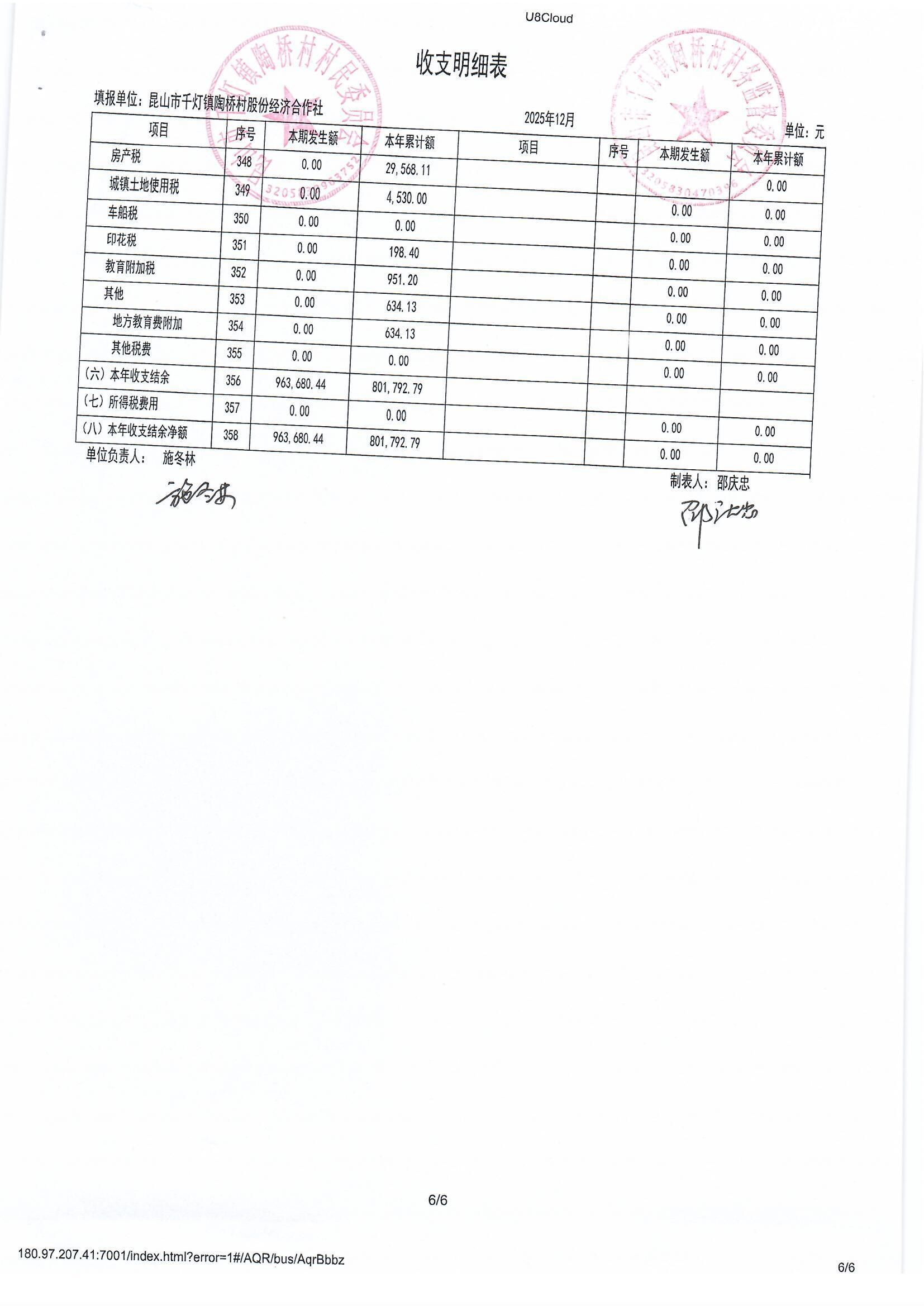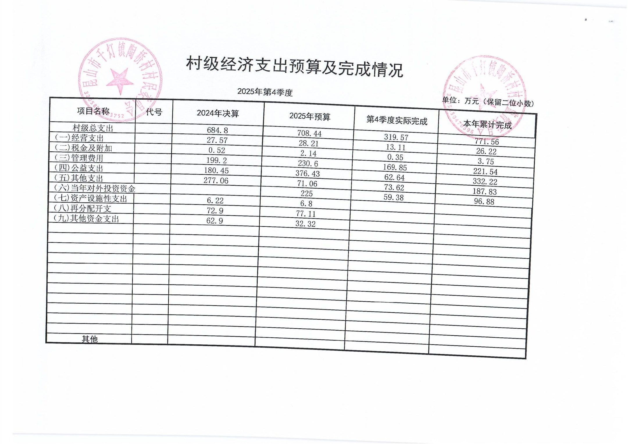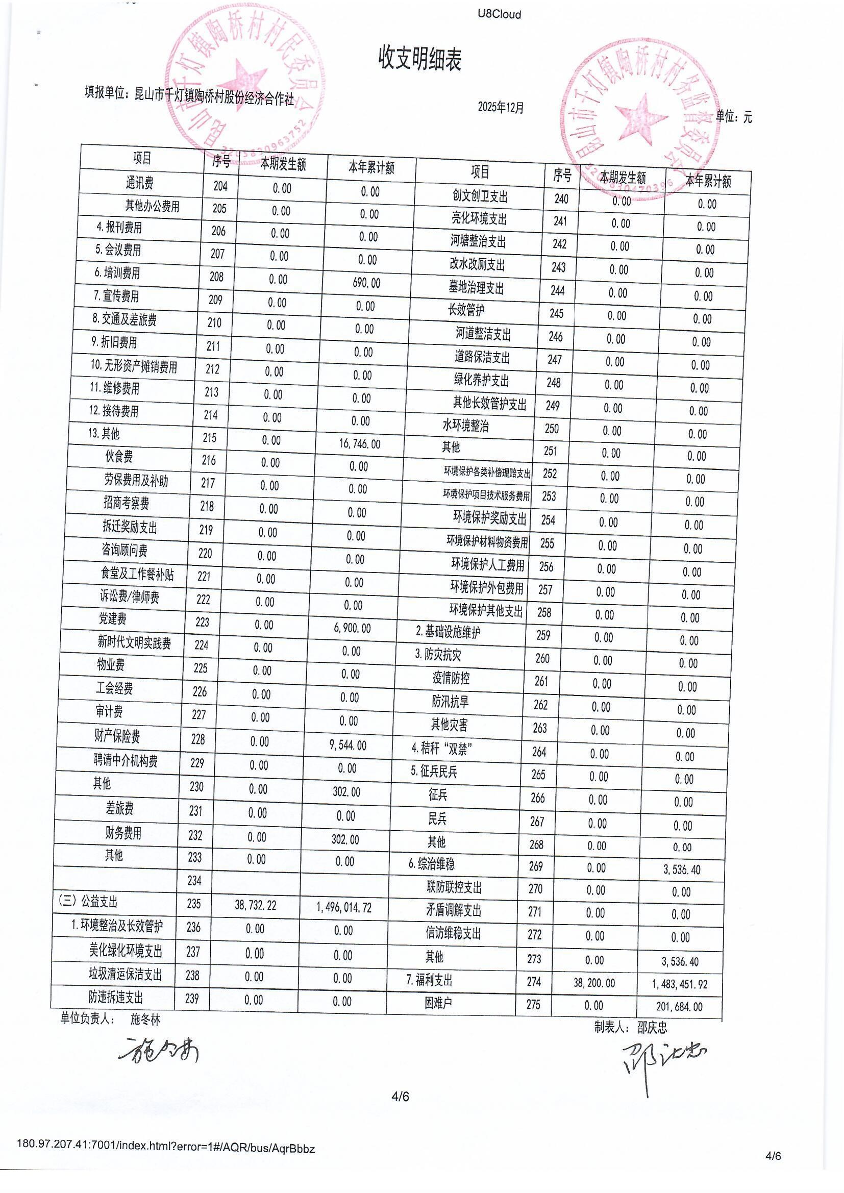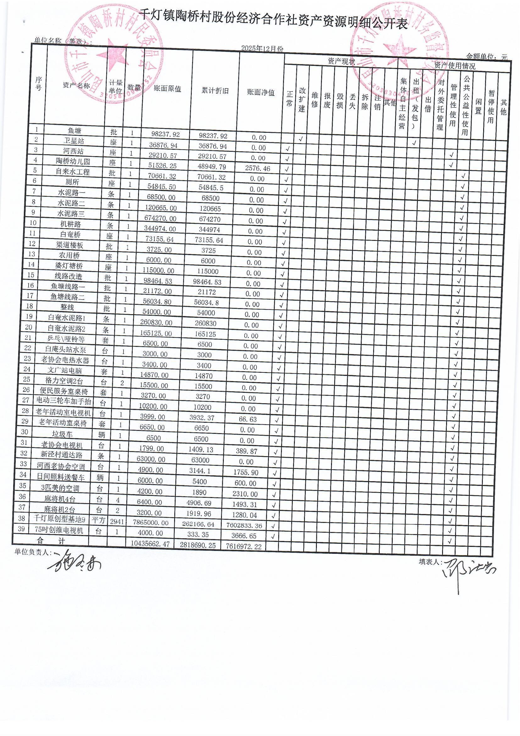 陶桥村股份经济合作社2025年12月财务公开内容:
