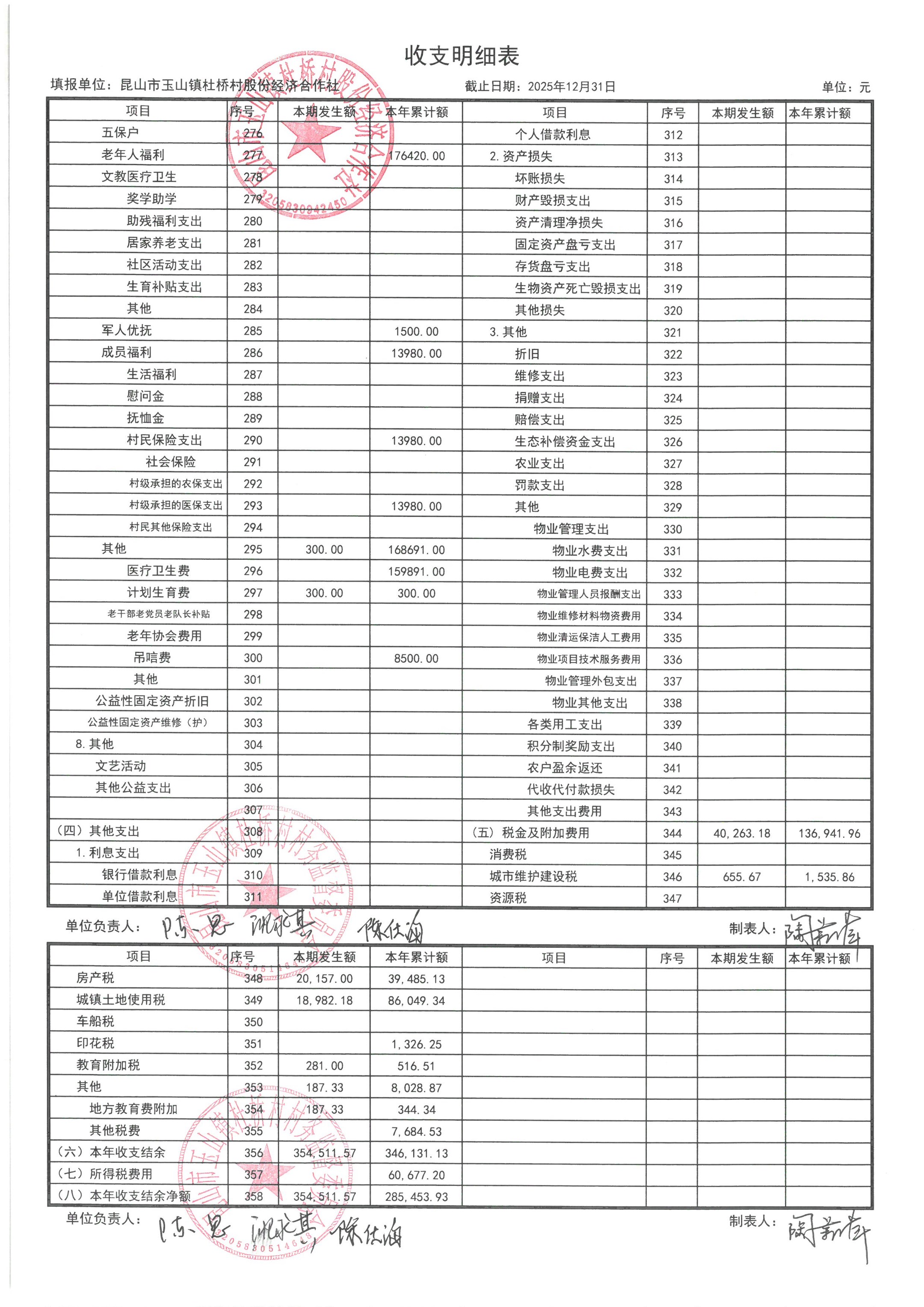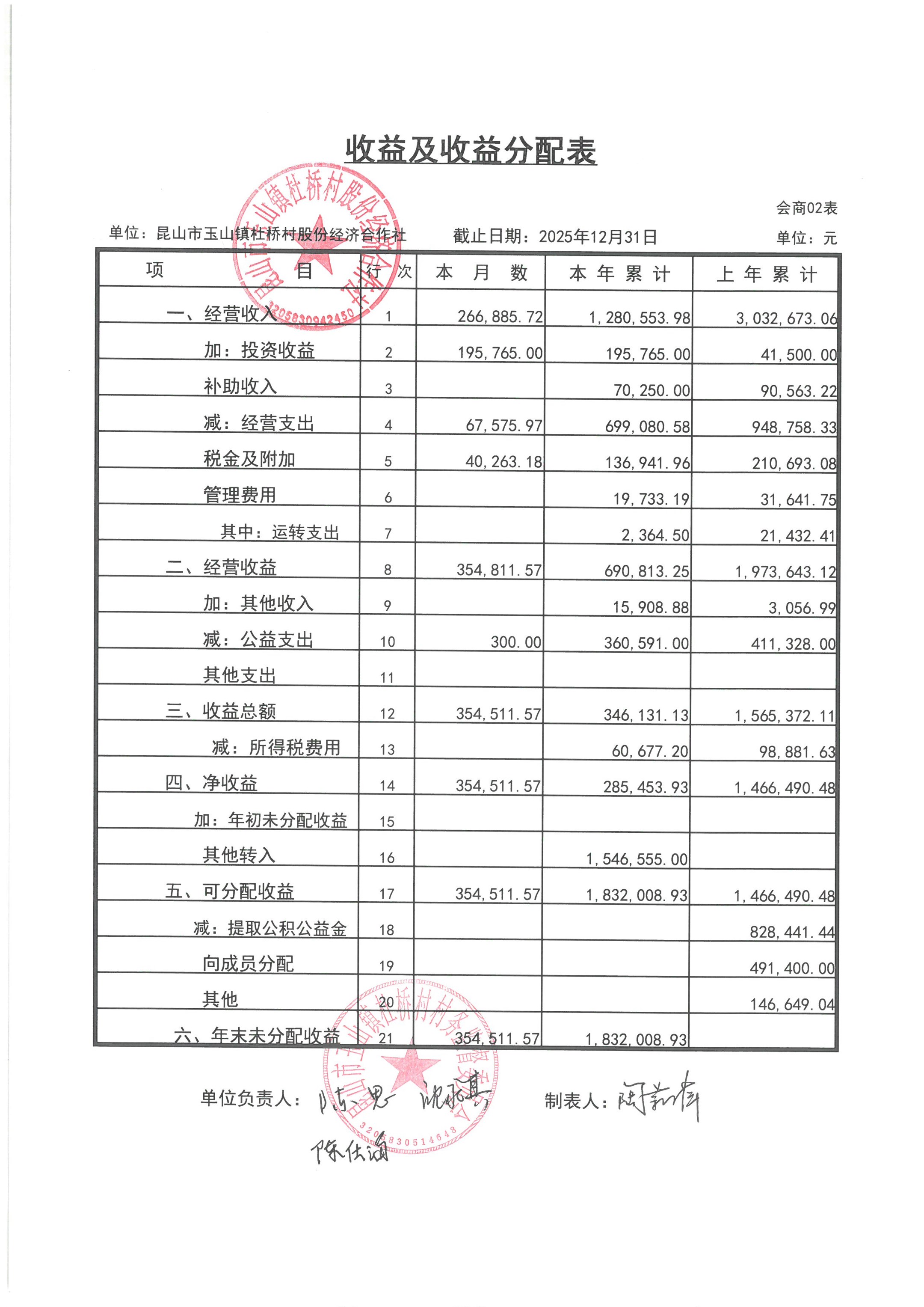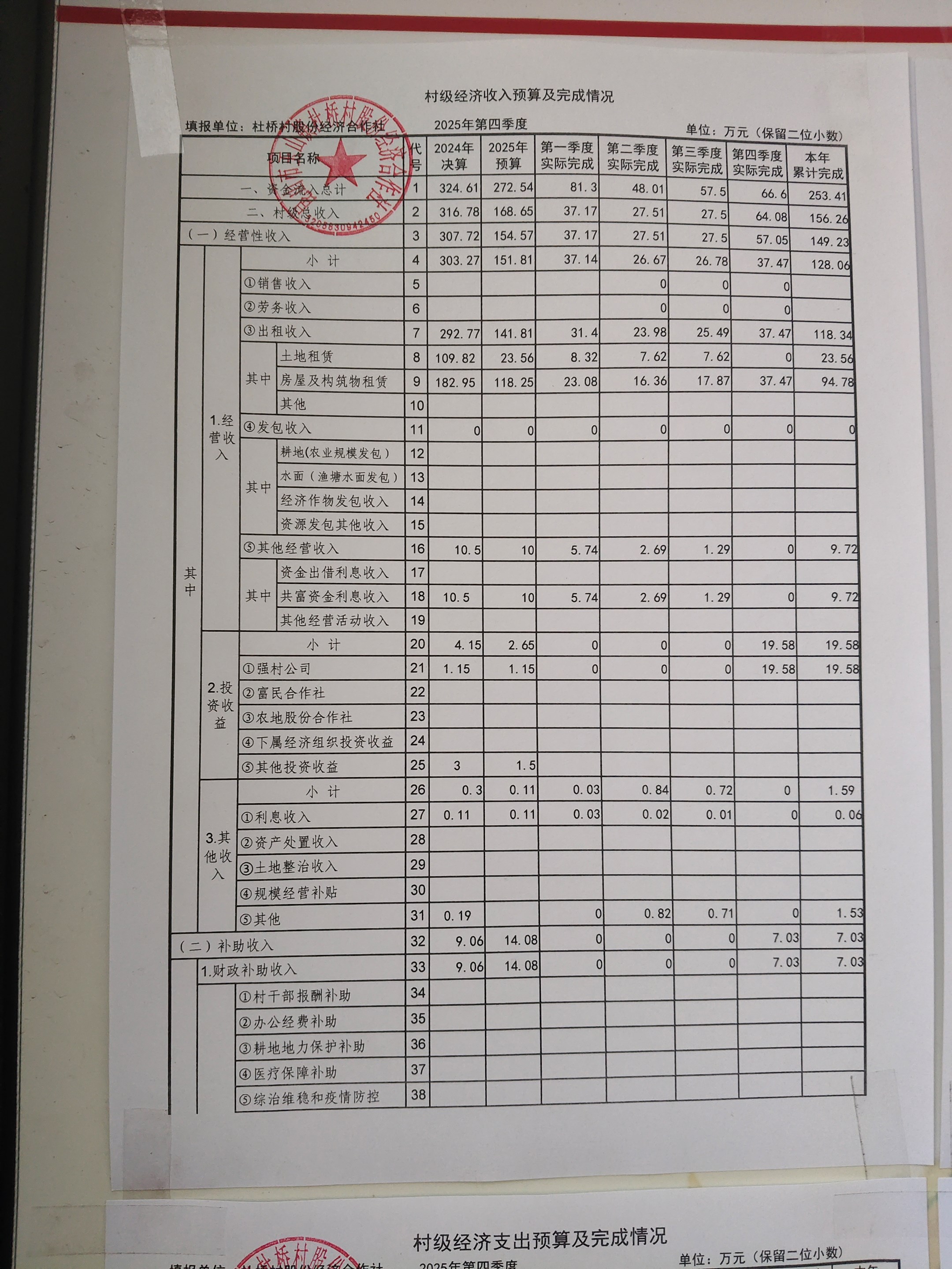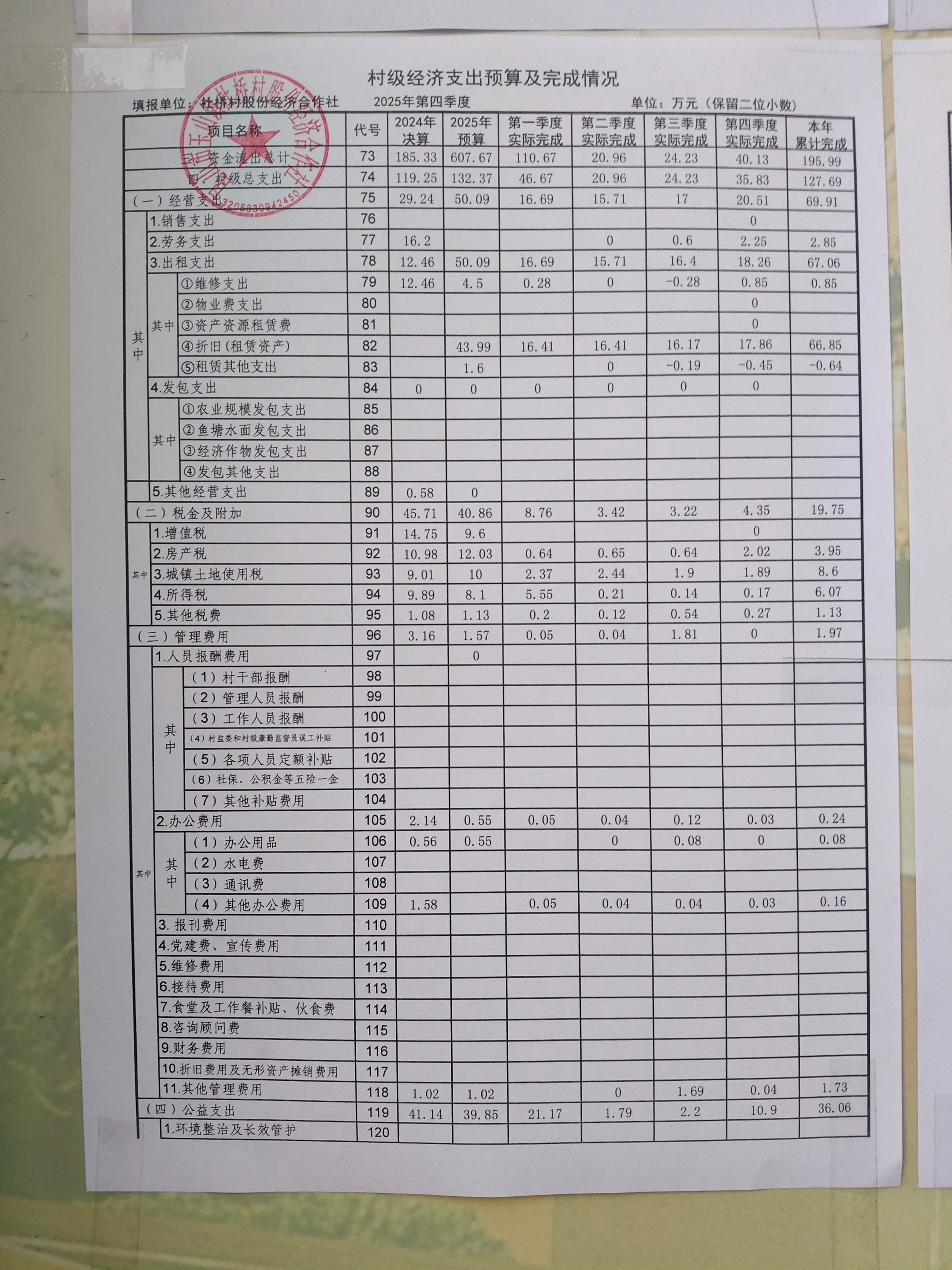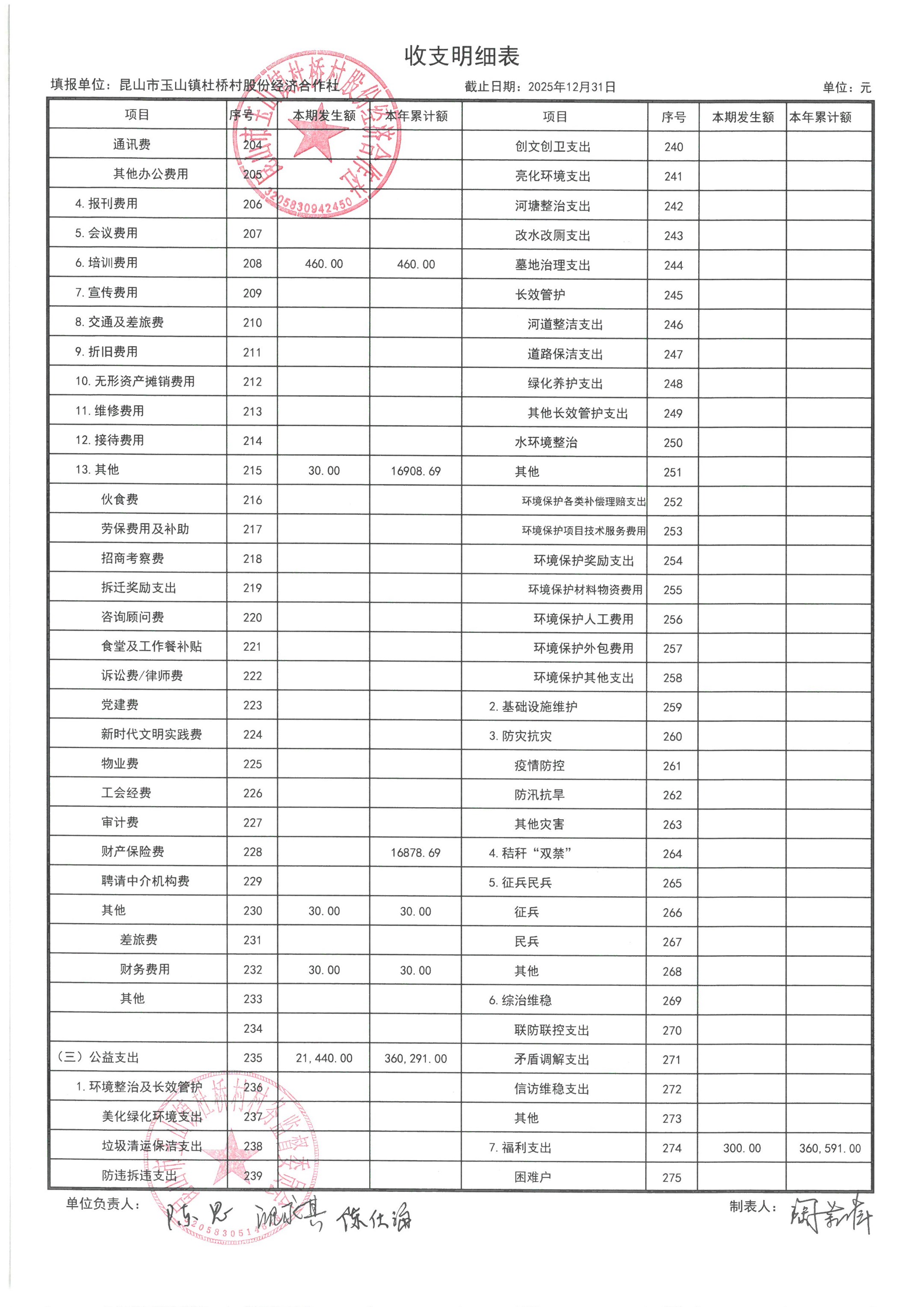 杜桥村股份经济合作社2026年1月份财务公开(2025年12月数据)