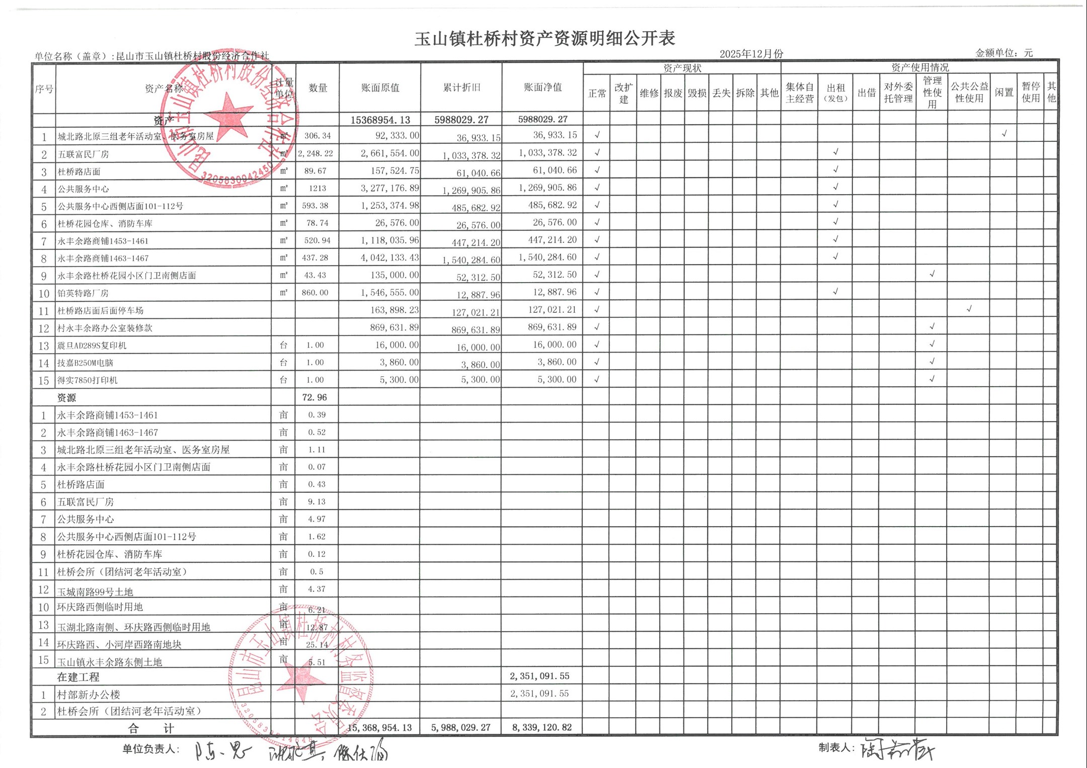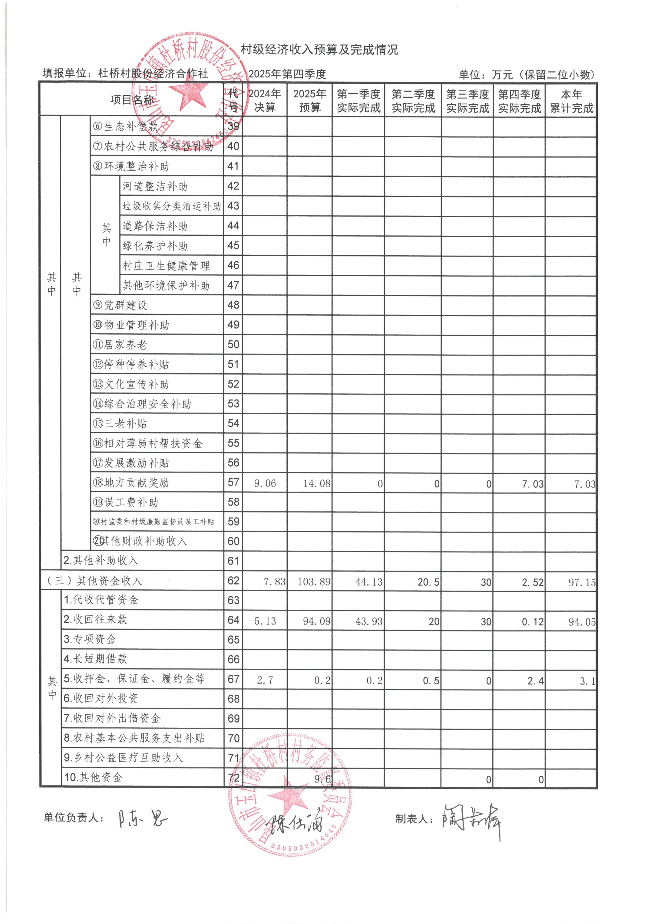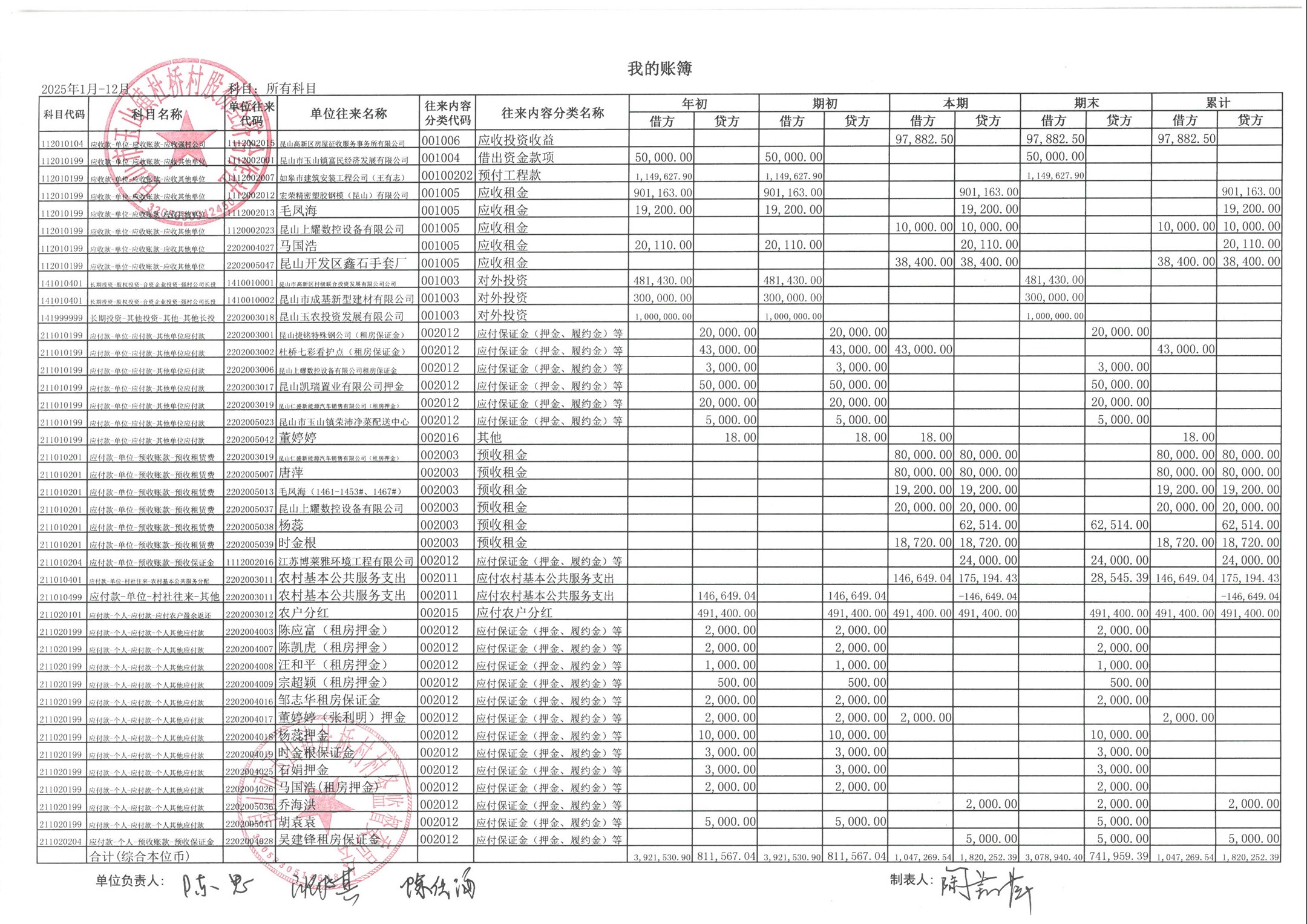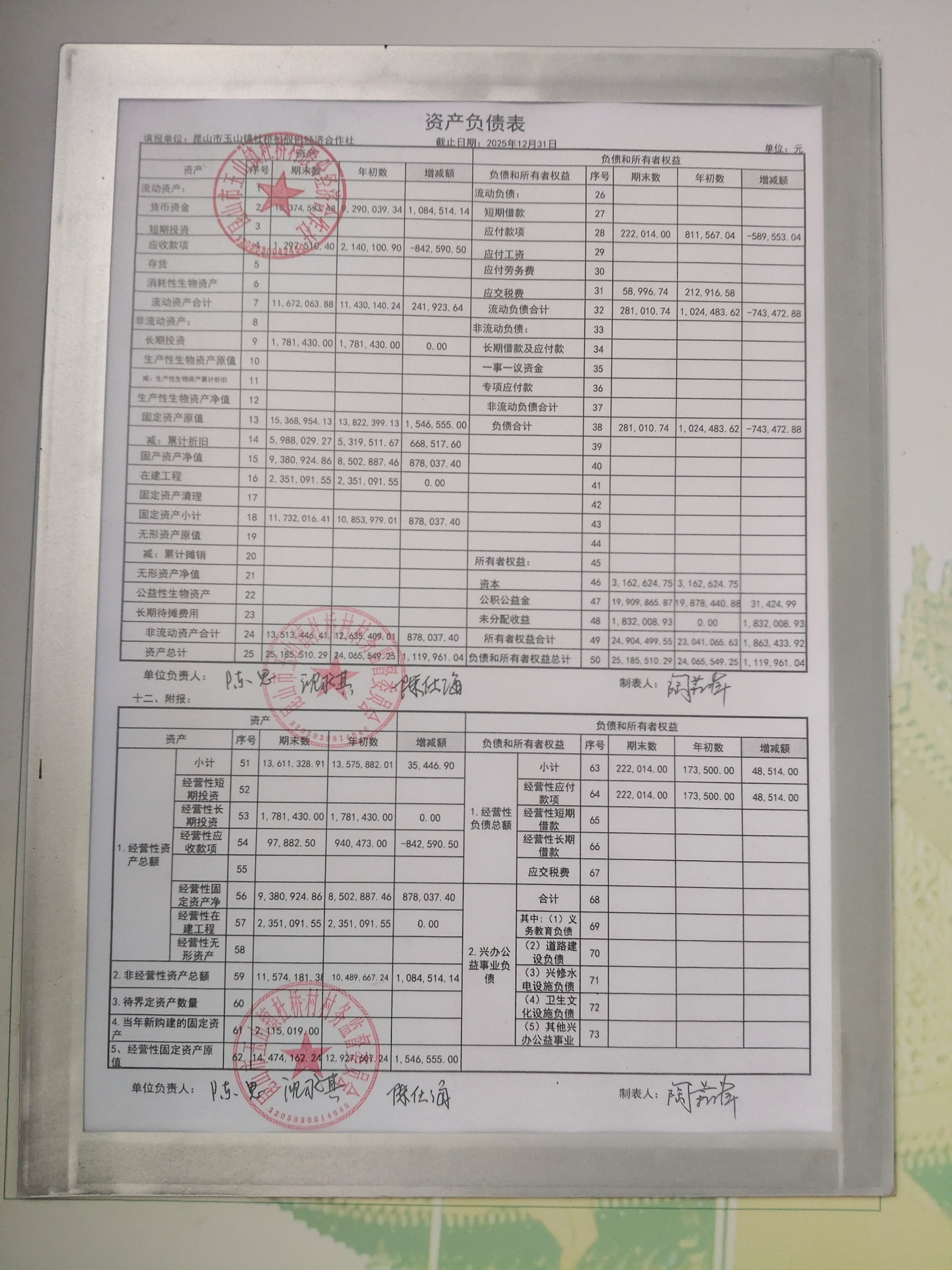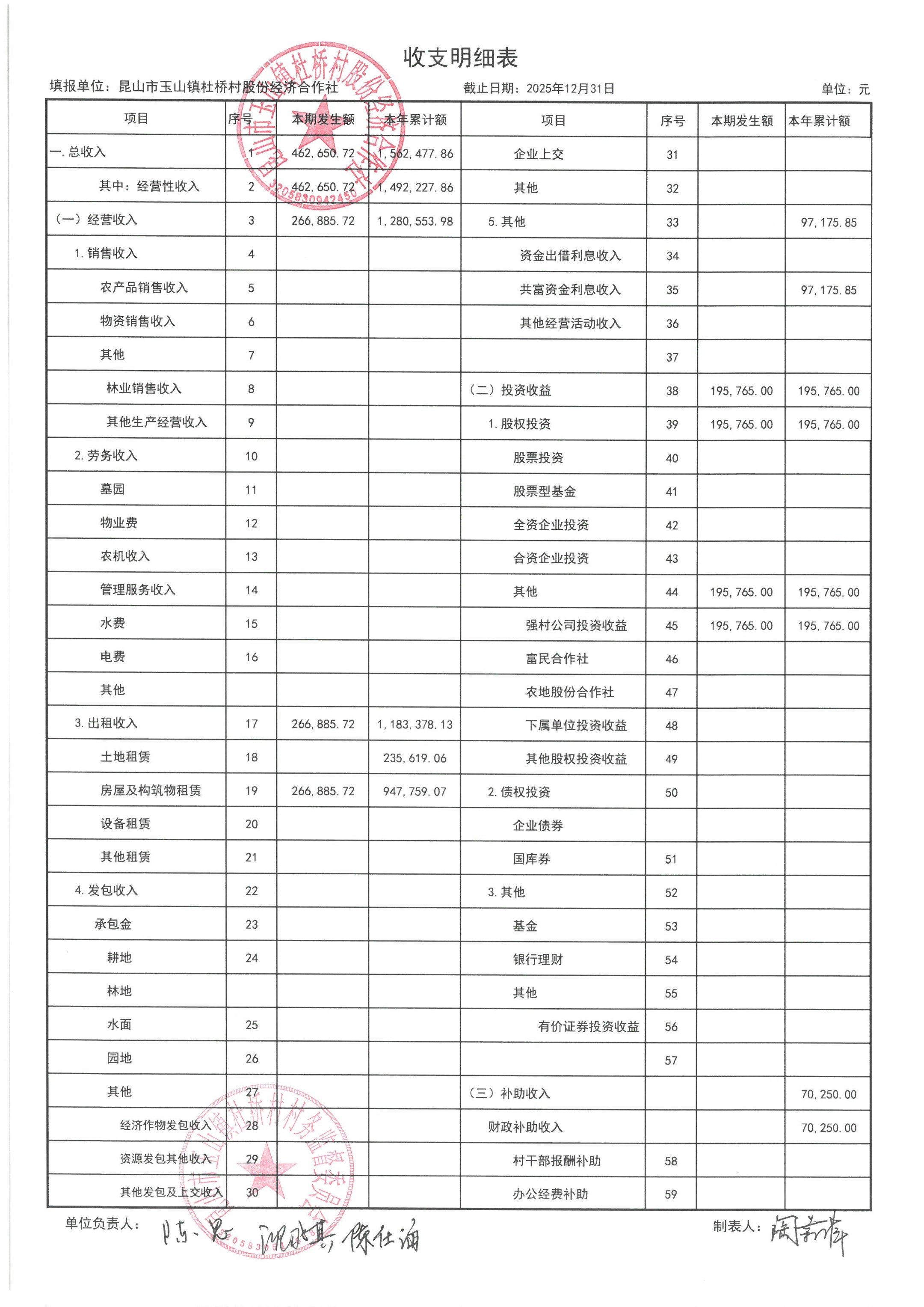 杜桥村股份经济合作社2026年1月份财务公开(2025年12月数据)