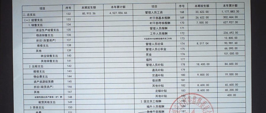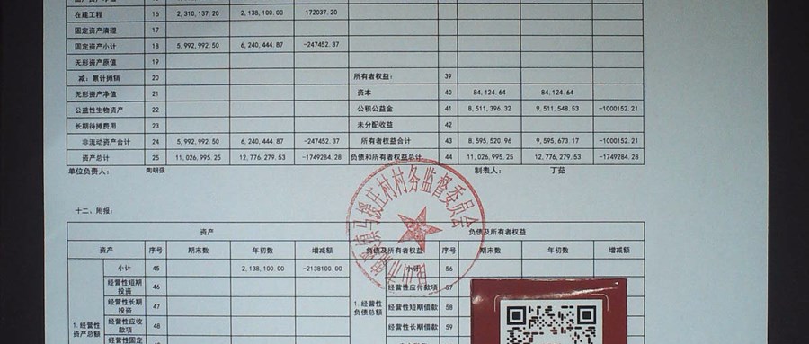 2025年12月马援庄村村民委员会财务公开