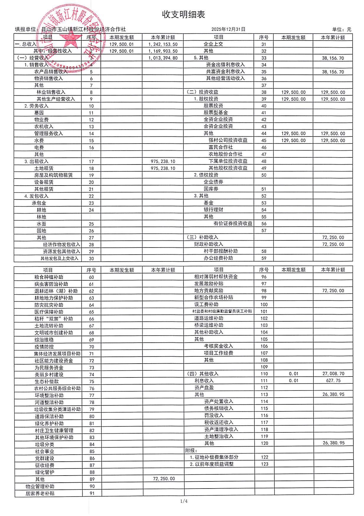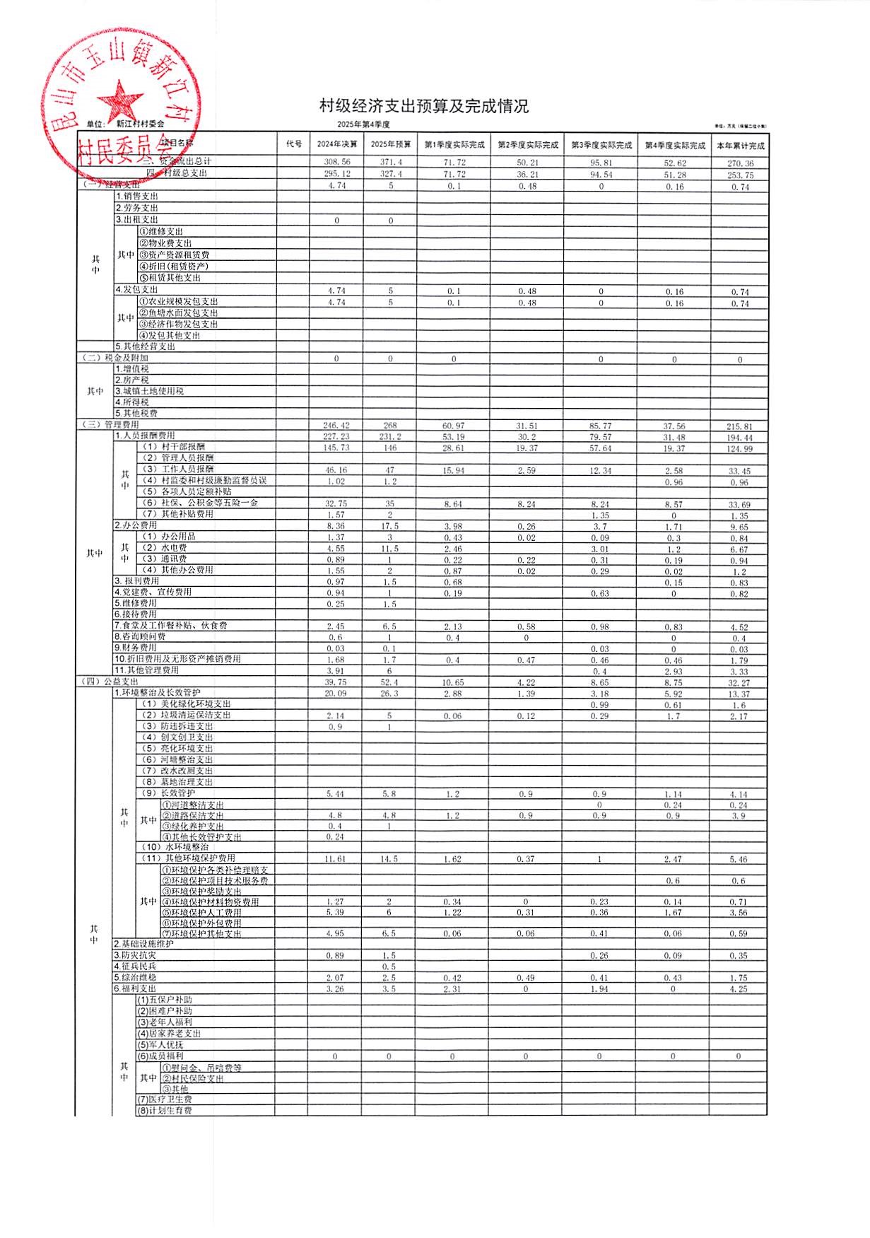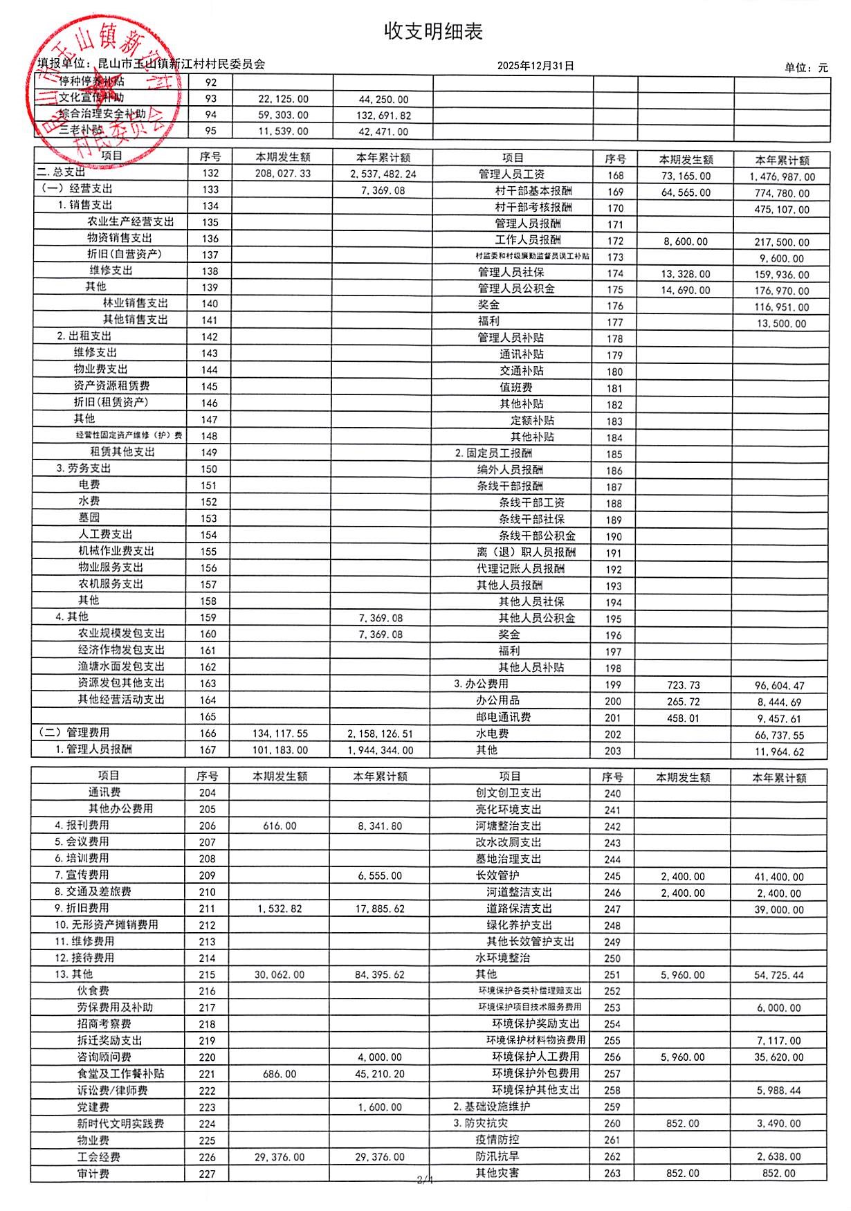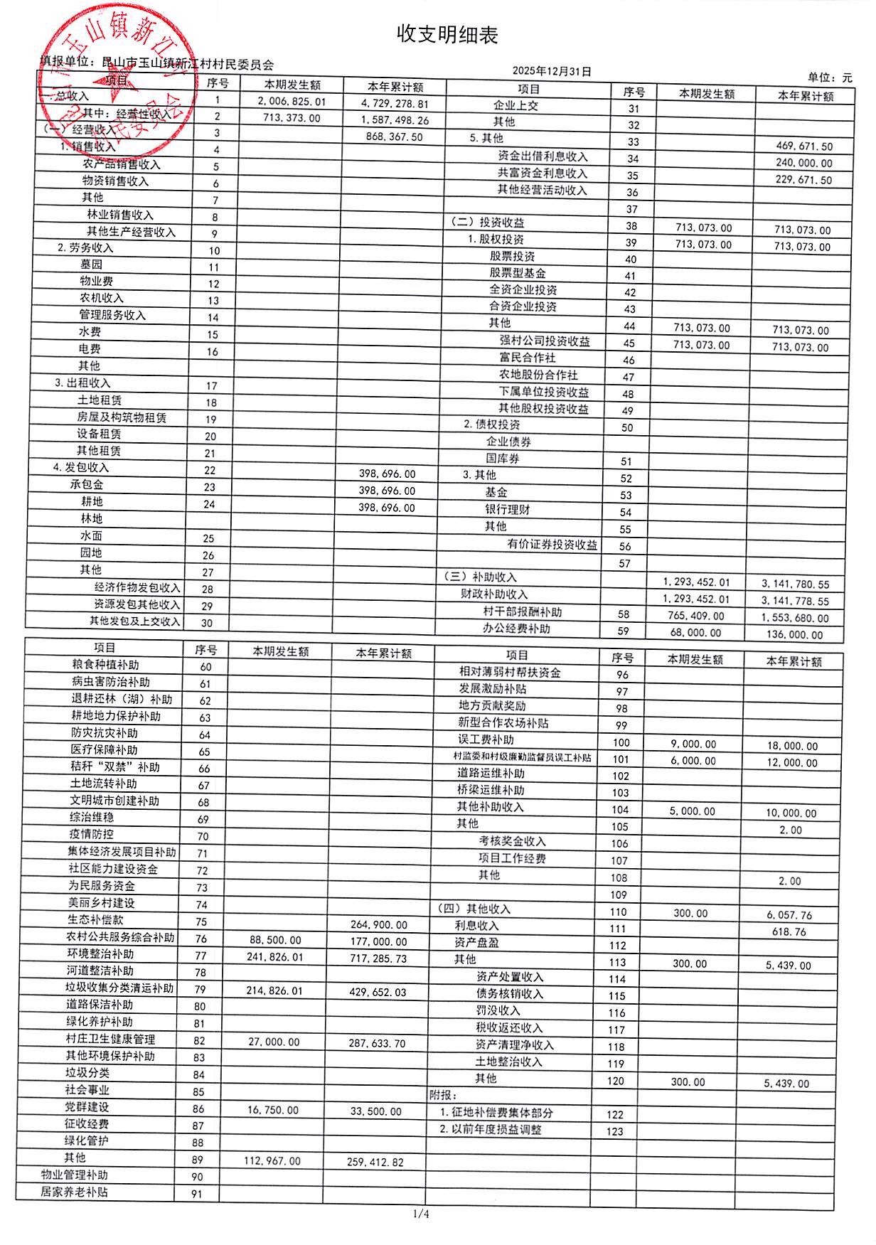新江村2026年1月财务公开