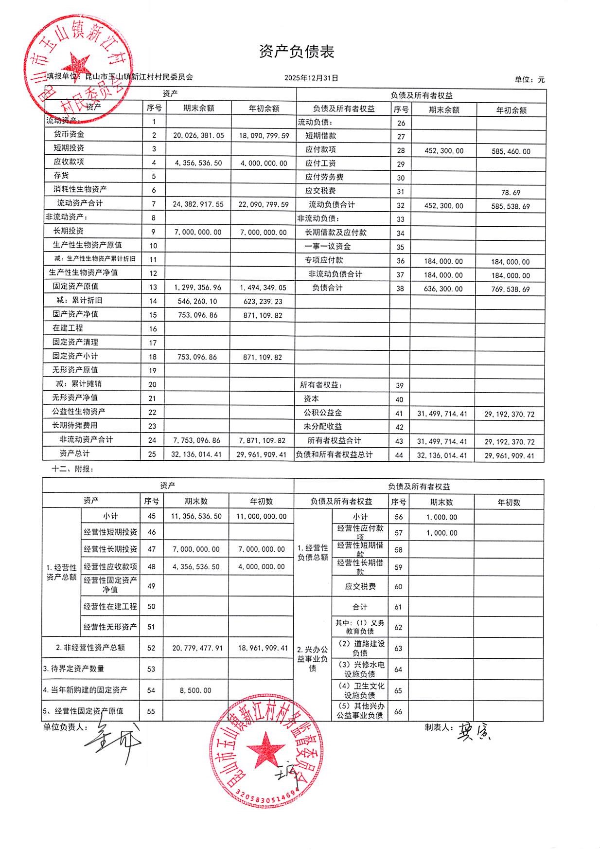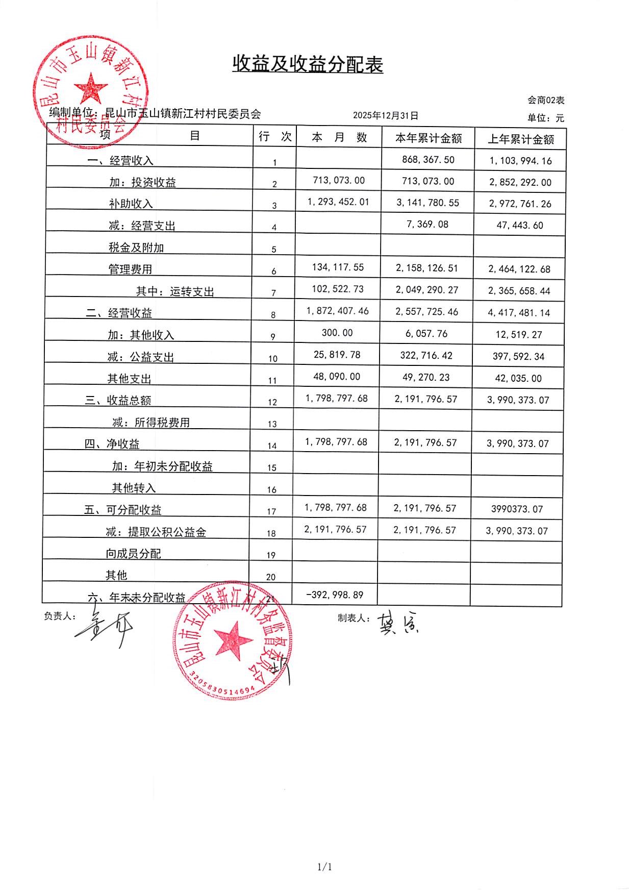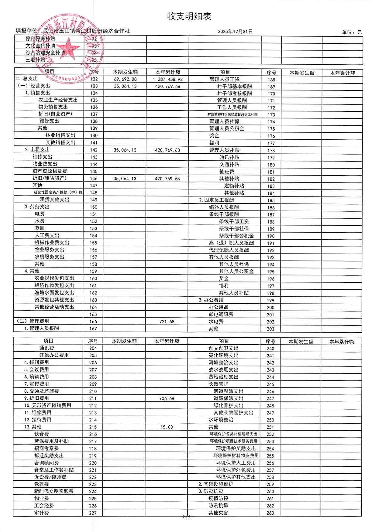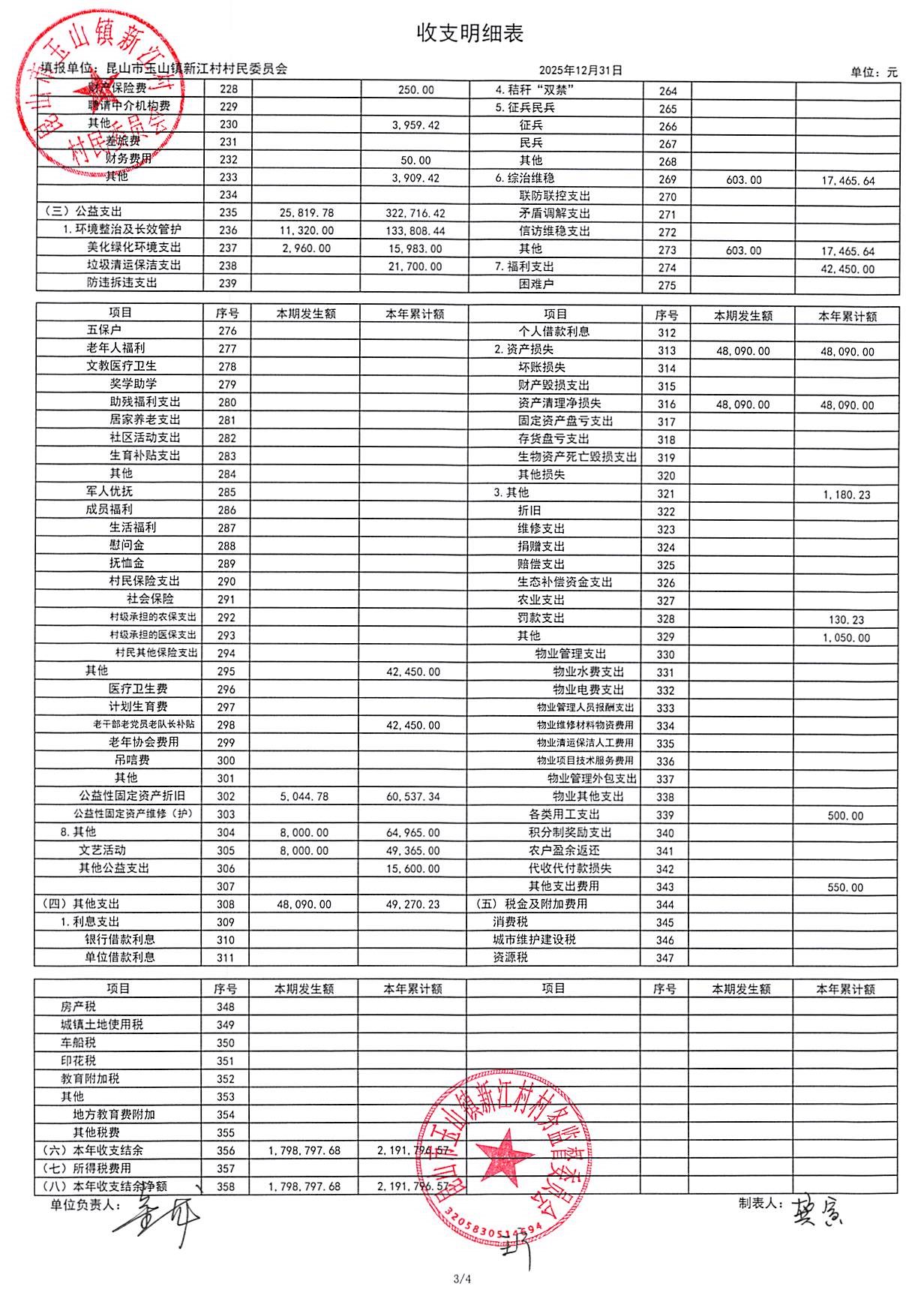 新江村2026年1月财务公开