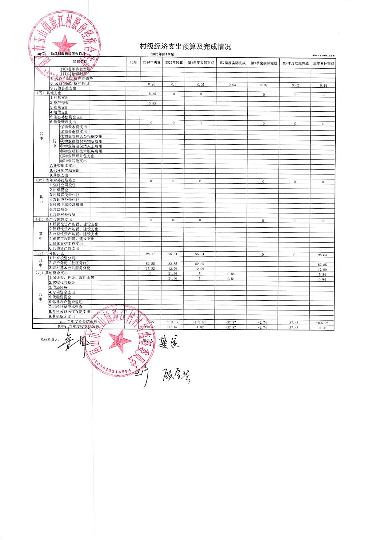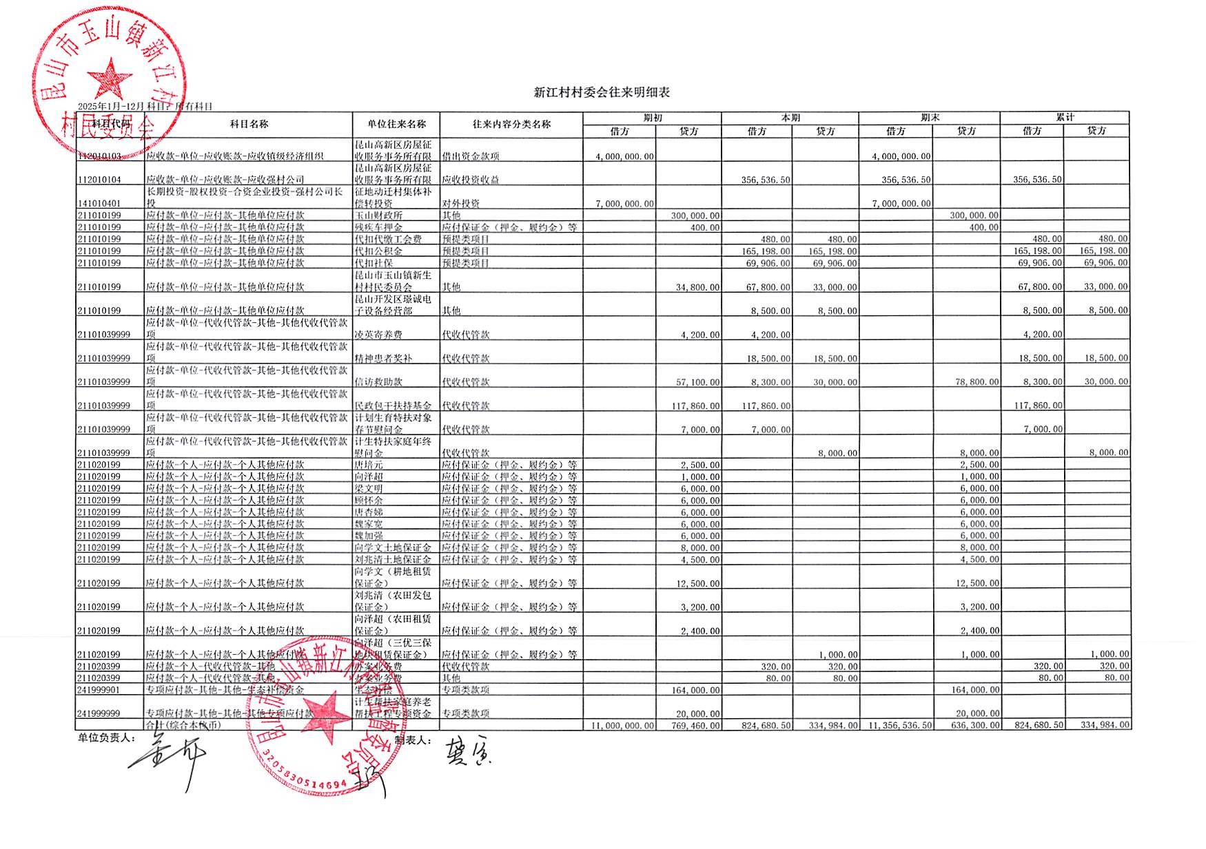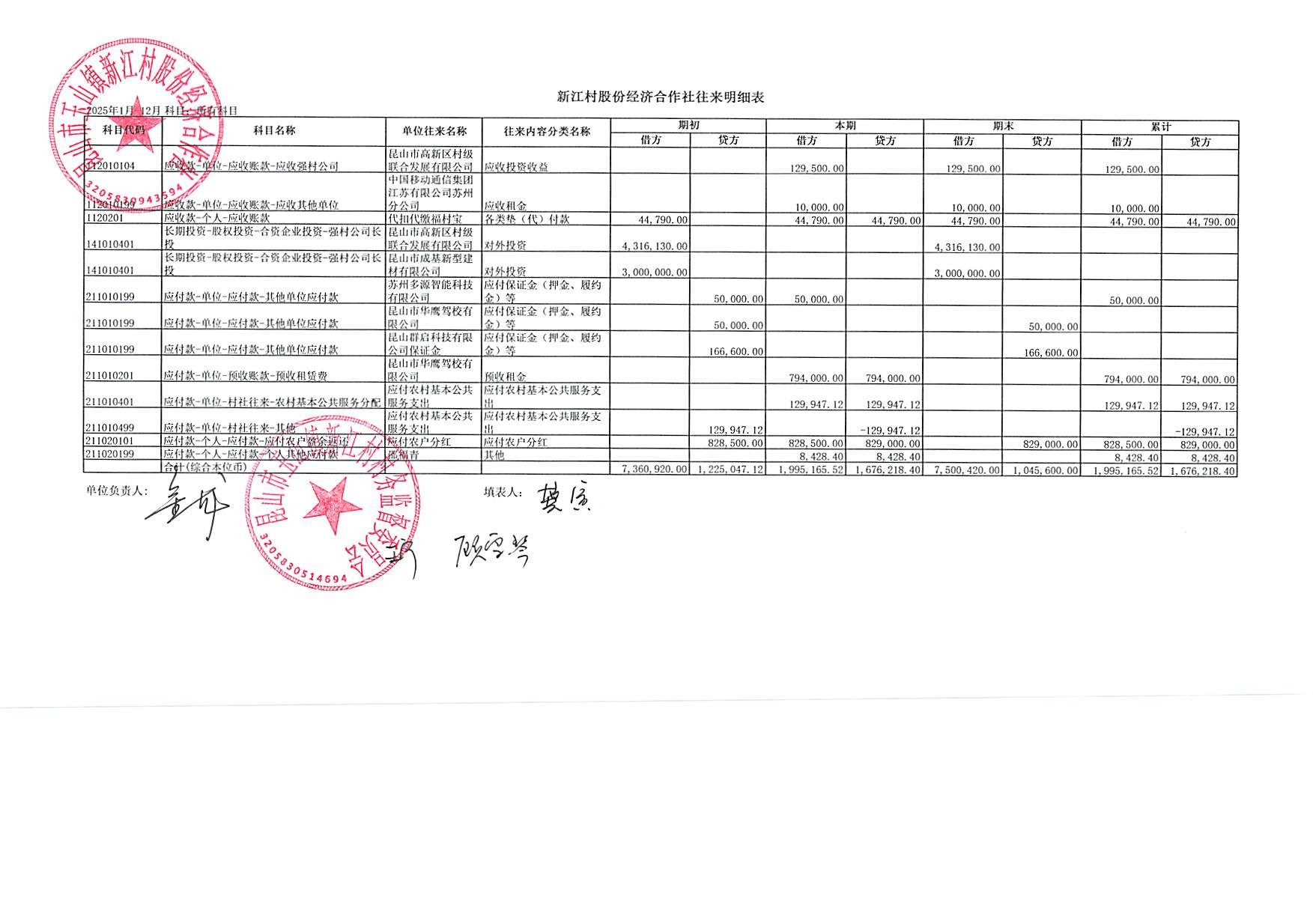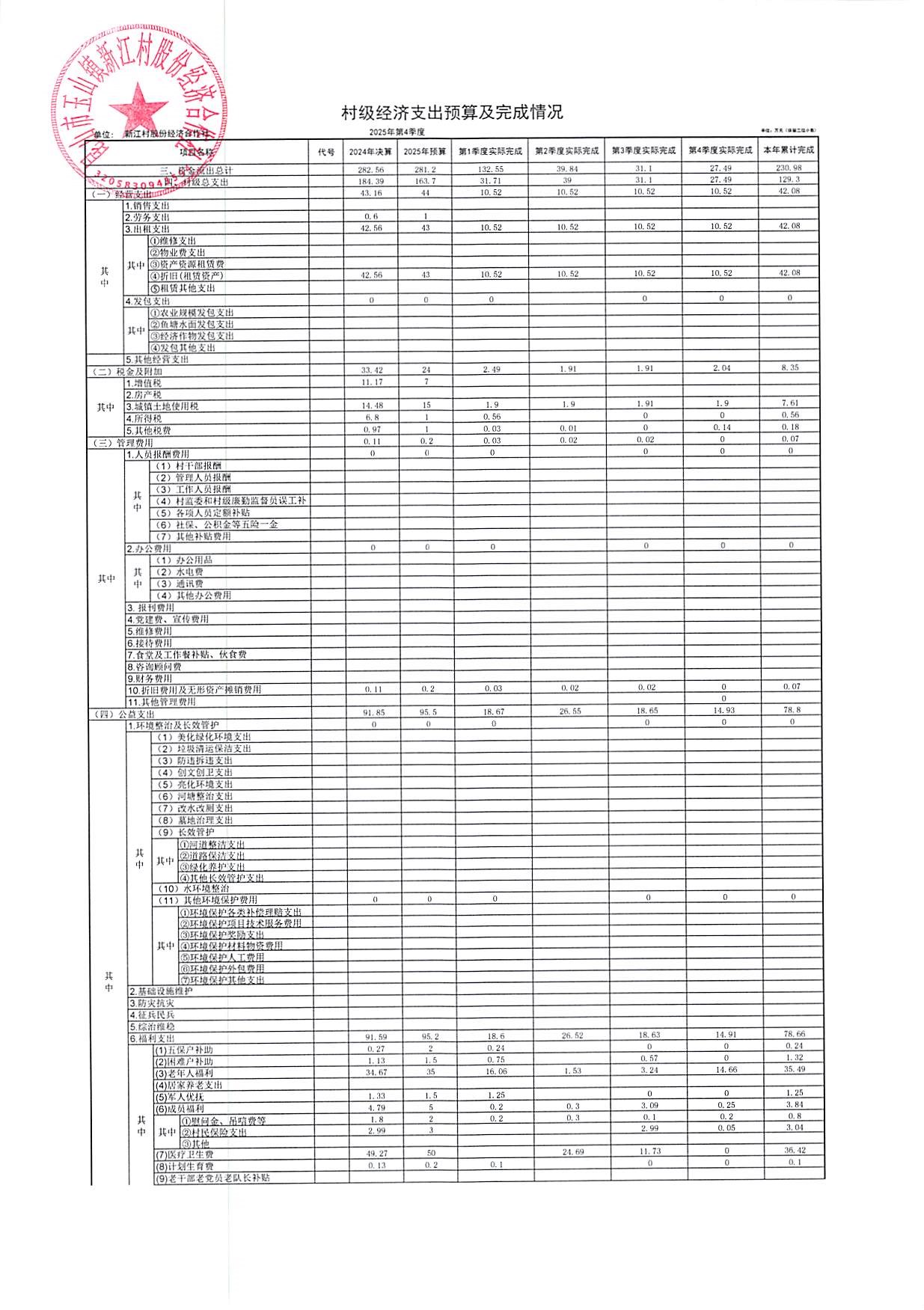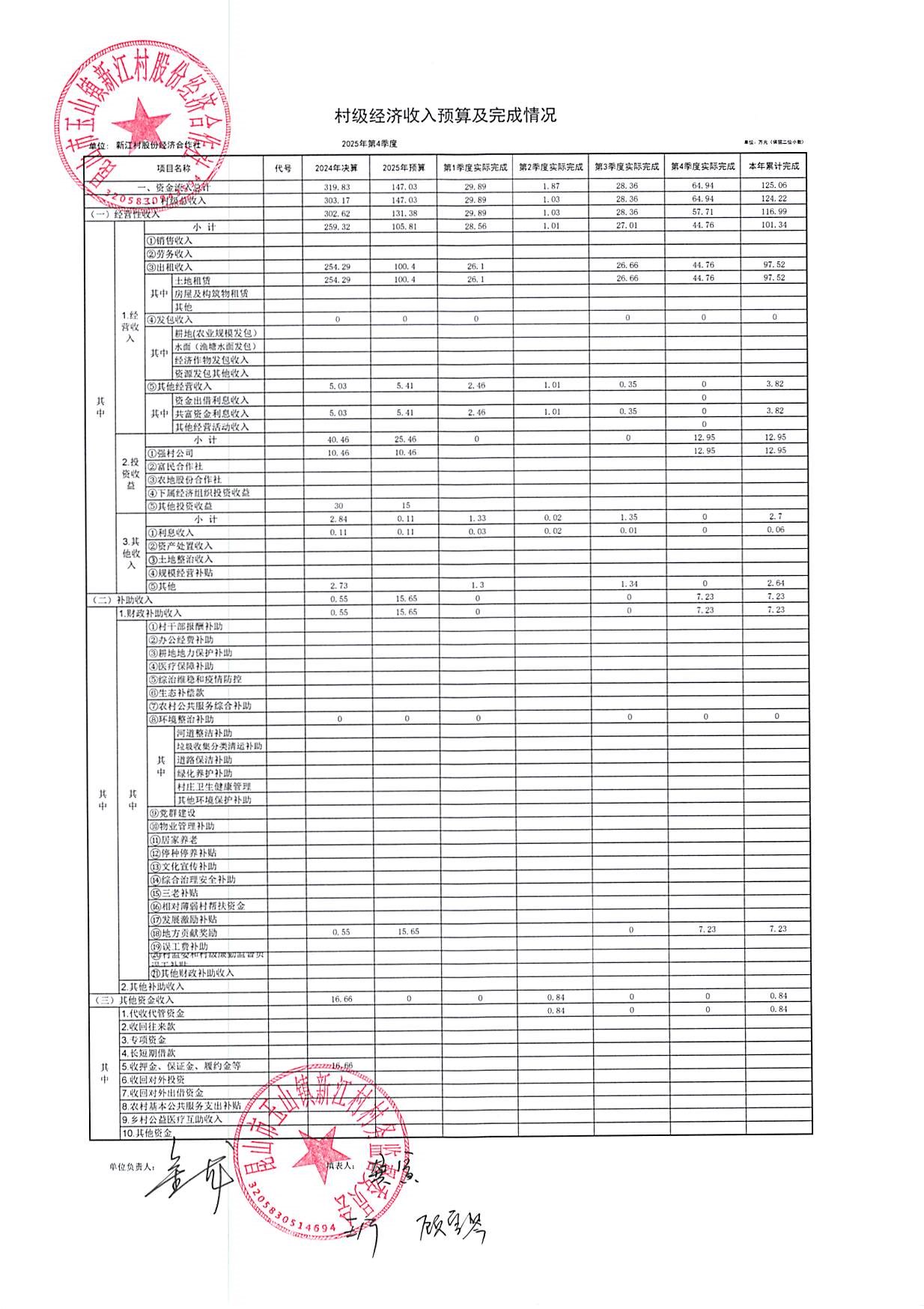 新江村2026年1月财务公开