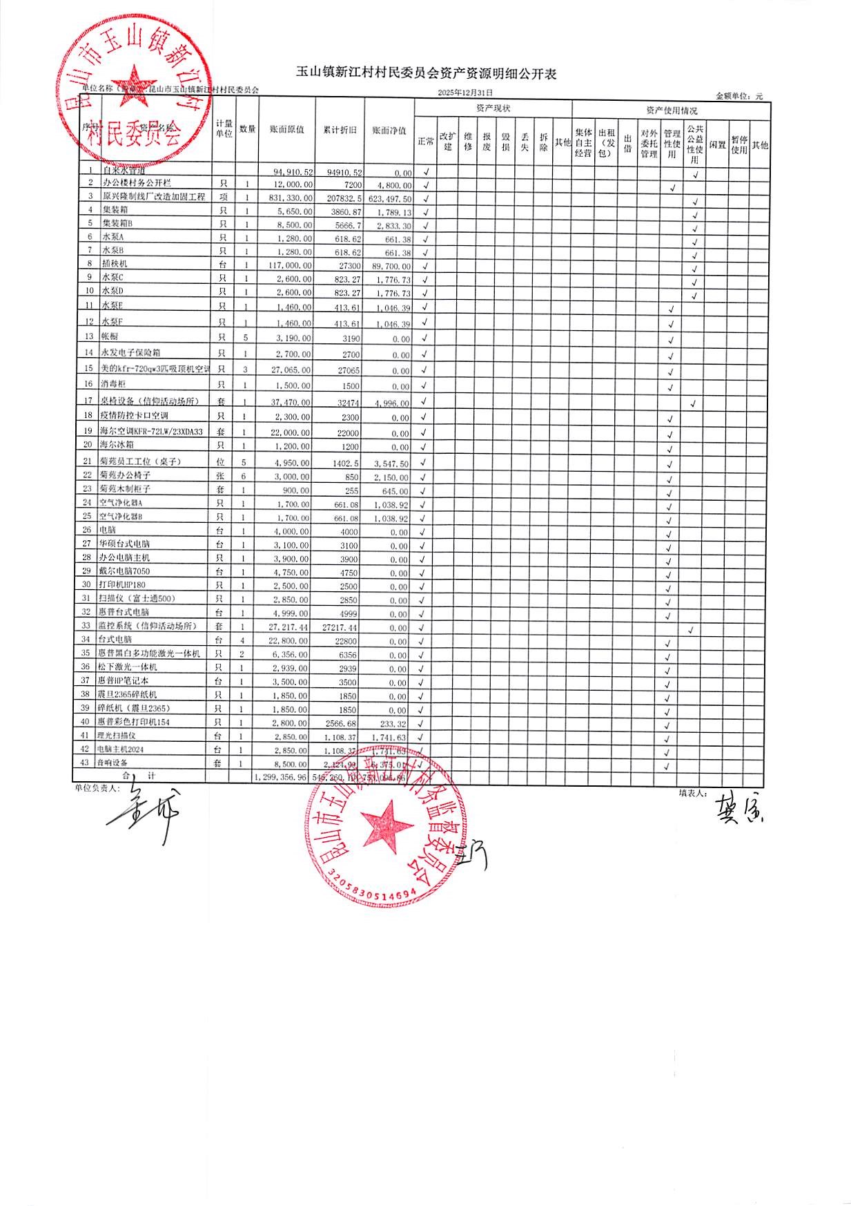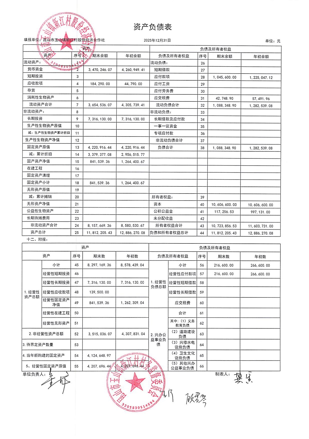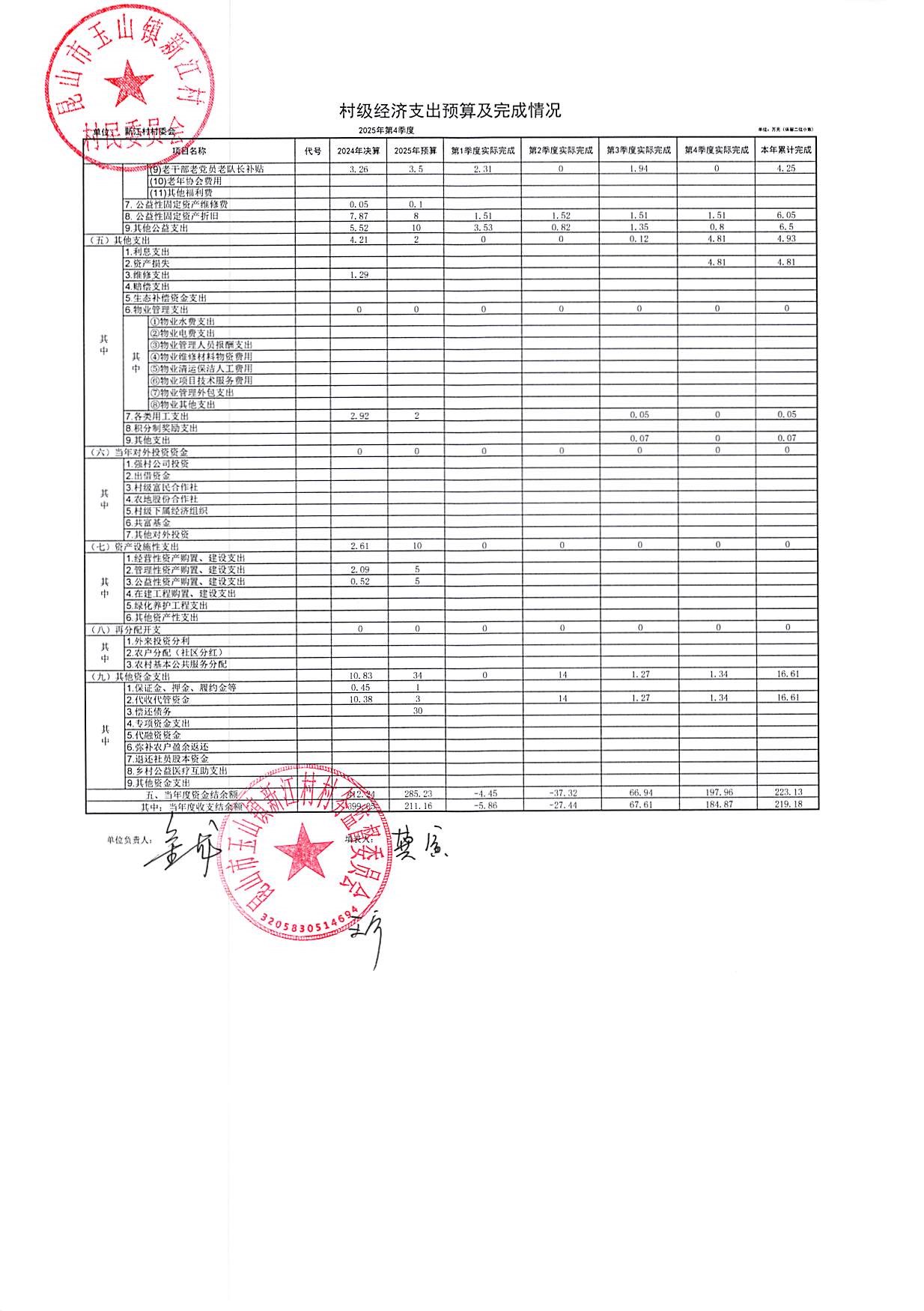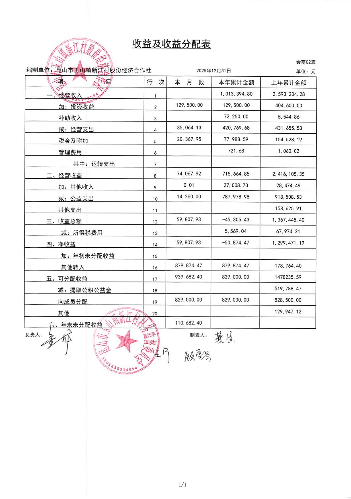 新江村2026年1月财务公开
