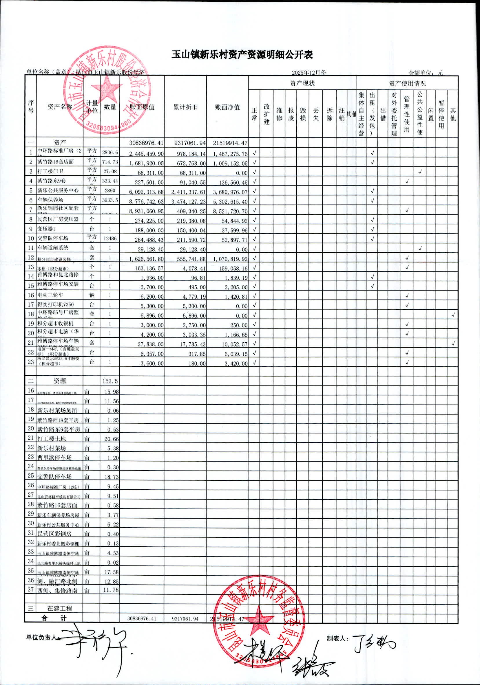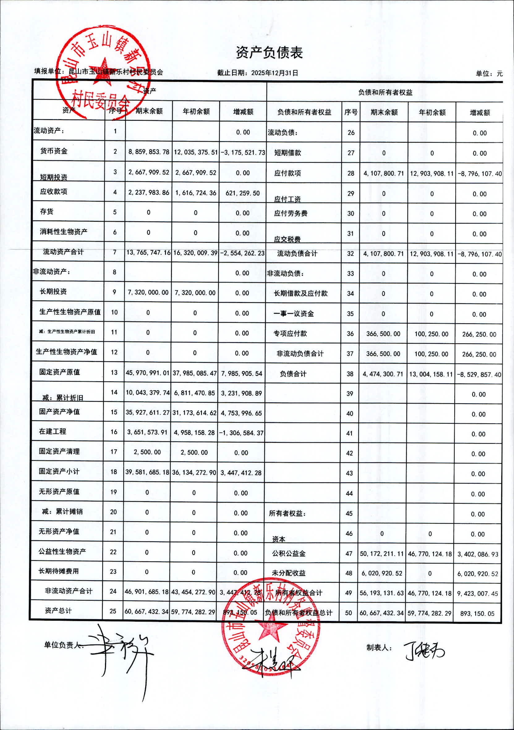 2026年1月份新乐村委会、股份经济合作社财务公开及公示图片