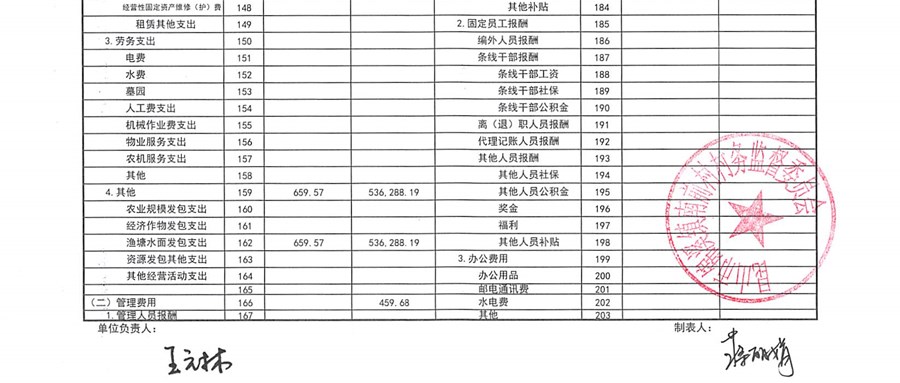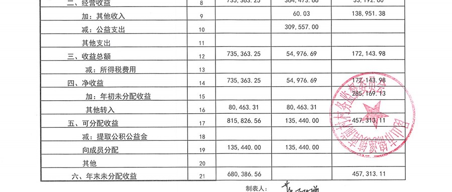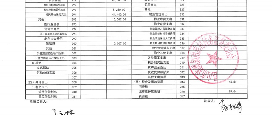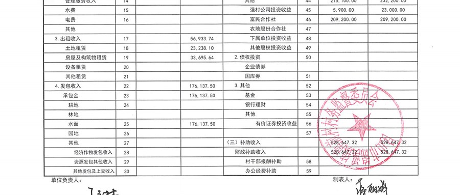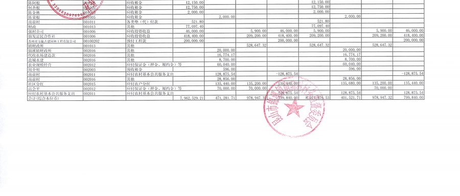 南前村股份合作社第四季度财务公开