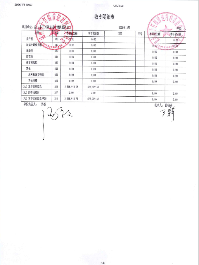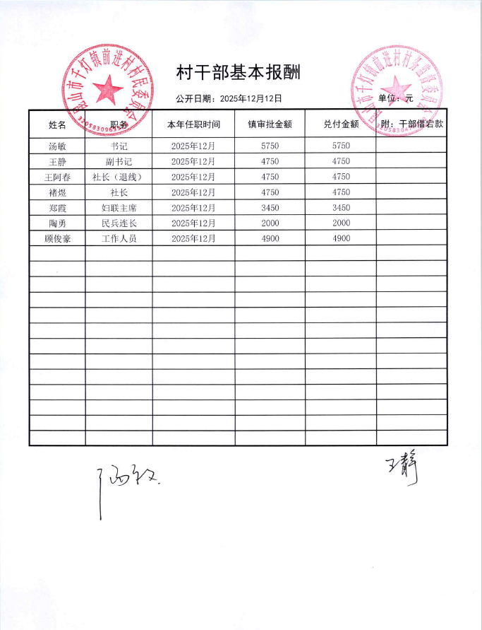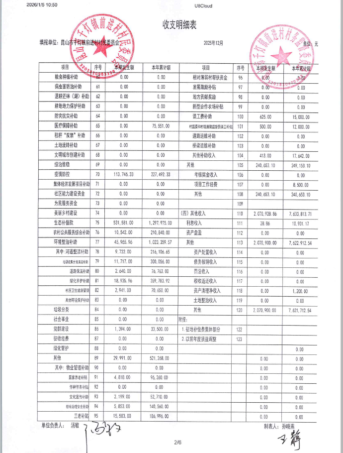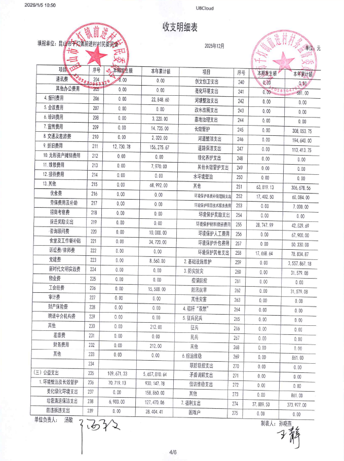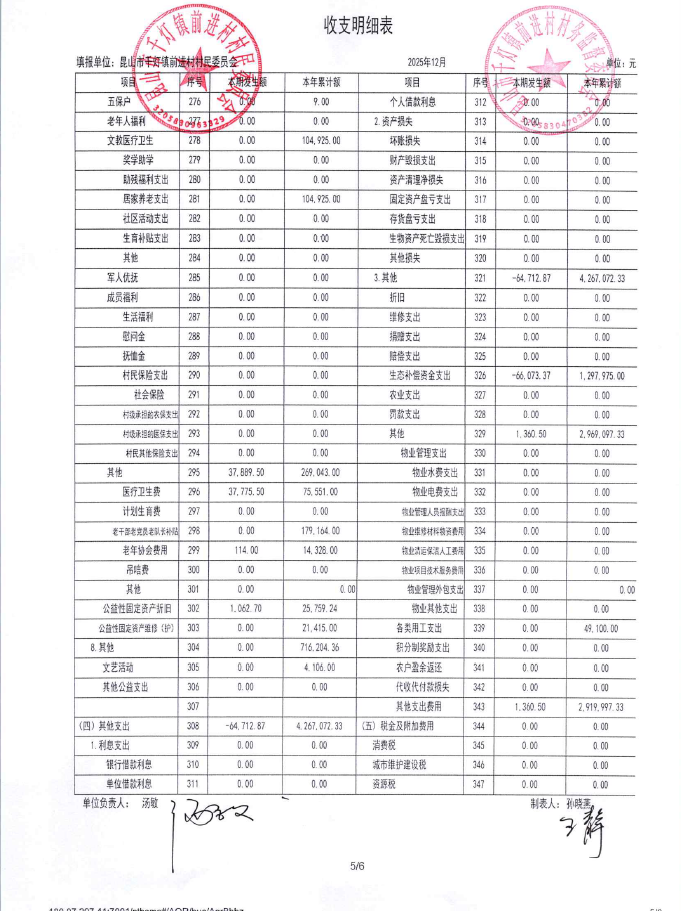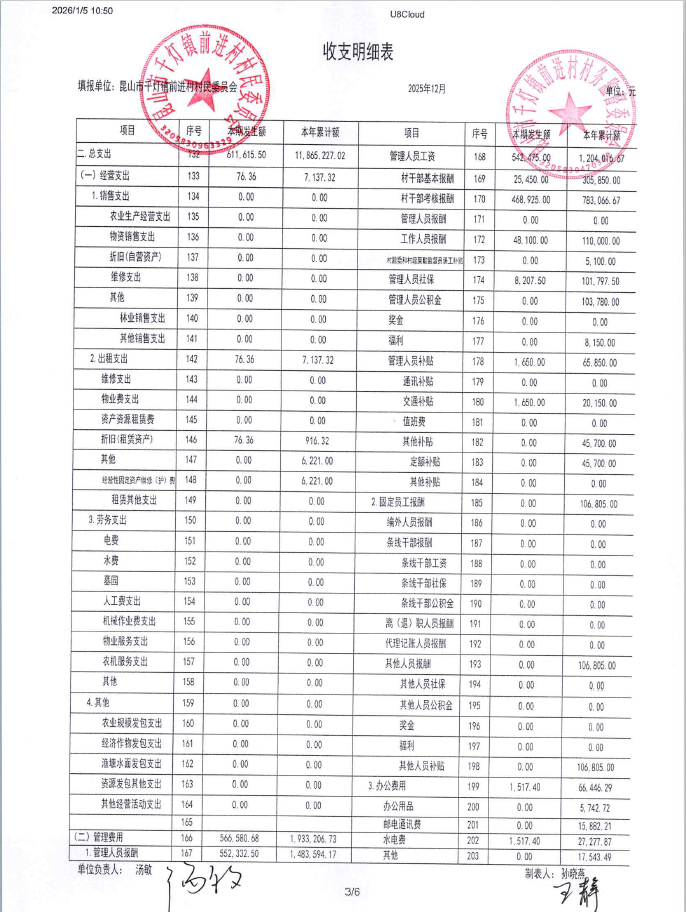 2025年12月前进村村民委员会财务公开