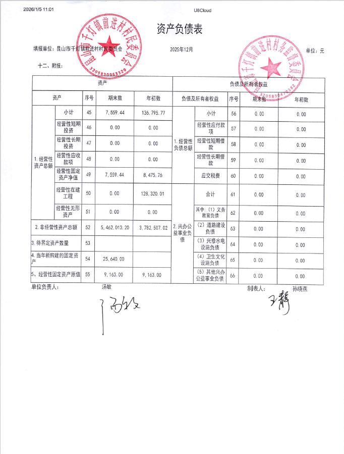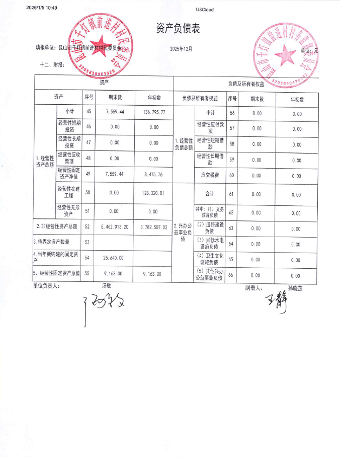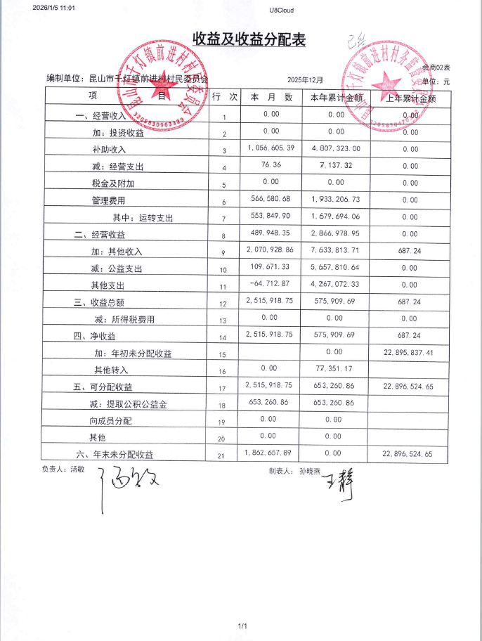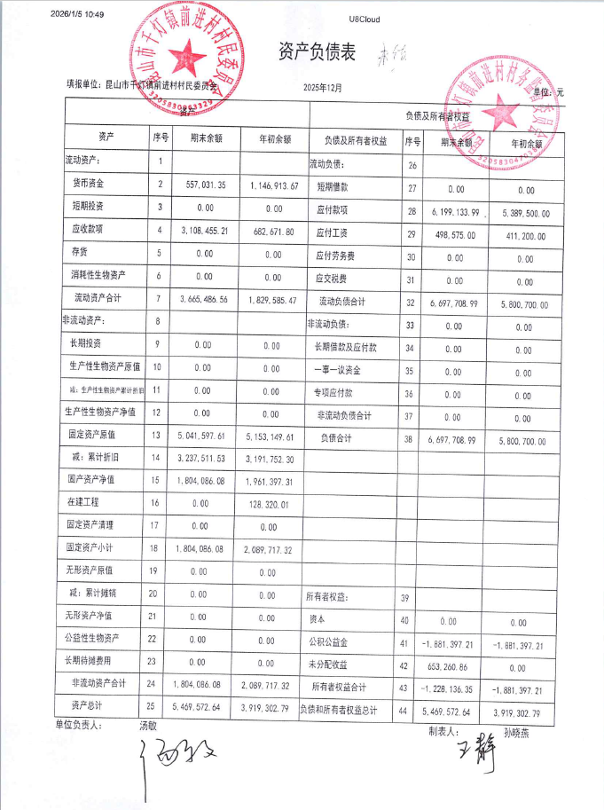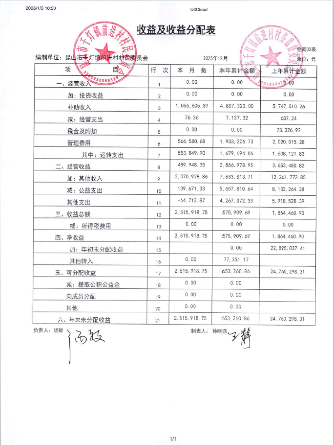 2025年12月前进村村民委员会财务公开