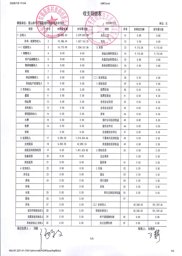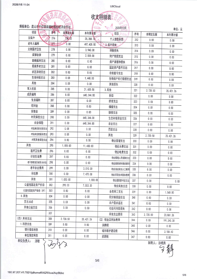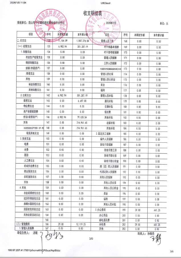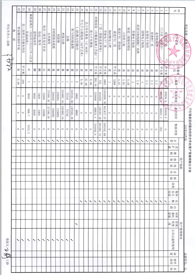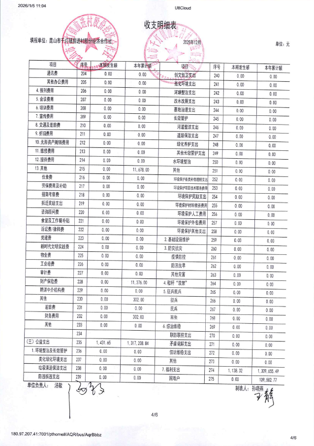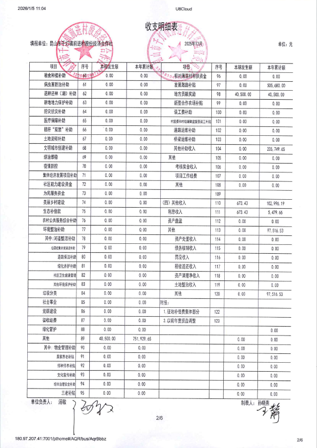 2025年12月前进村股份经济合作社财务公开
