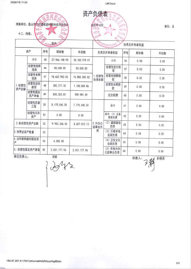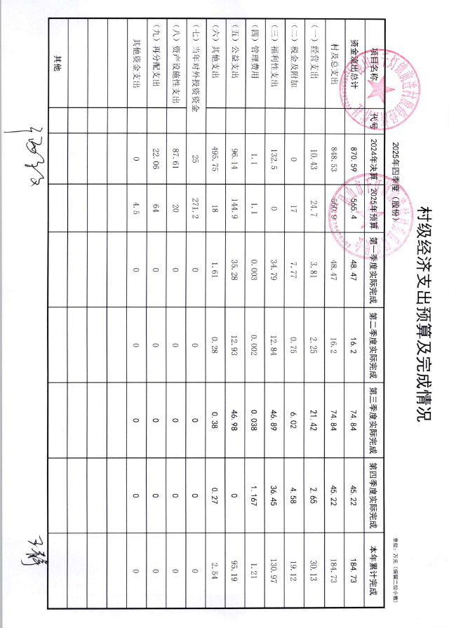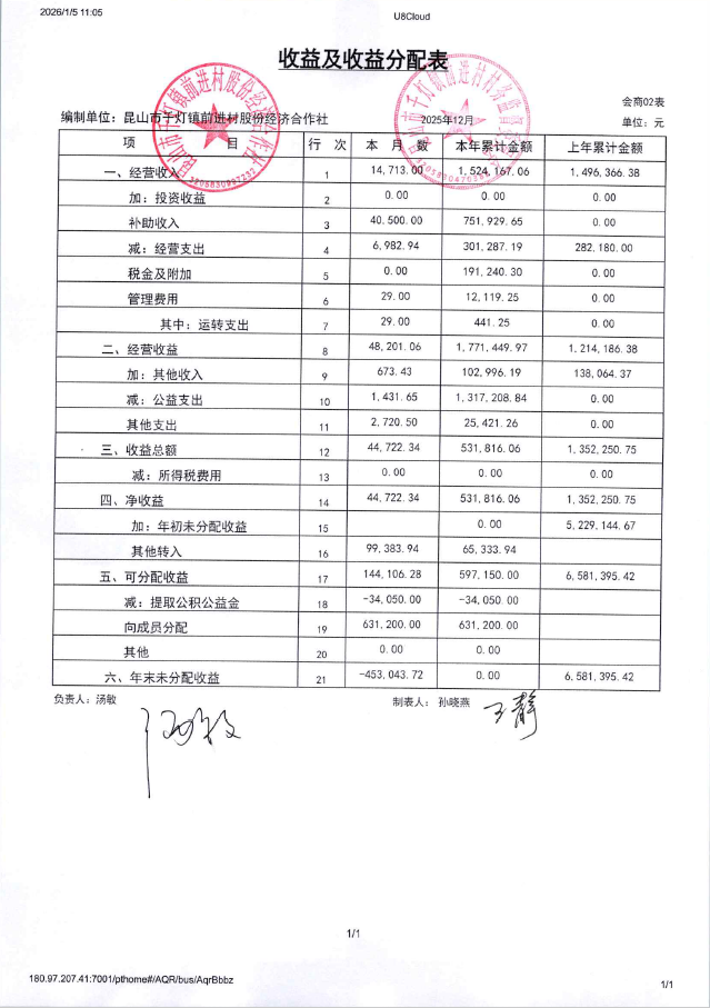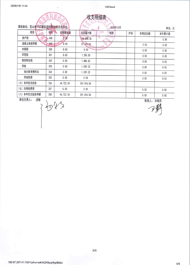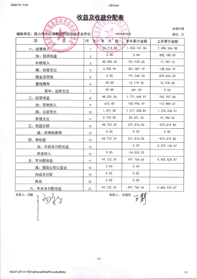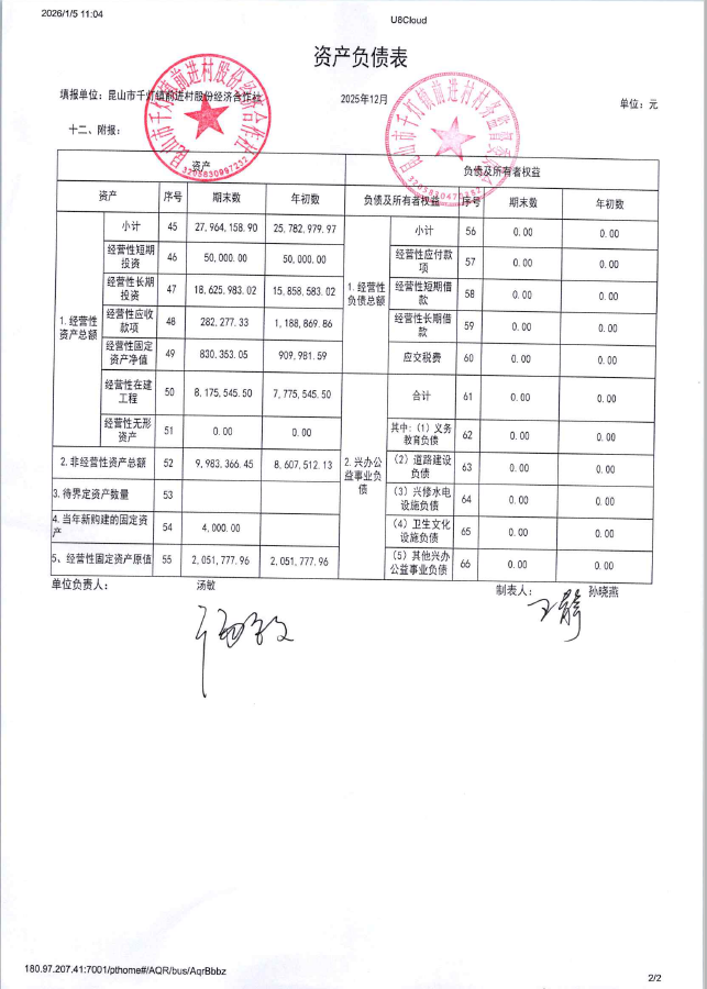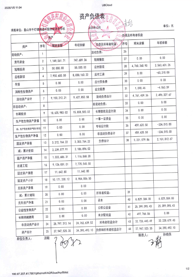 2025年12月前进村股份经济合作社财务公开