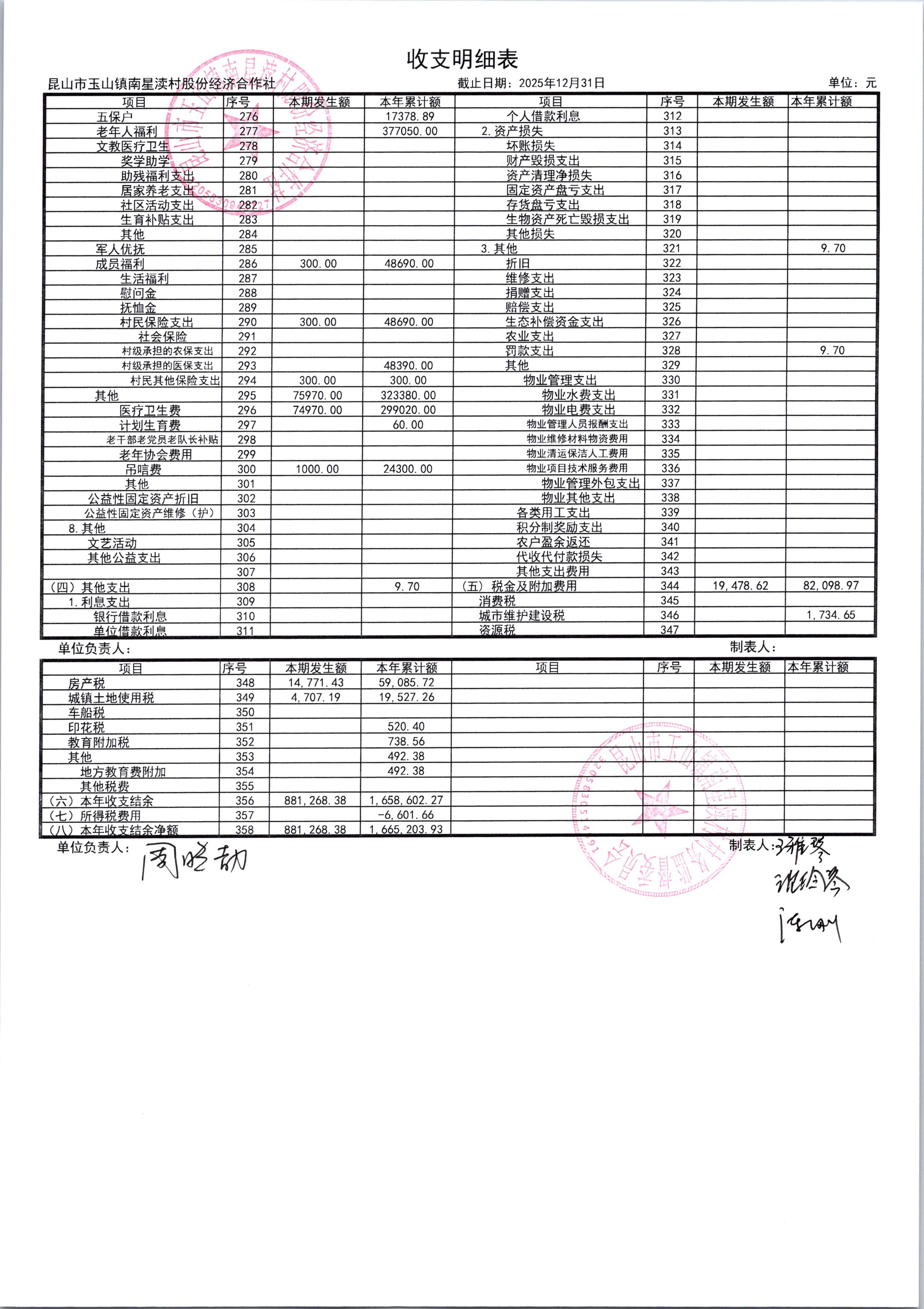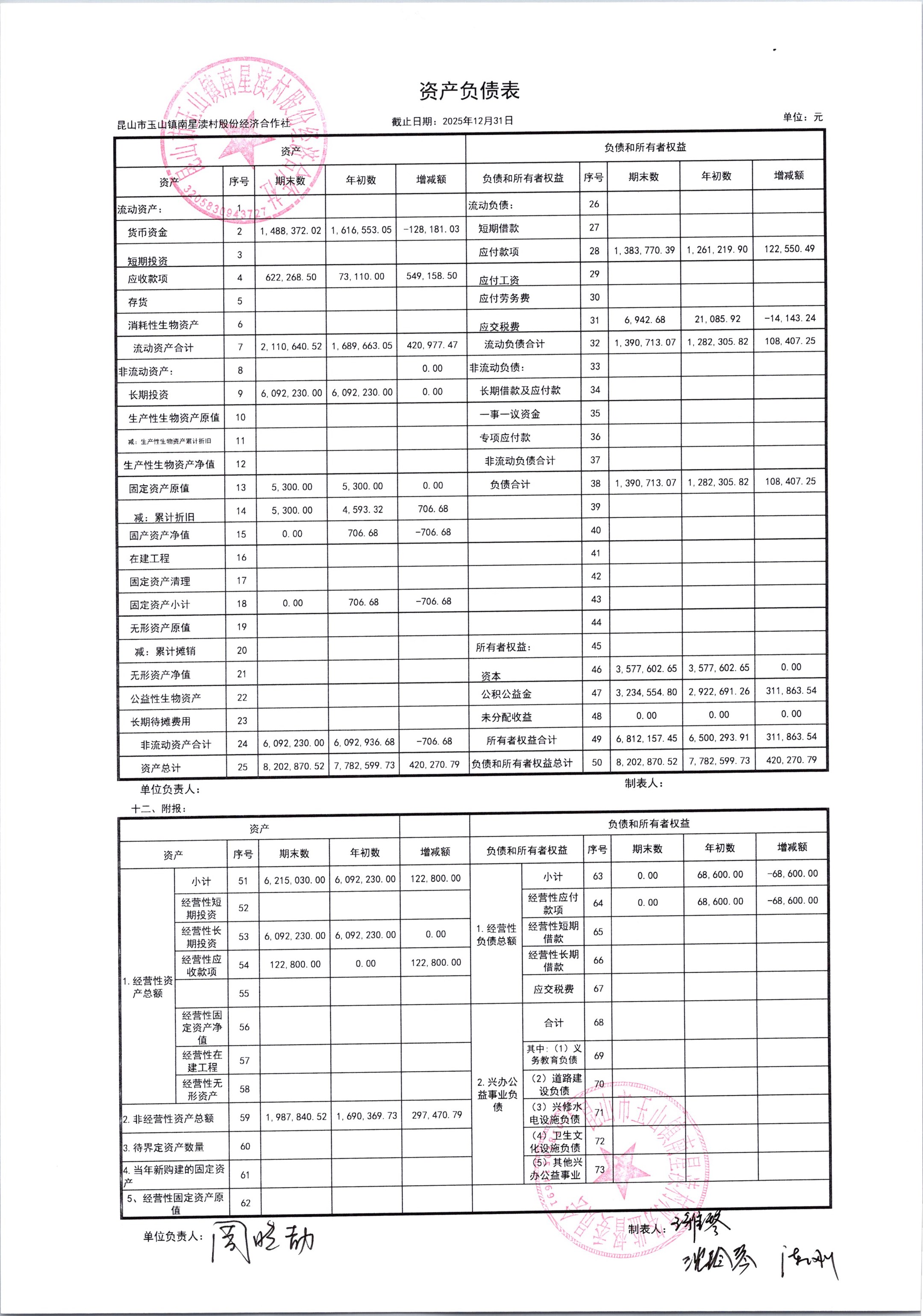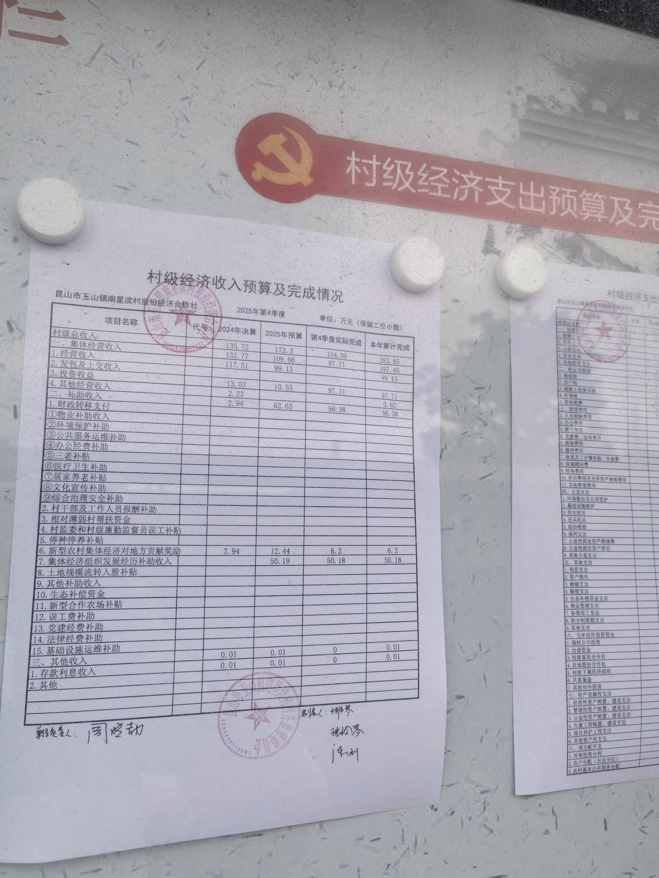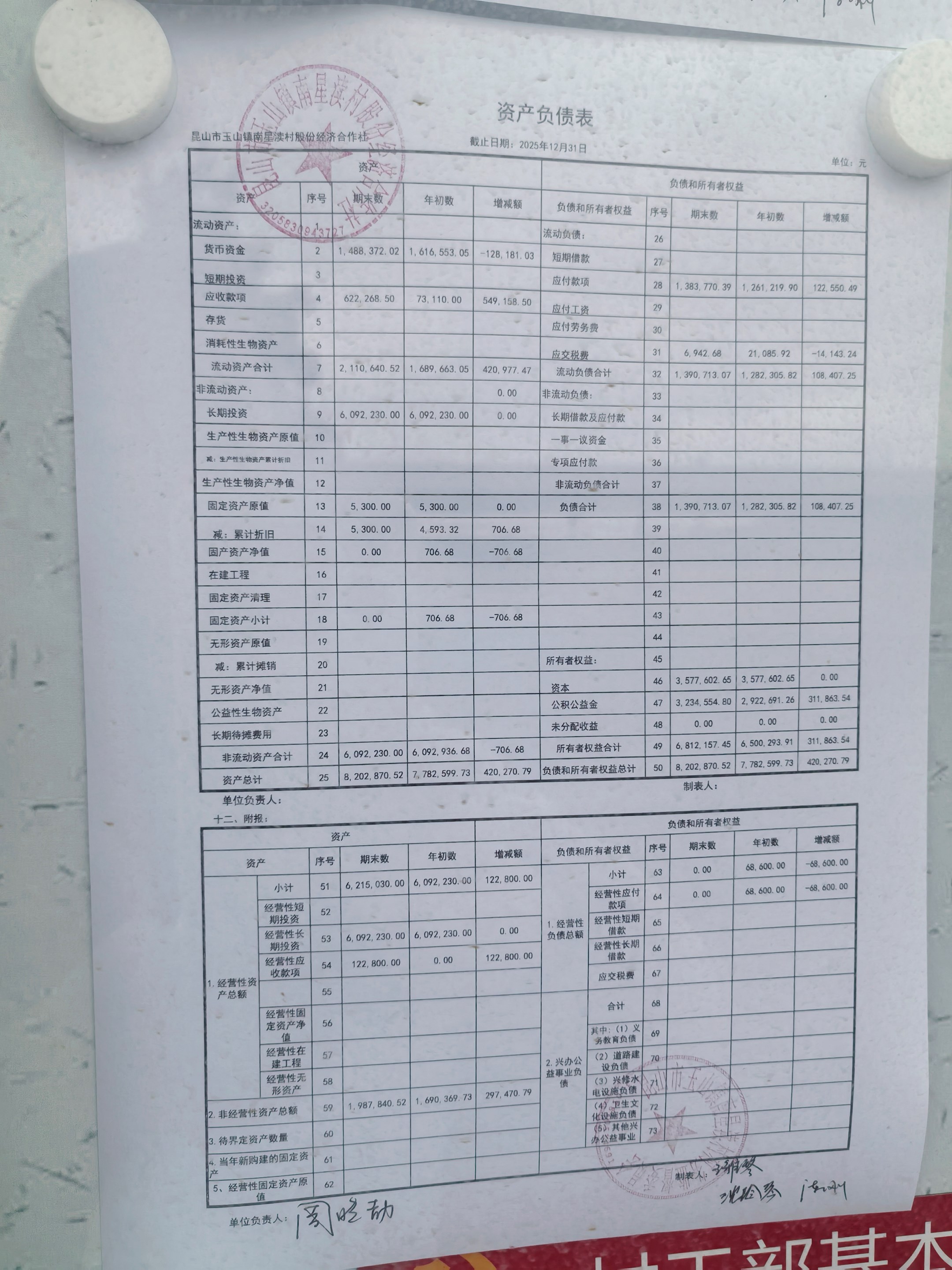 高新区南星渎村2026年1月财务公开(股份经济合作社)
