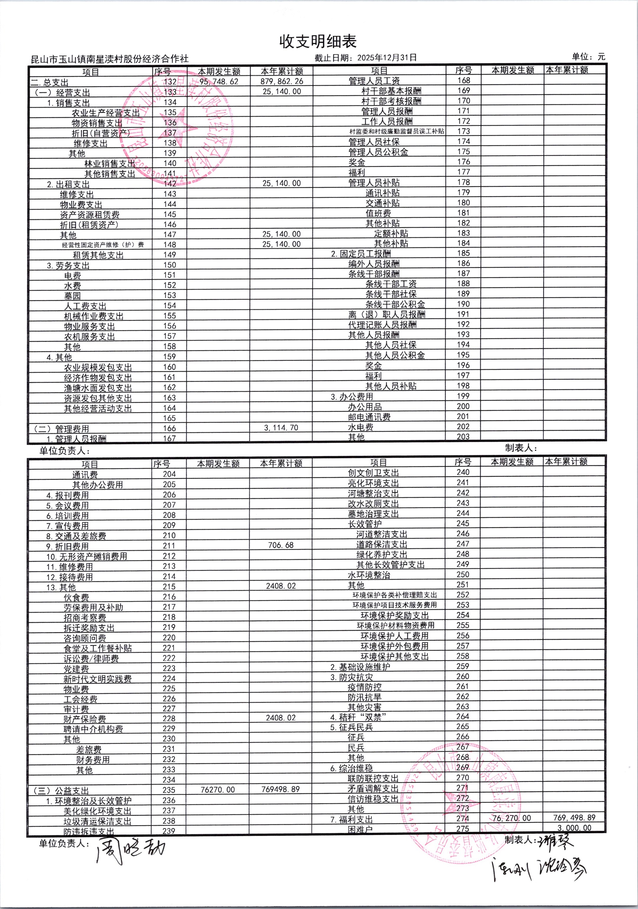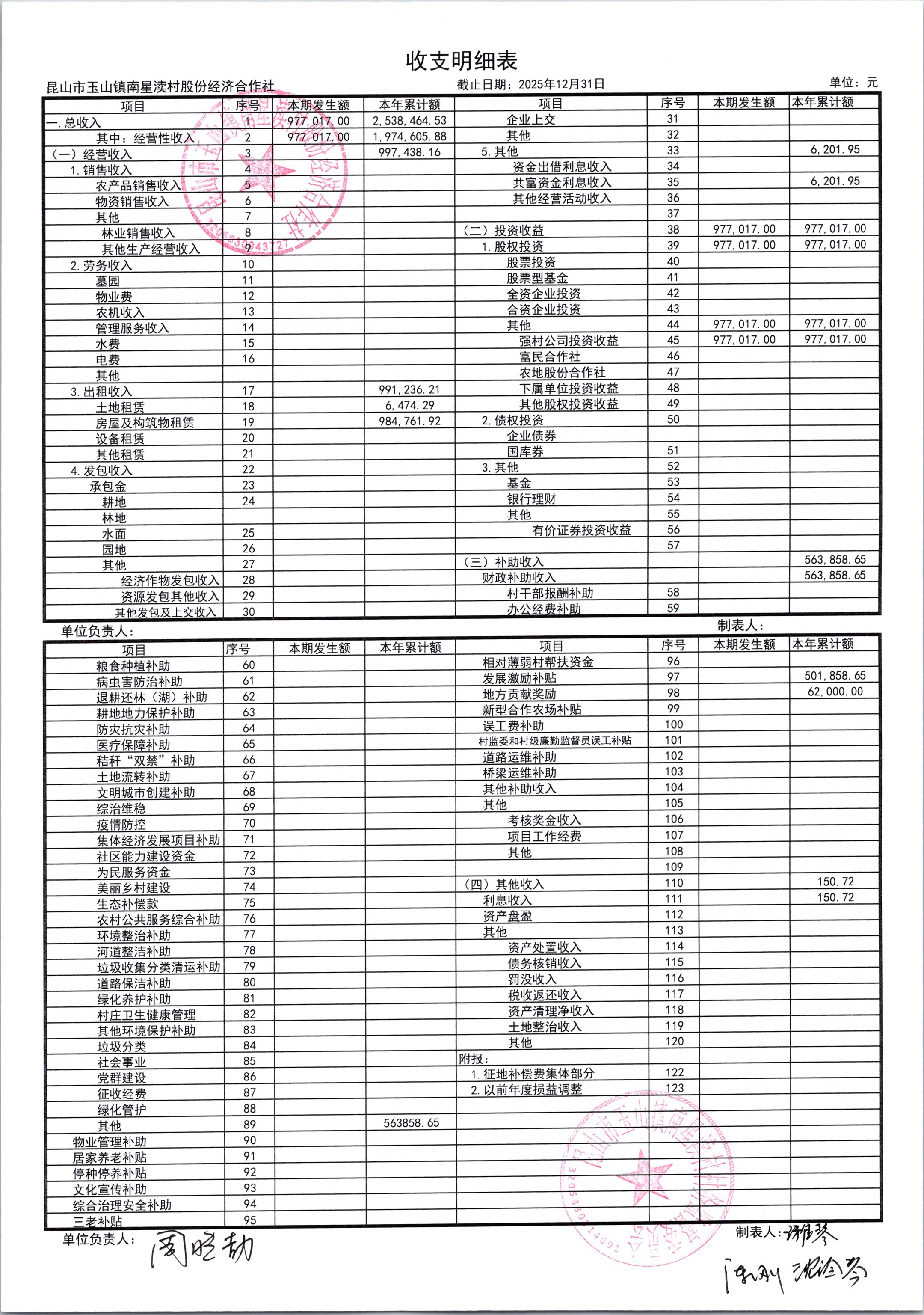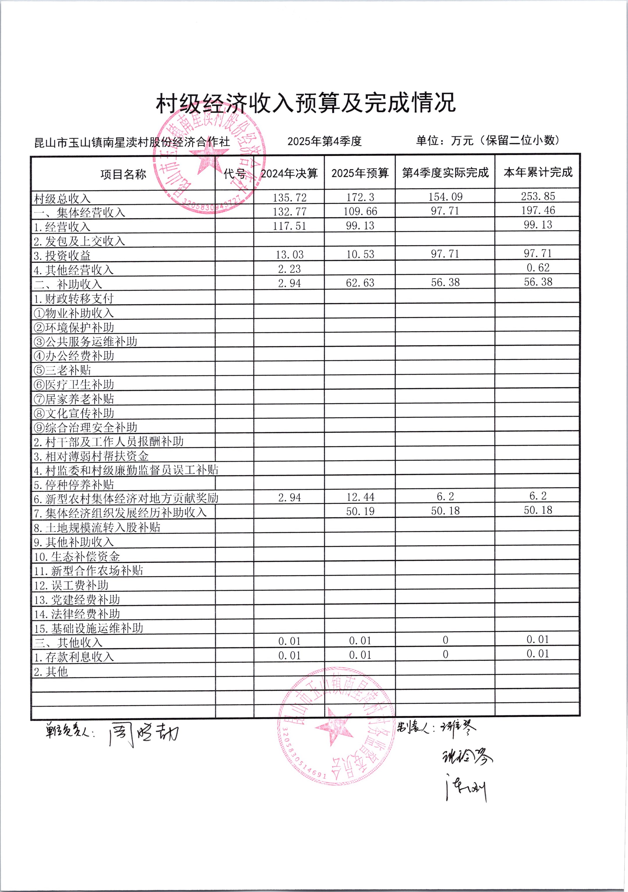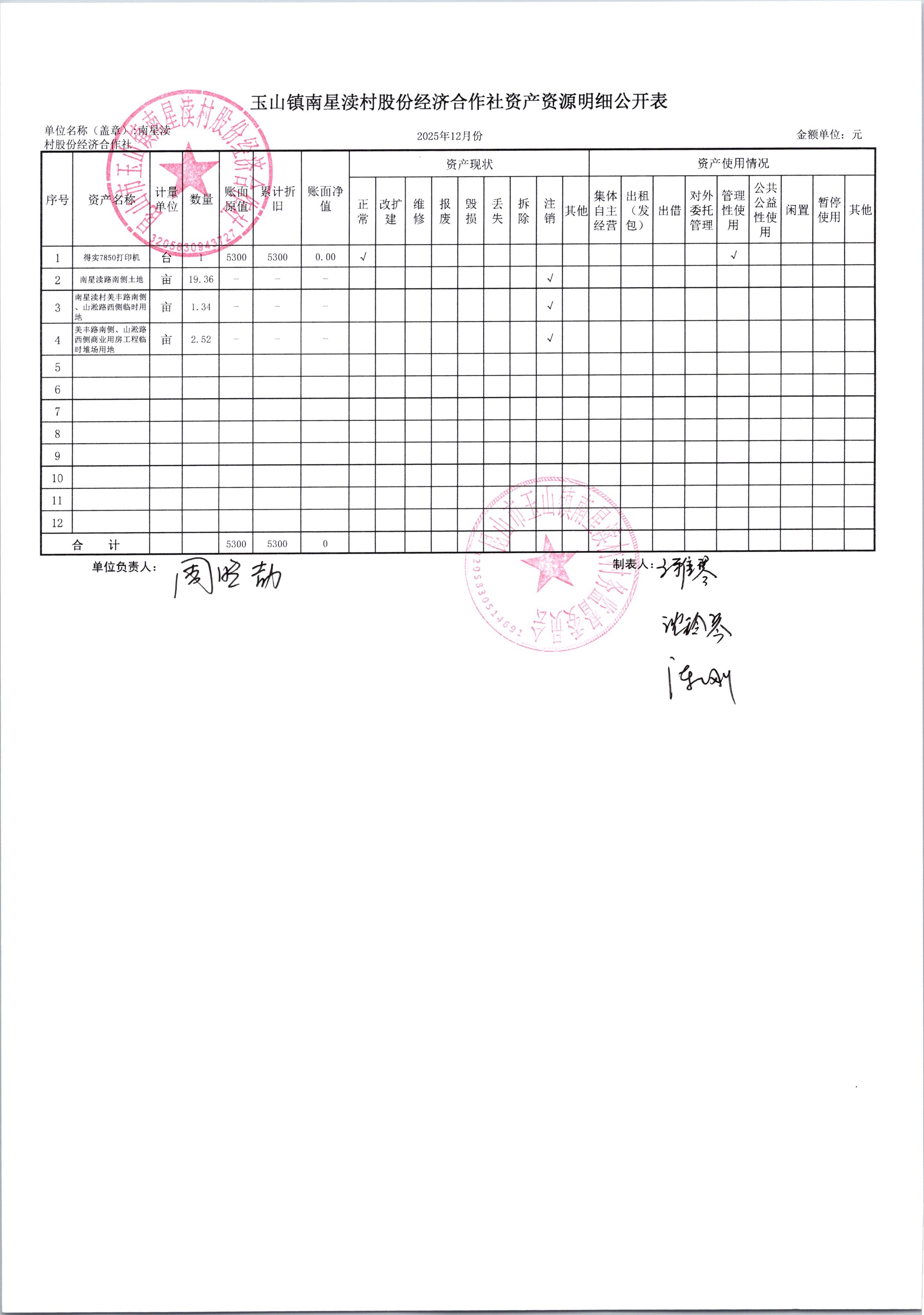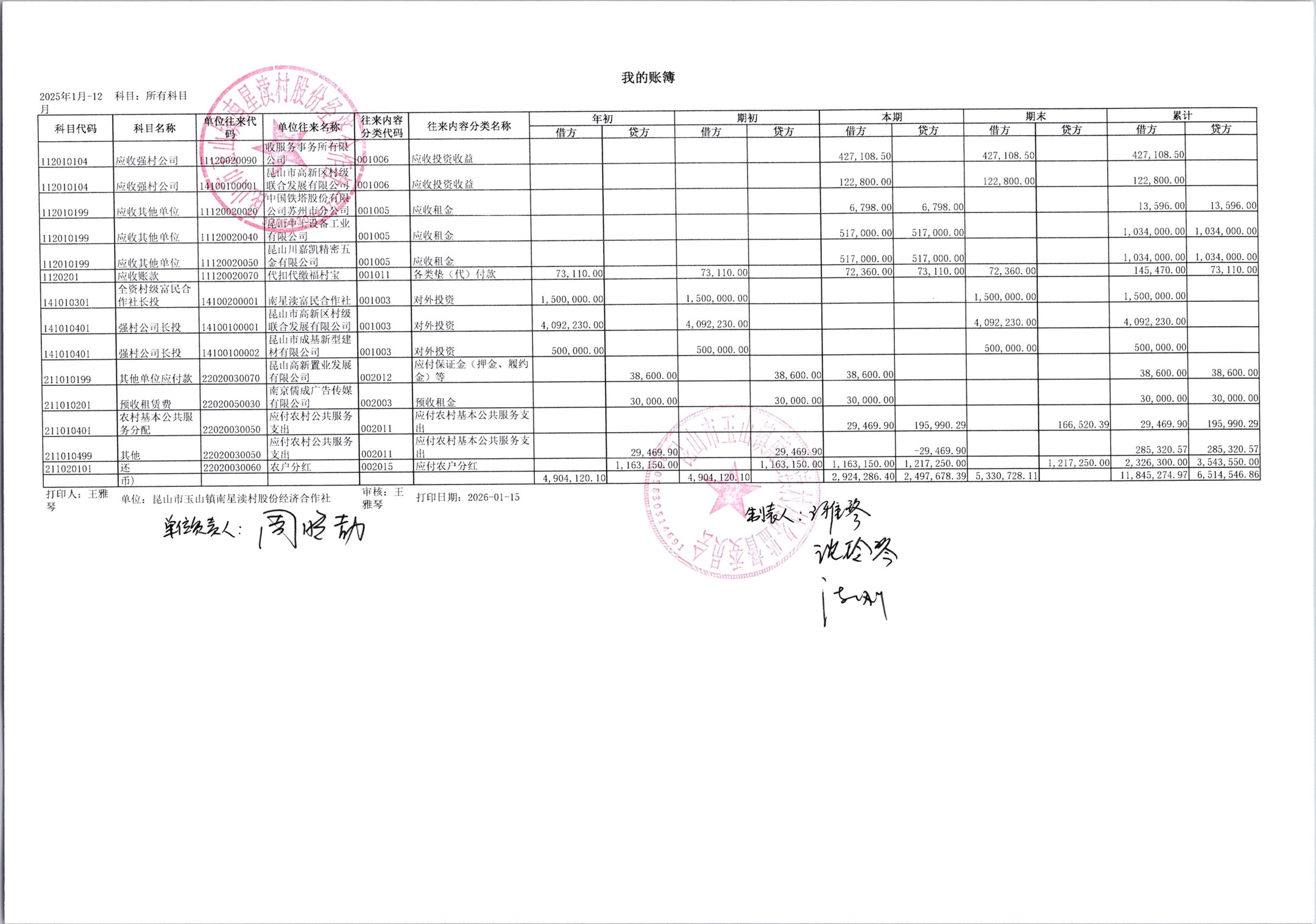 高新区南星渎村2026年1月财务公开(股份经济合作社)