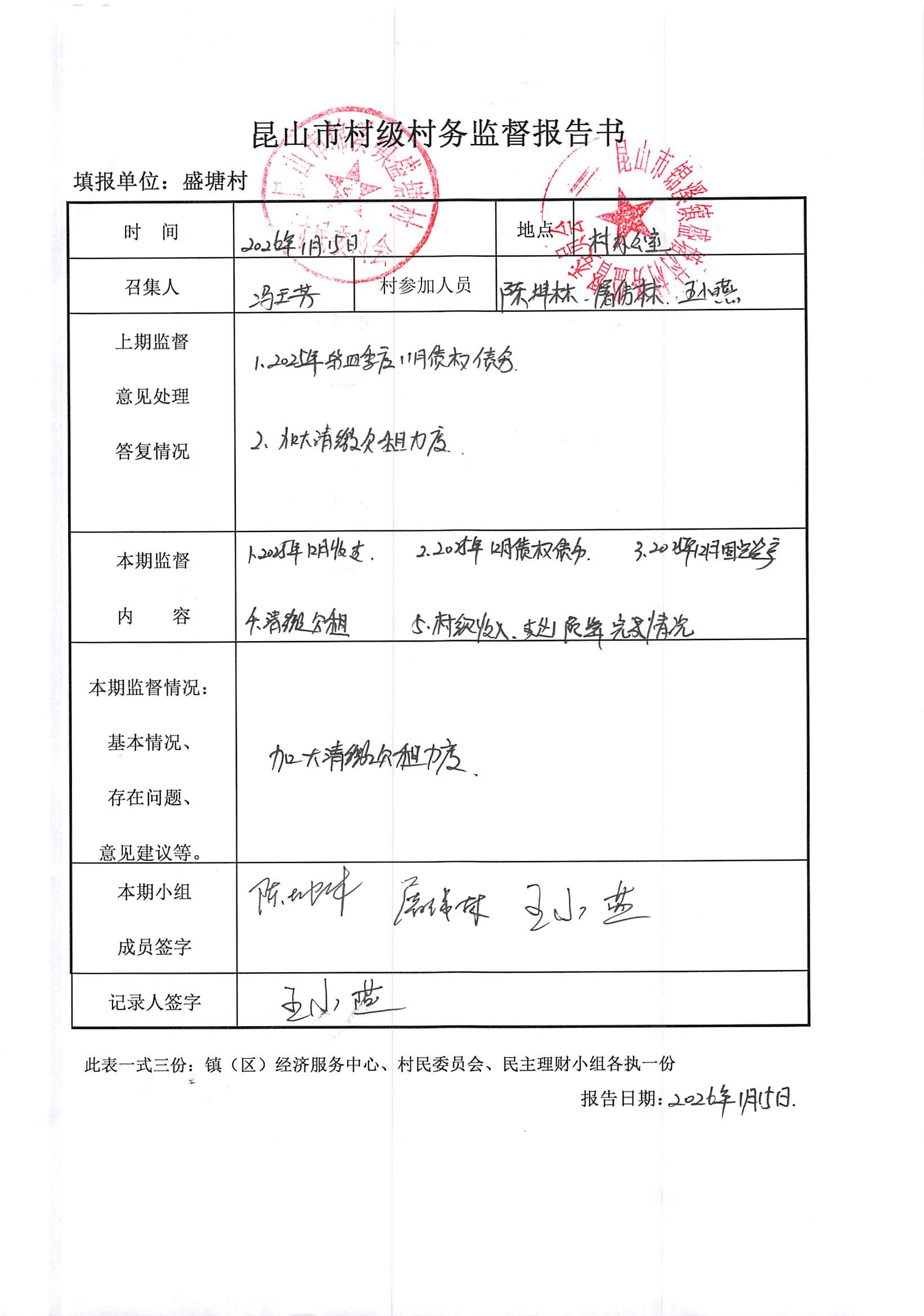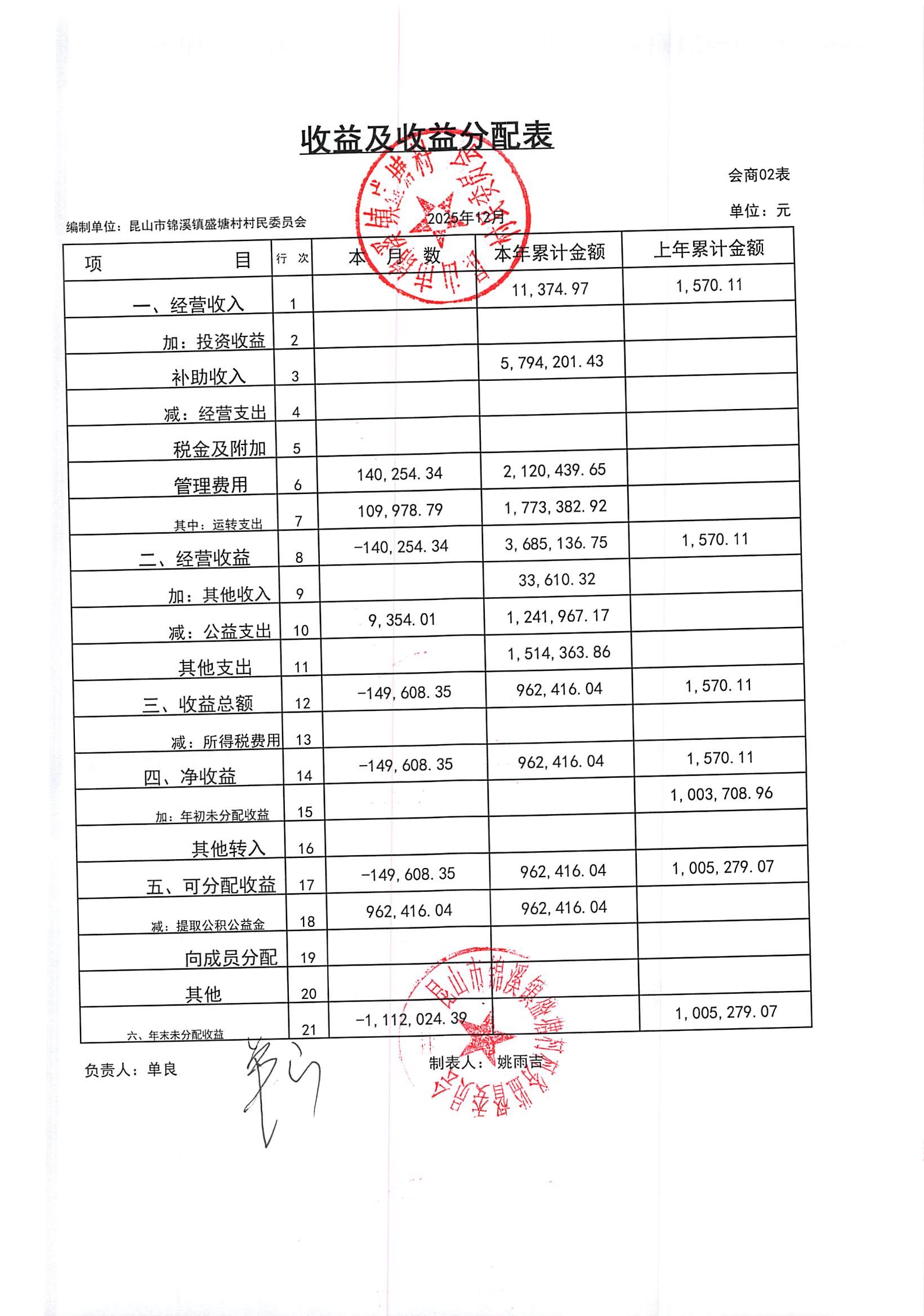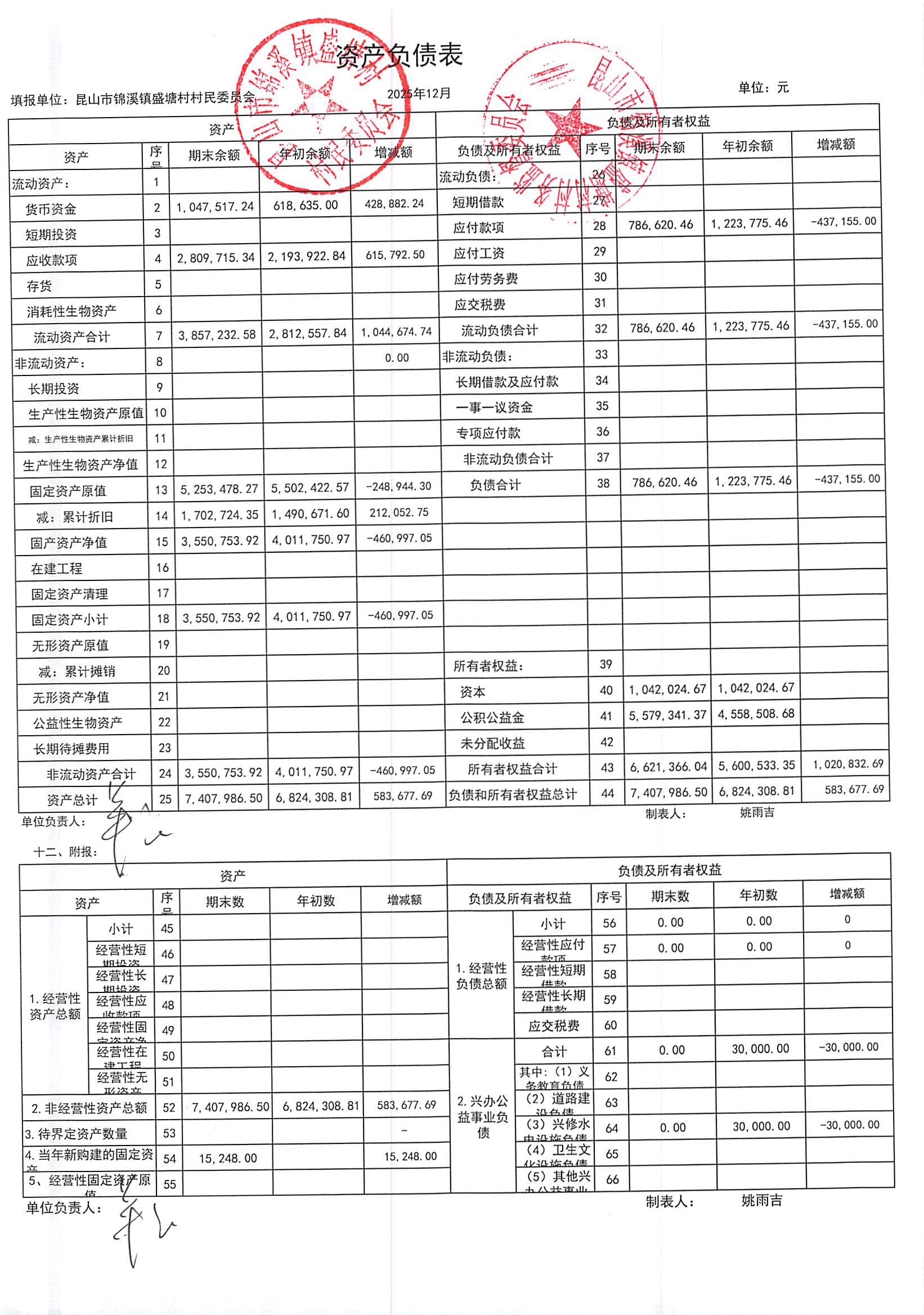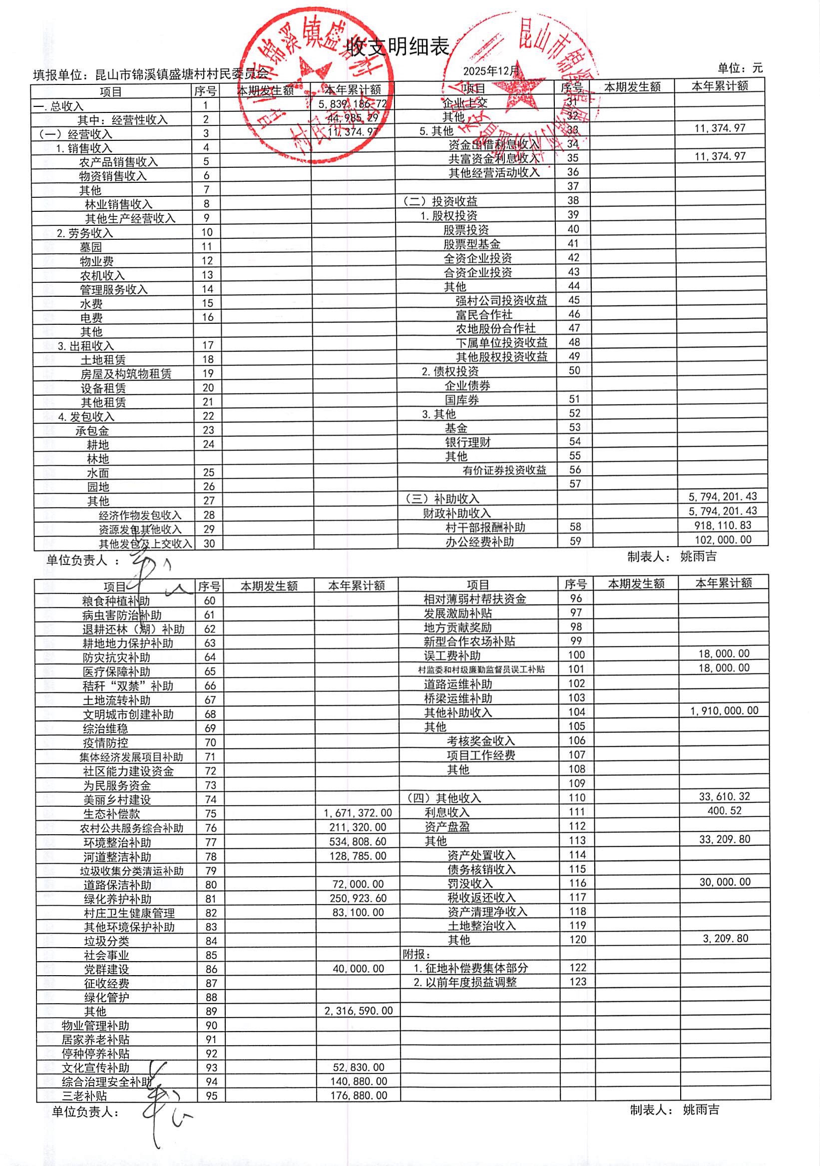 昆山市锦溪镇盛塘村2025年第四季度12月村财务公开资料