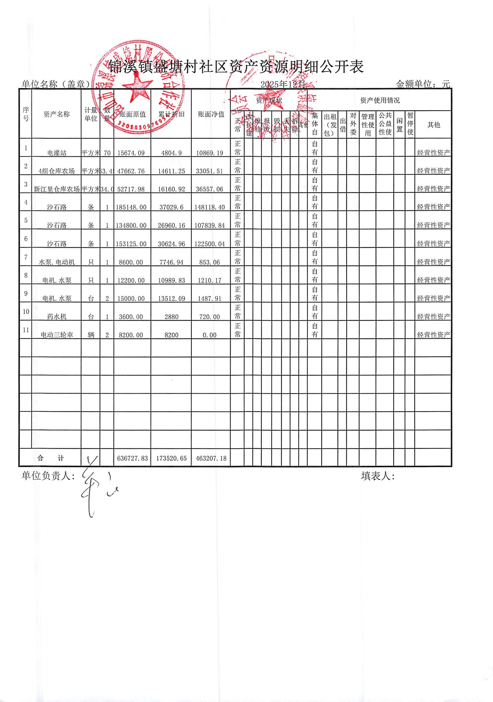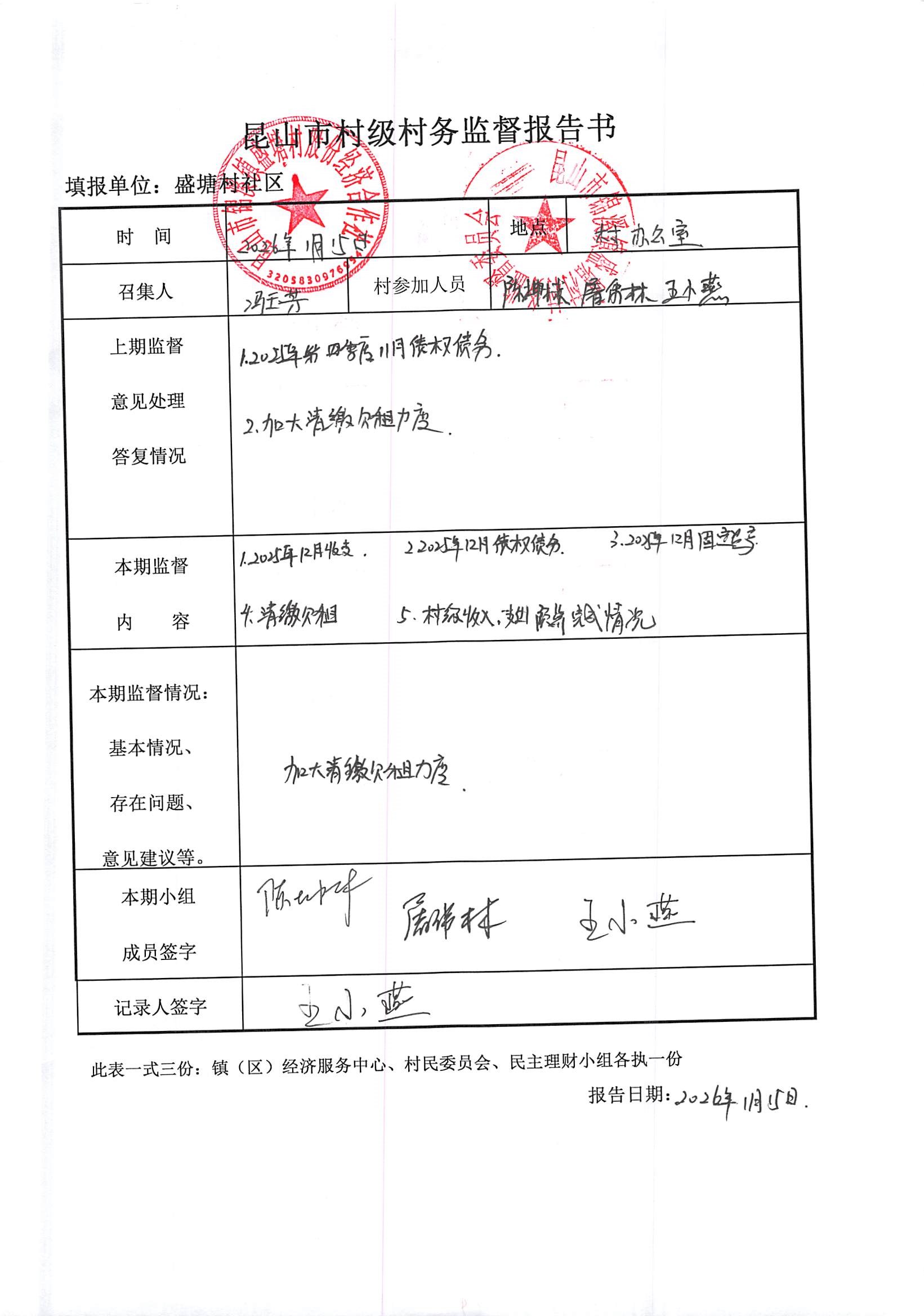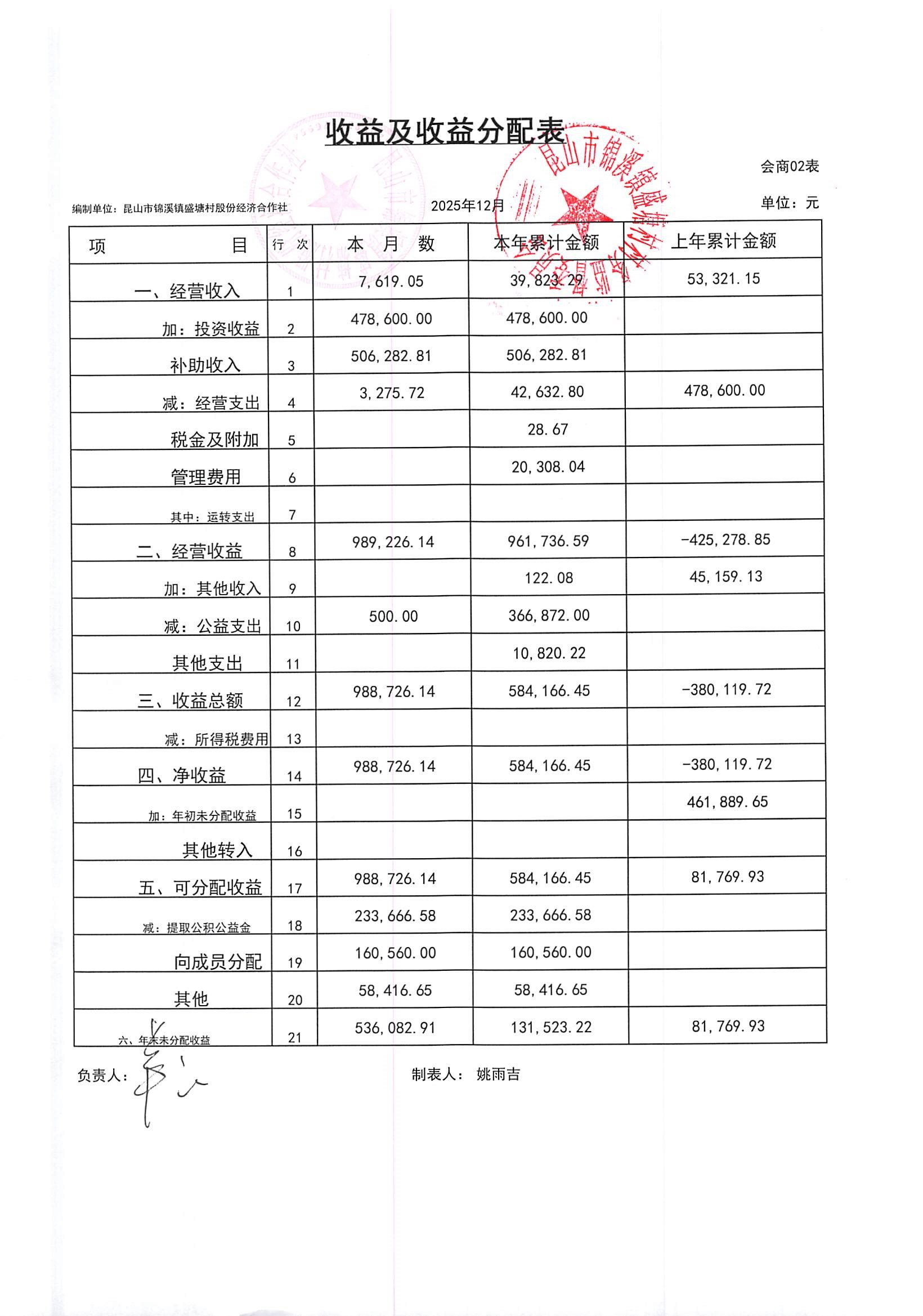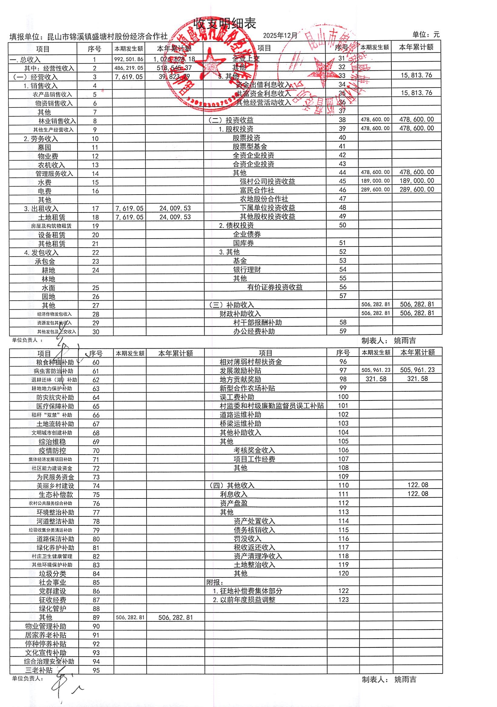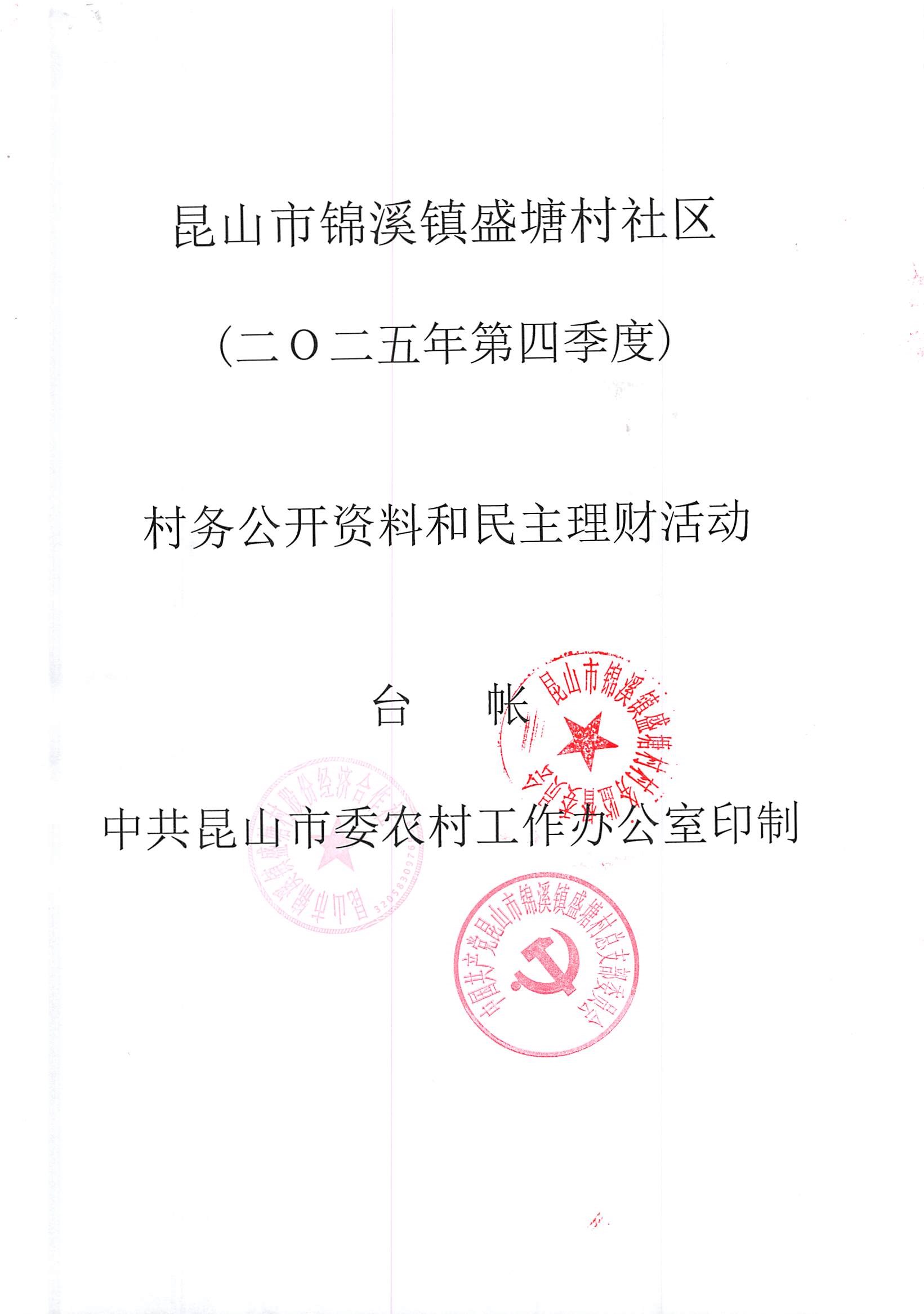 昆山市锦溪镇盛塘村2025年第四季度12月社区财务公开资料