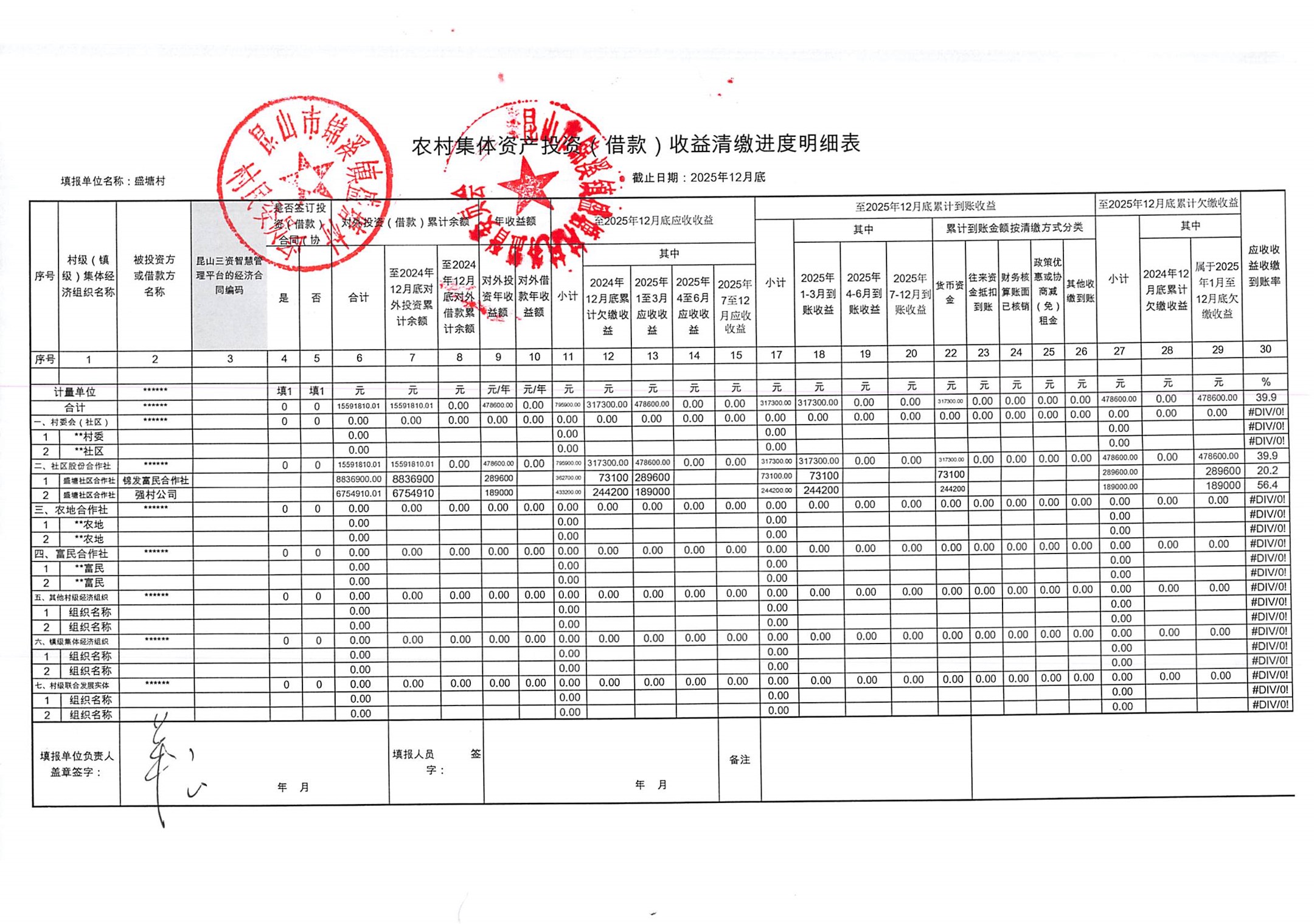 2025年第四季度盛塘村农村集体资产经济合同执行情况统计表