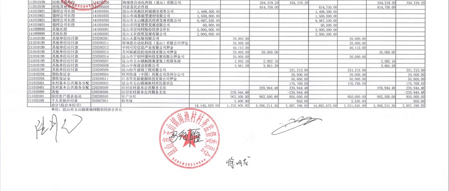 南渔村股份经济合作社26年1月财务公开