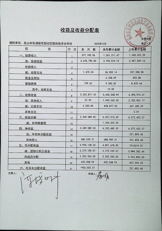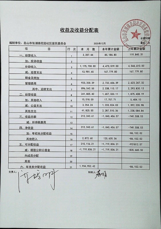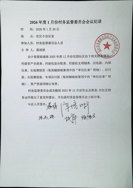 2026年1月份财务公开