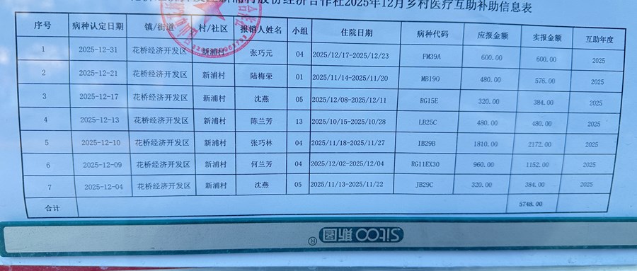 新浦村股份经济合作社2025年12月乡村医疗互助补助信息表公示