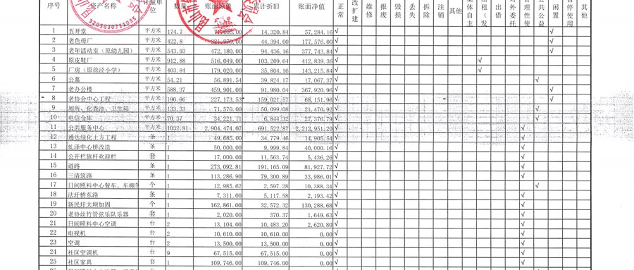 村盖章事项名录