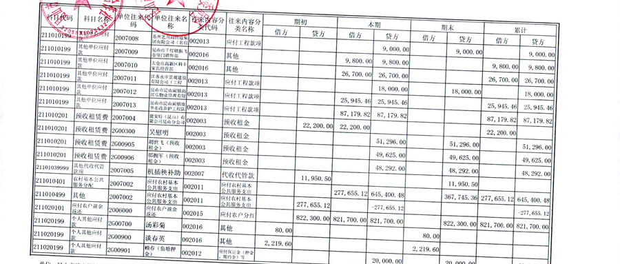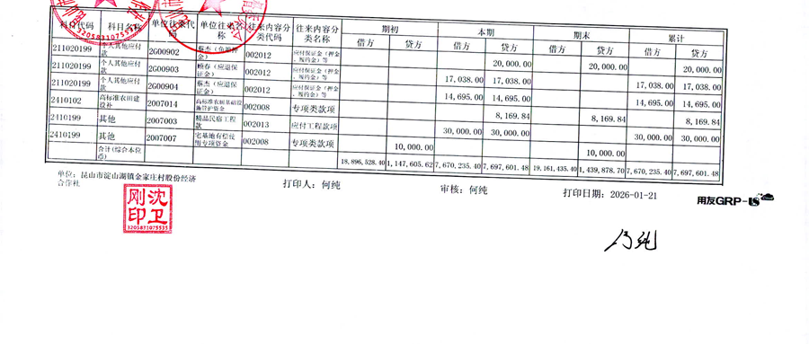 2025年12月金家庄村股份经济合作社财务公开
