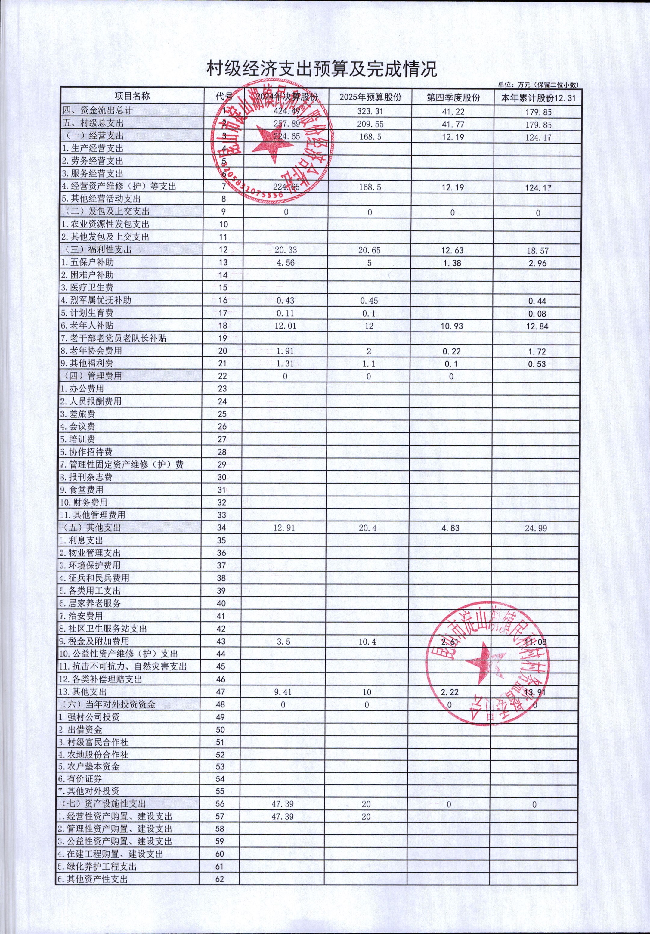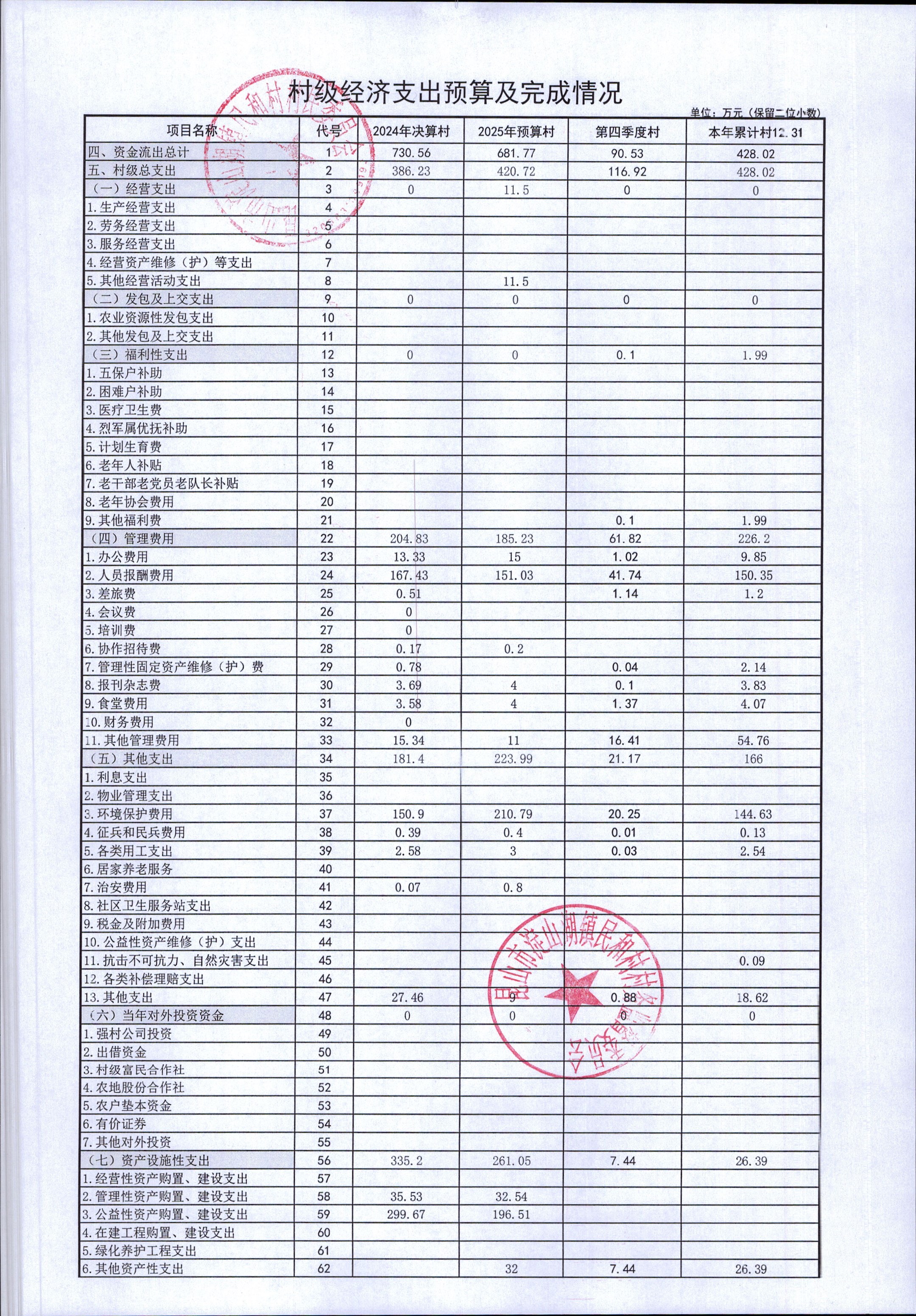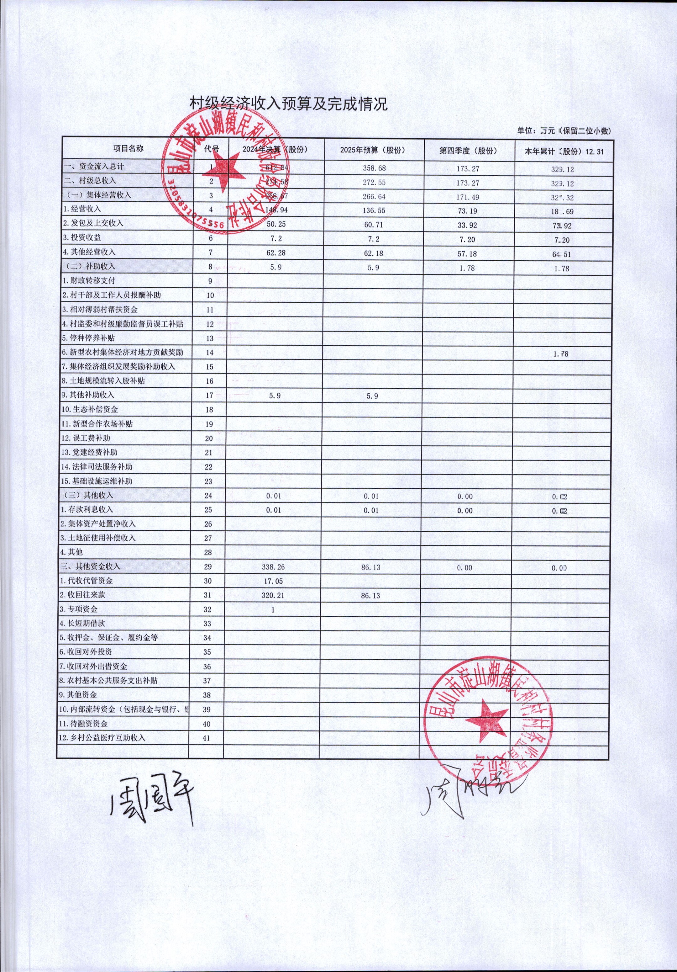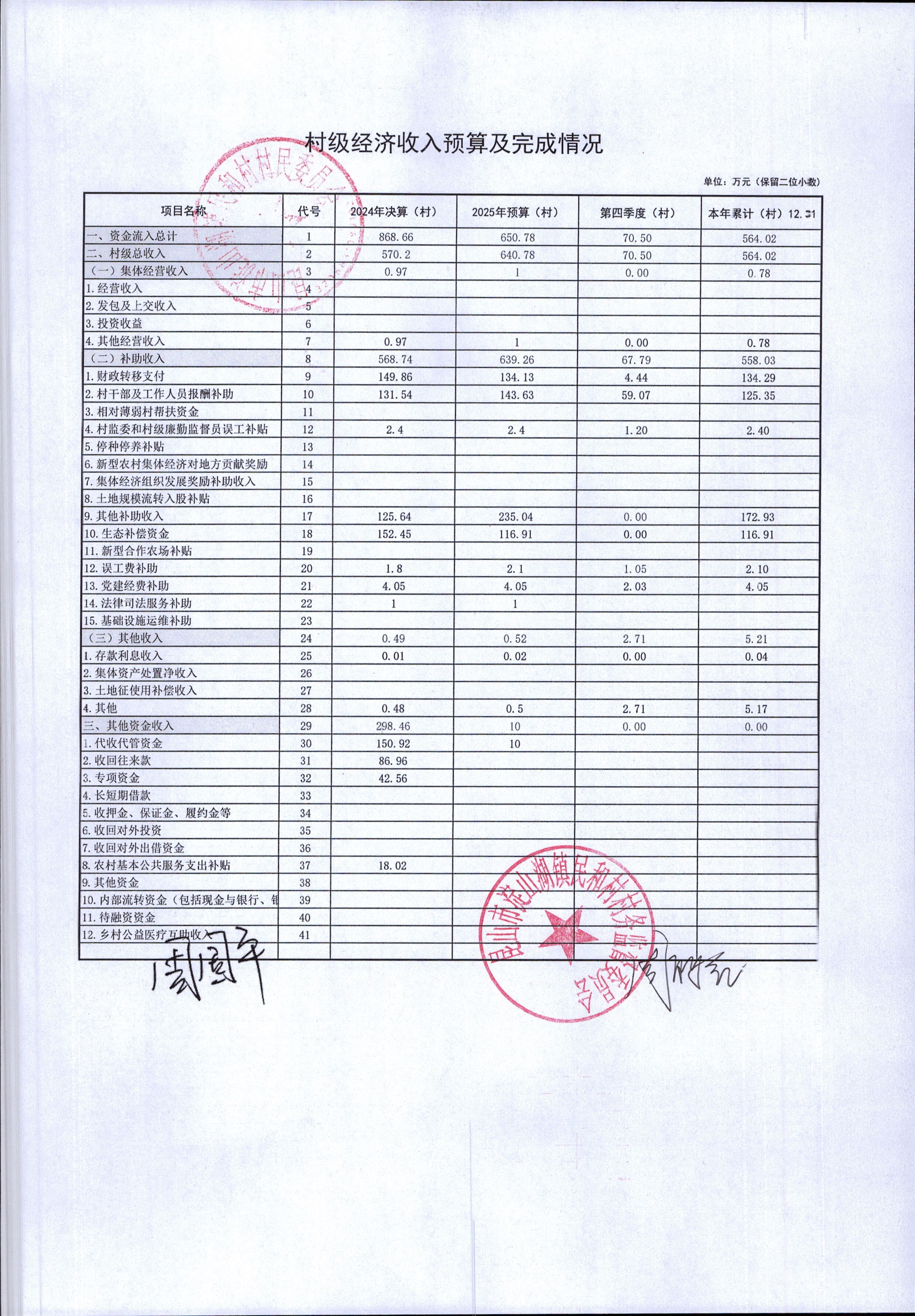 民和村第四季度村级经济收入预算、支出预算及完成情况公示