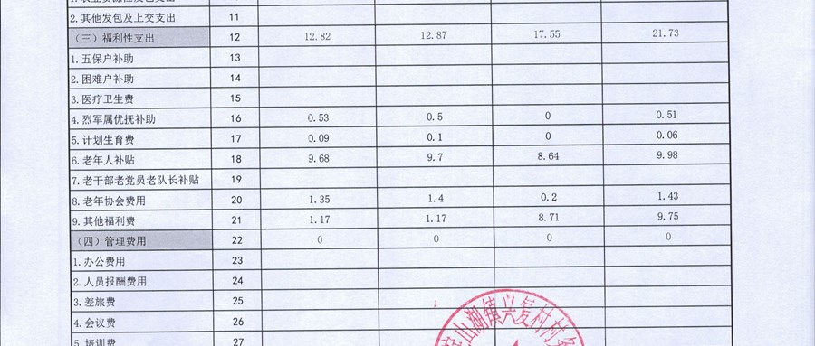 兴复村第四季度村级经济收入、支出预算及完成情况