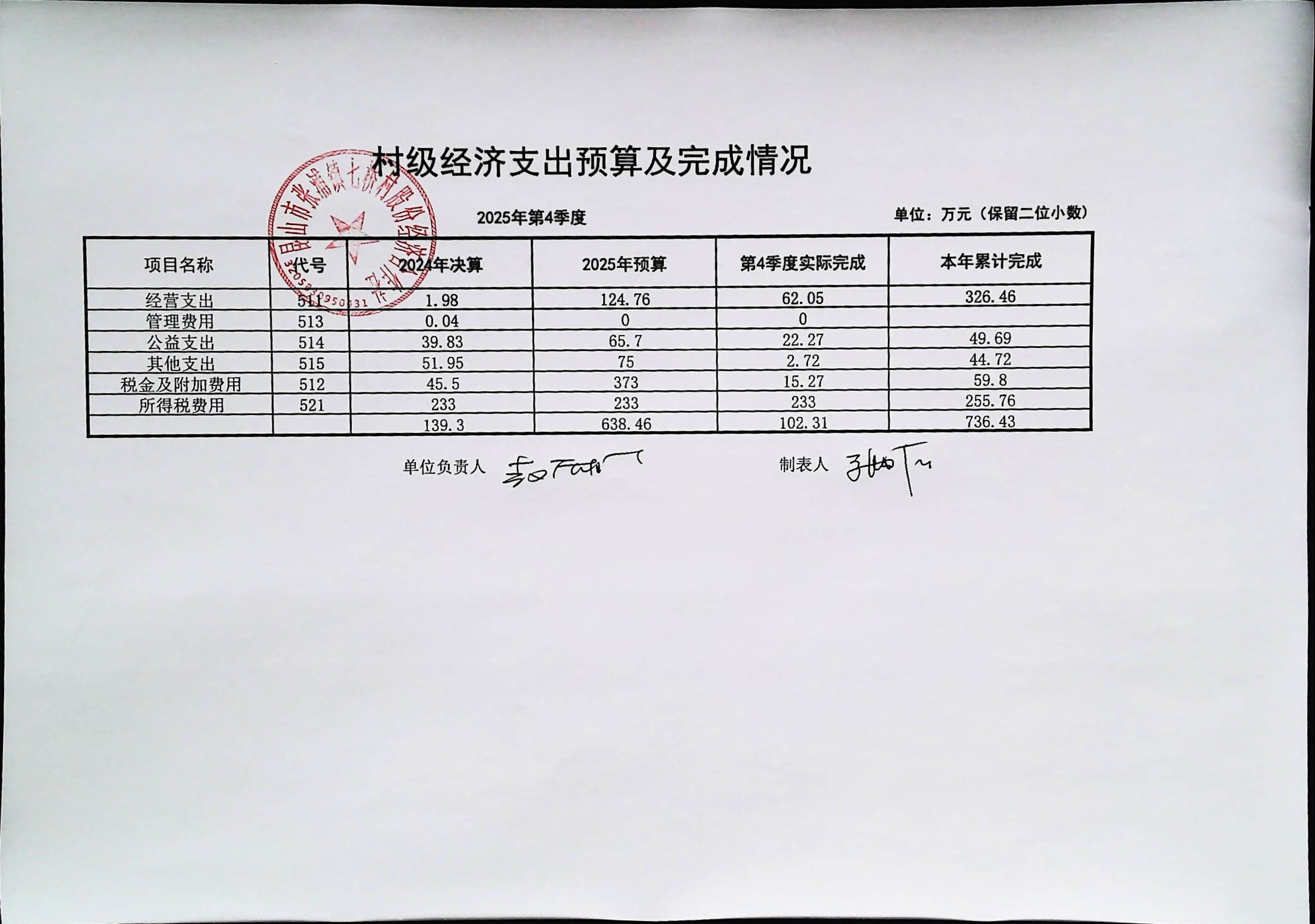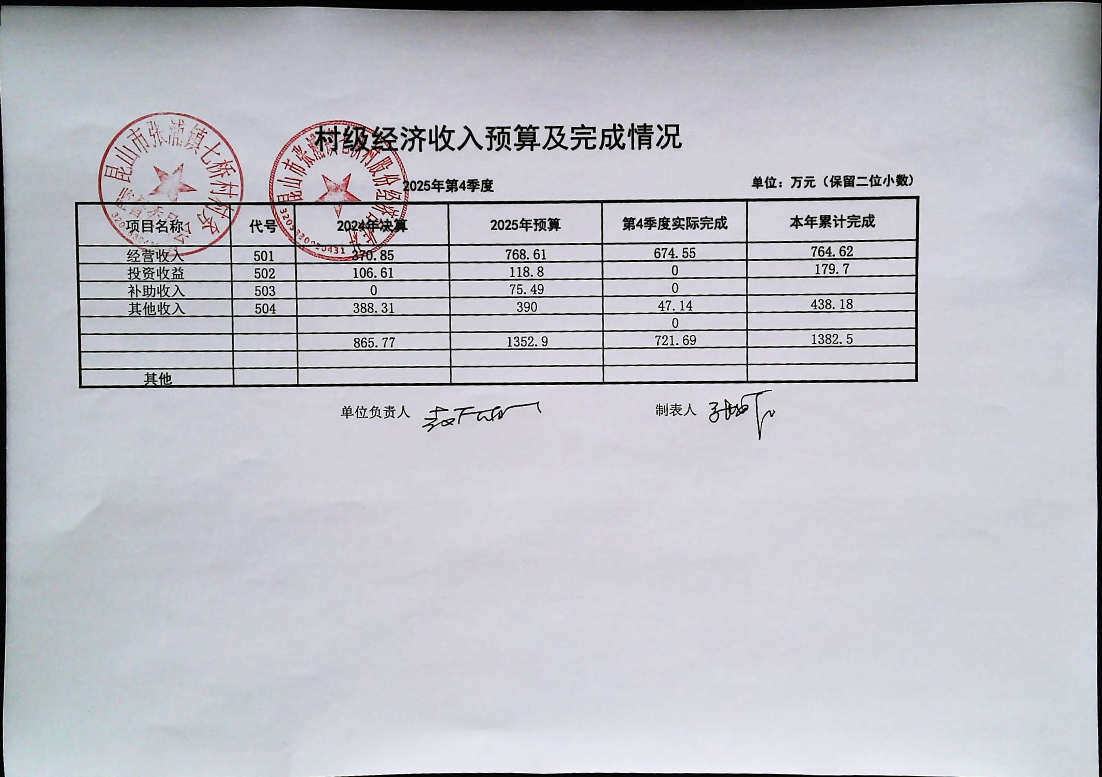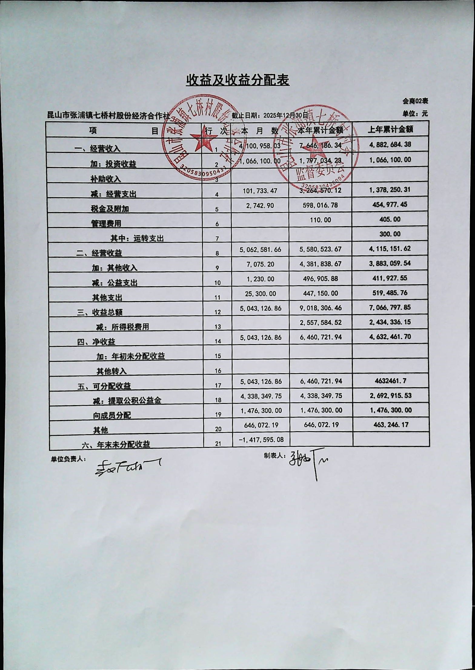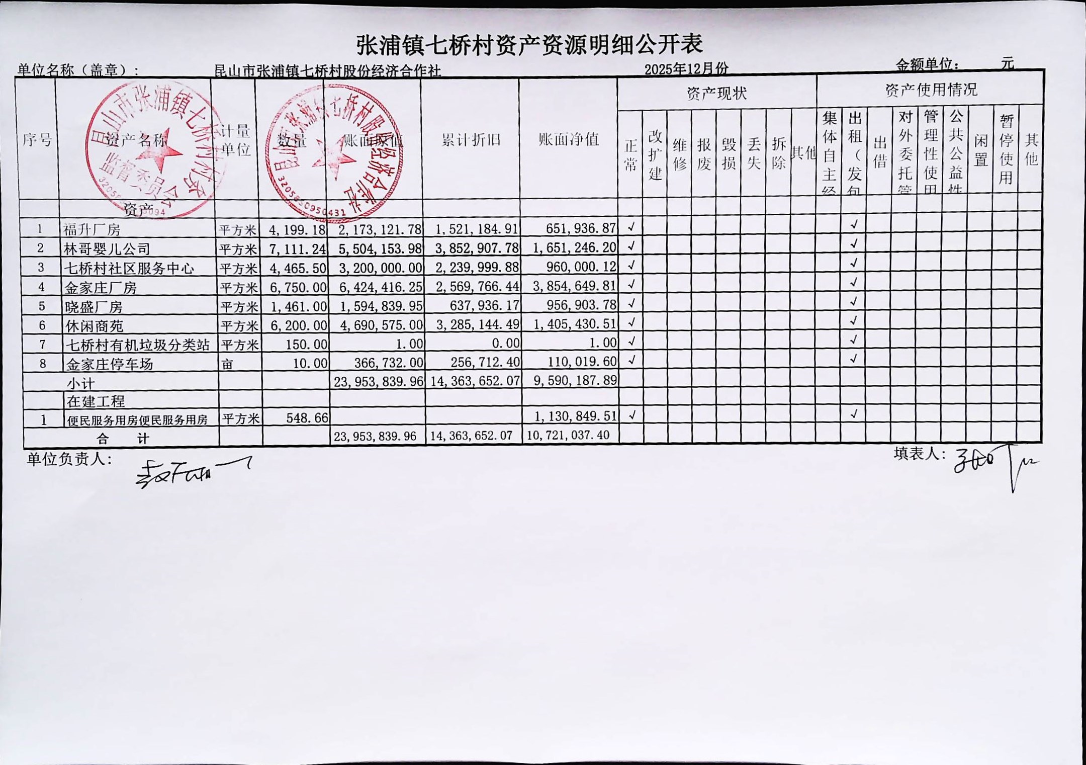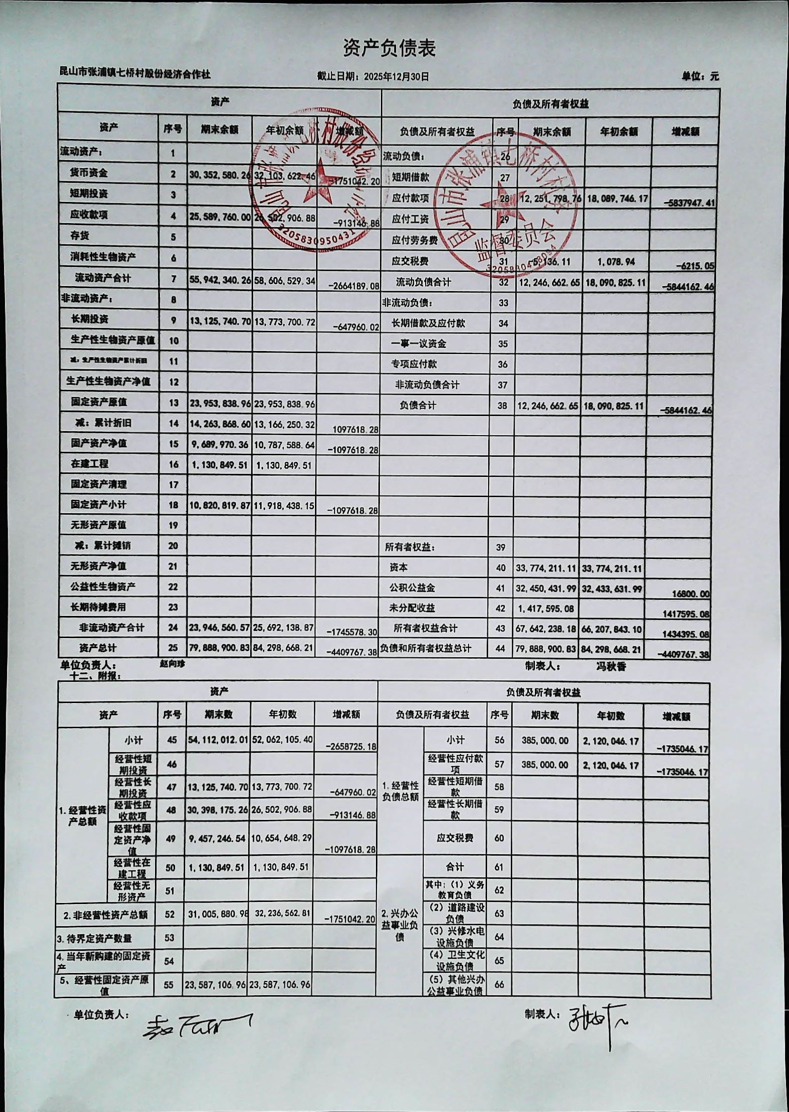 七桥村股份经济合作社2026年1月份财务公开