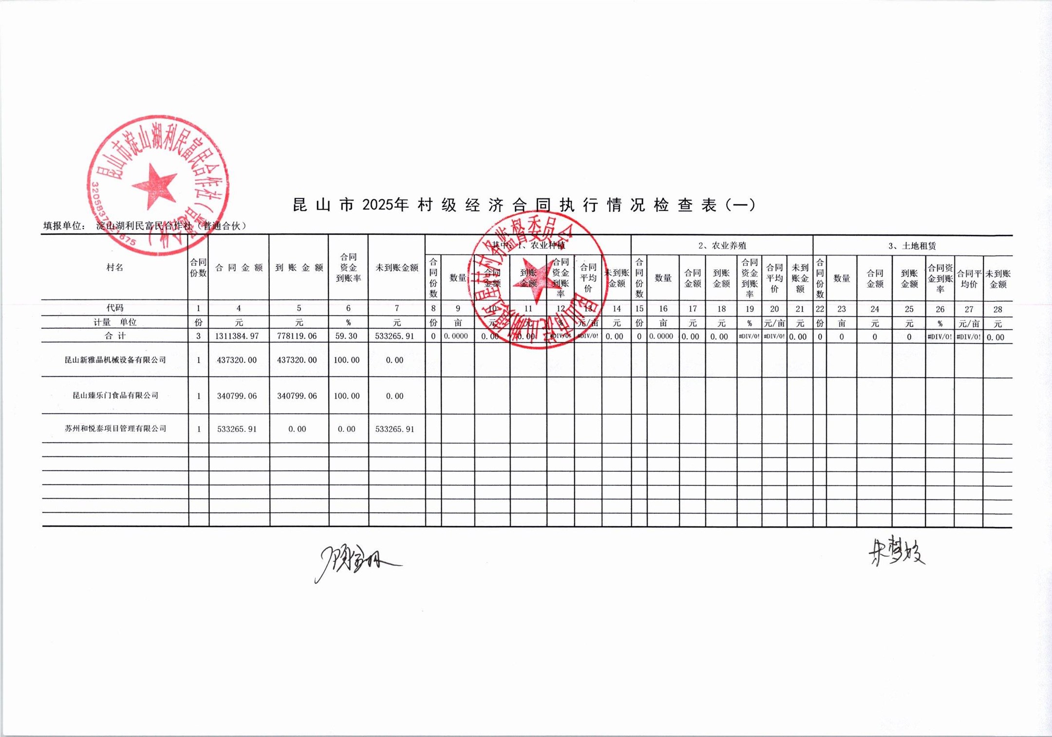 2025年第四季度经济合同执行情况公示