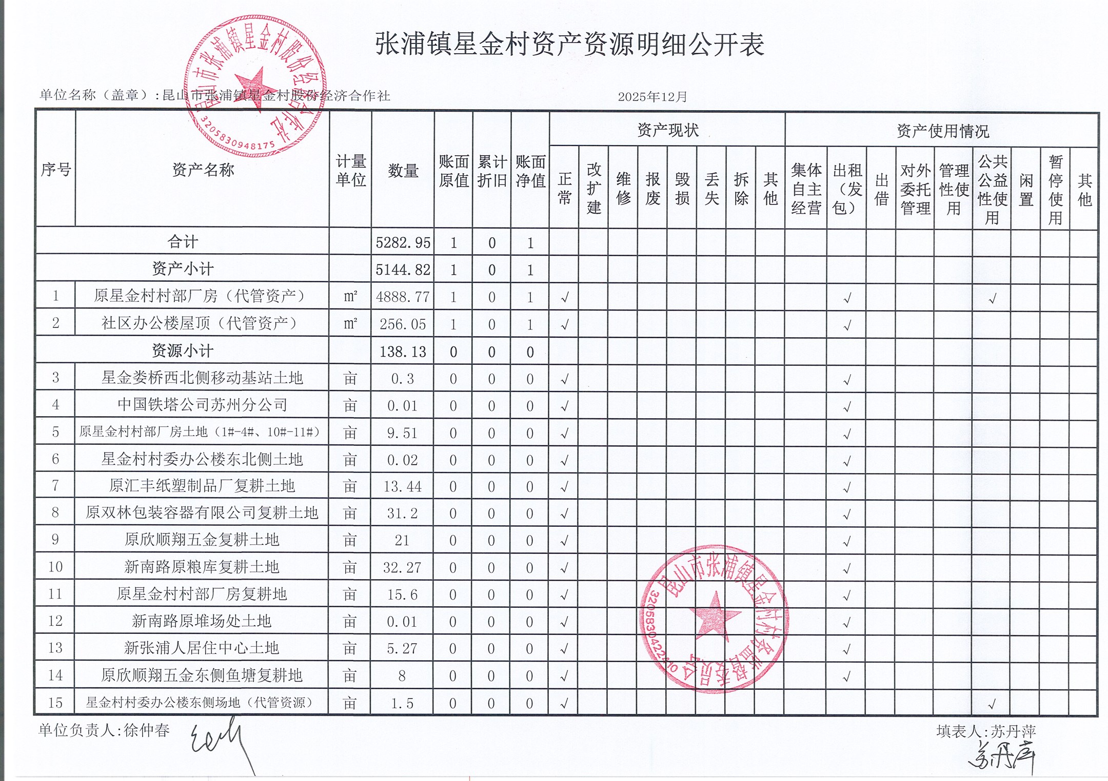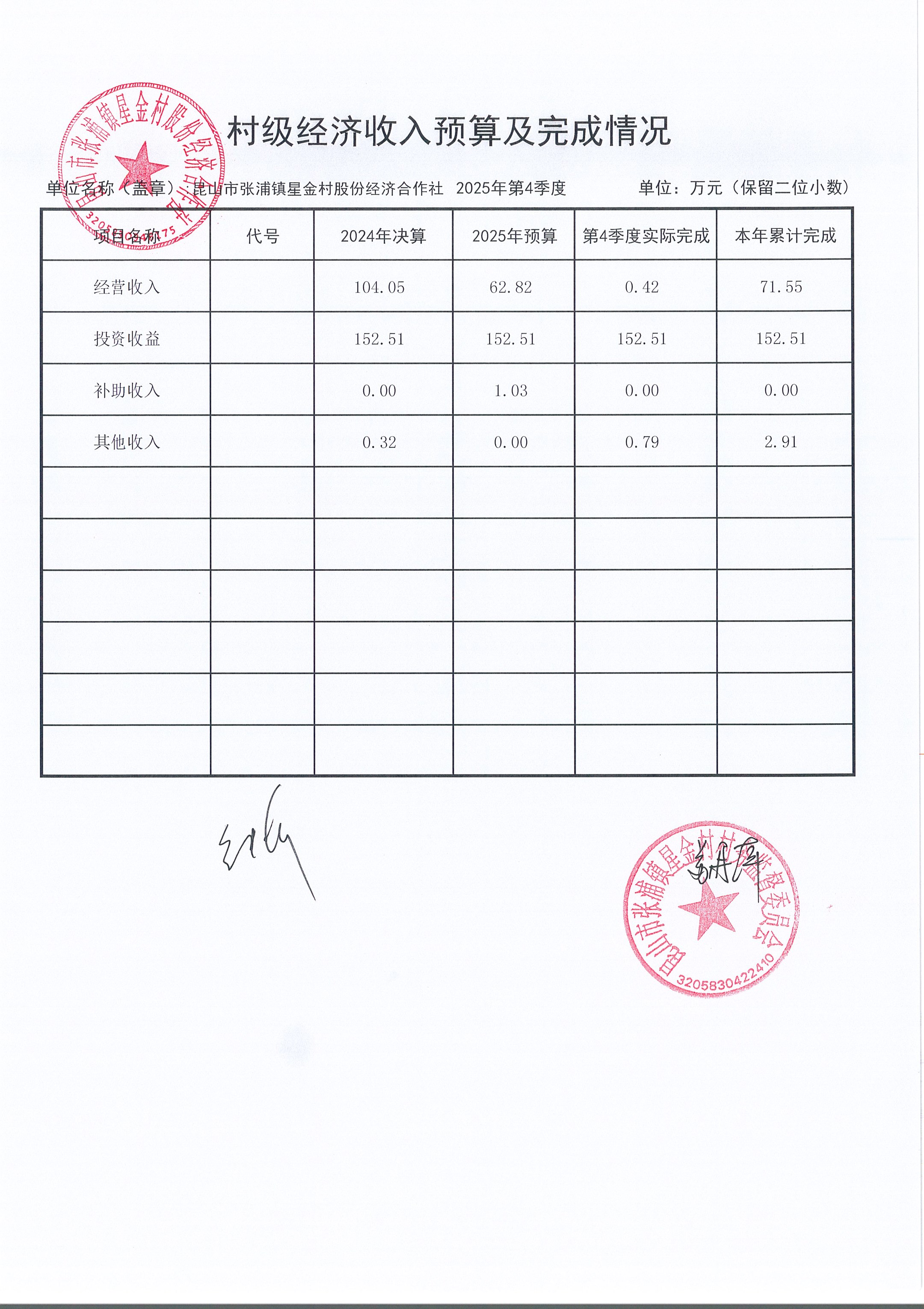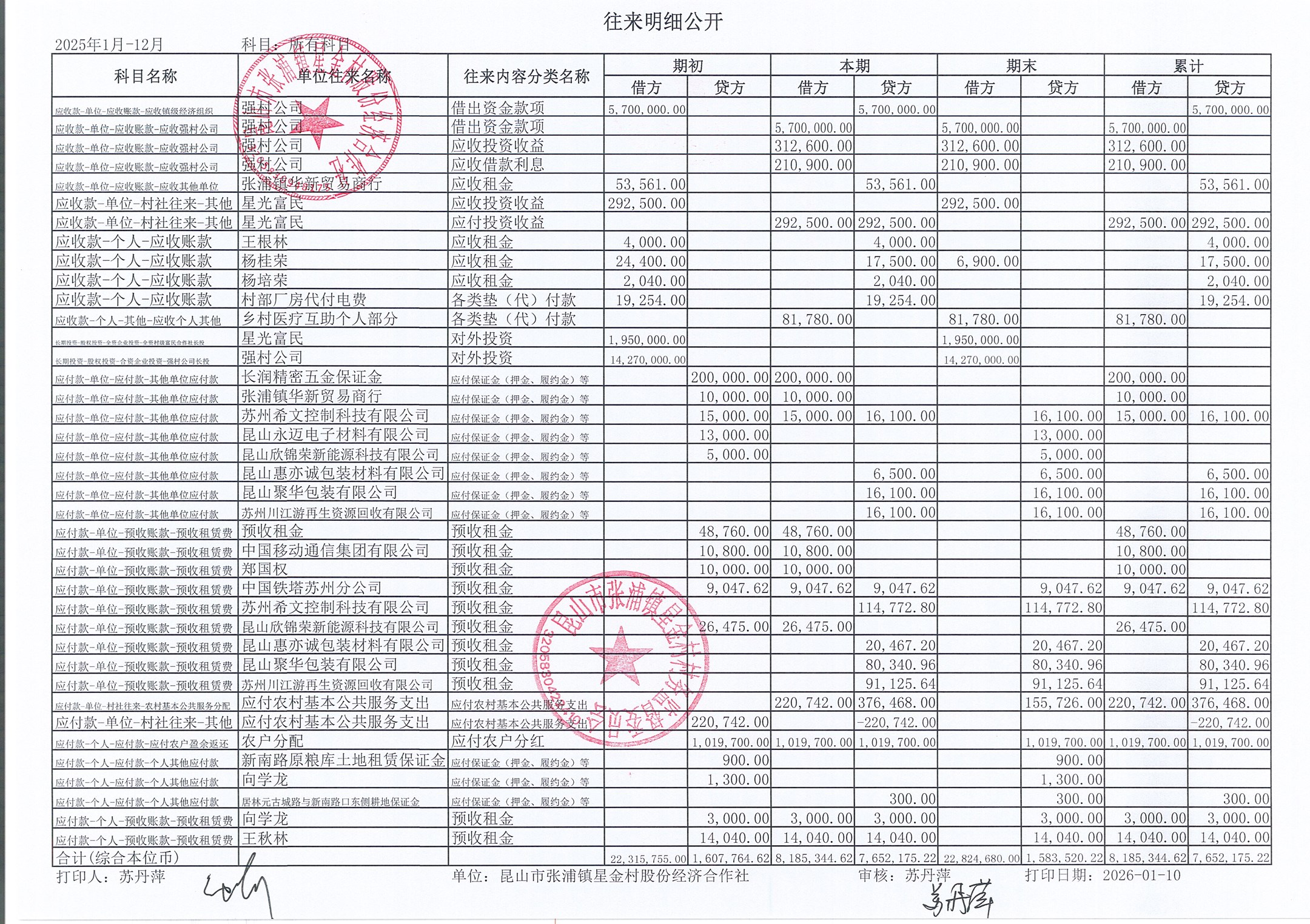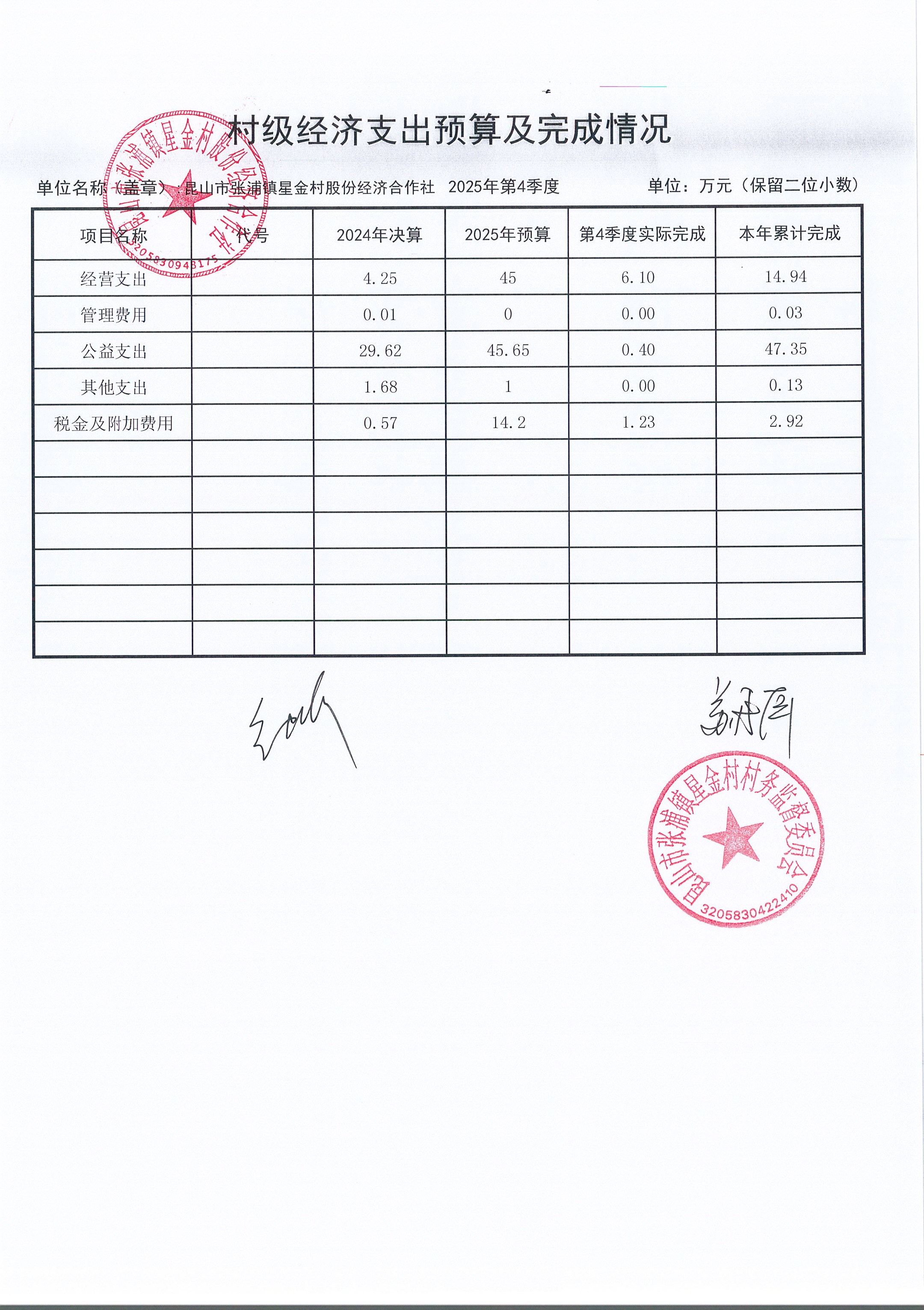 星金村股份经济合作社2025年12月财务公开