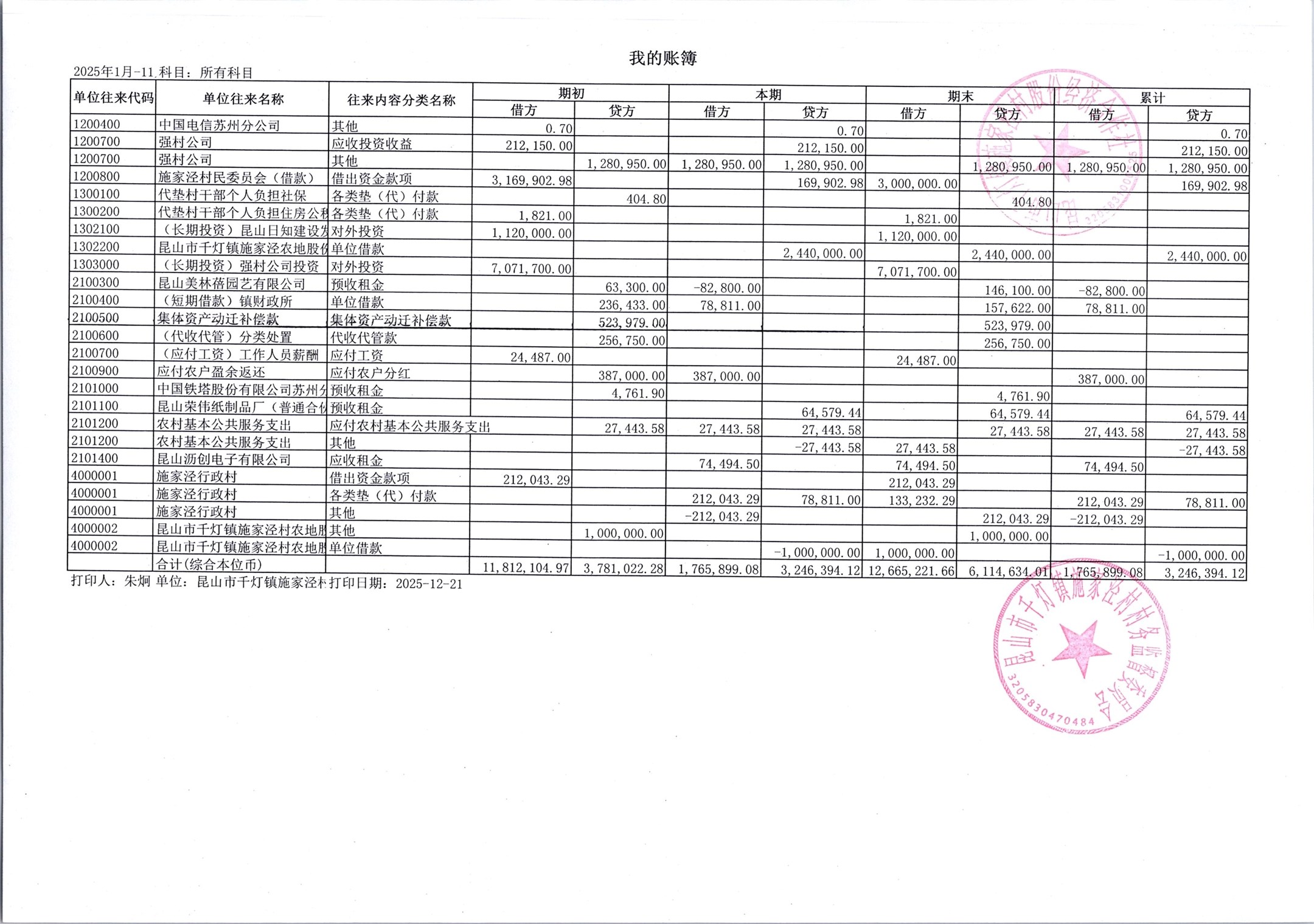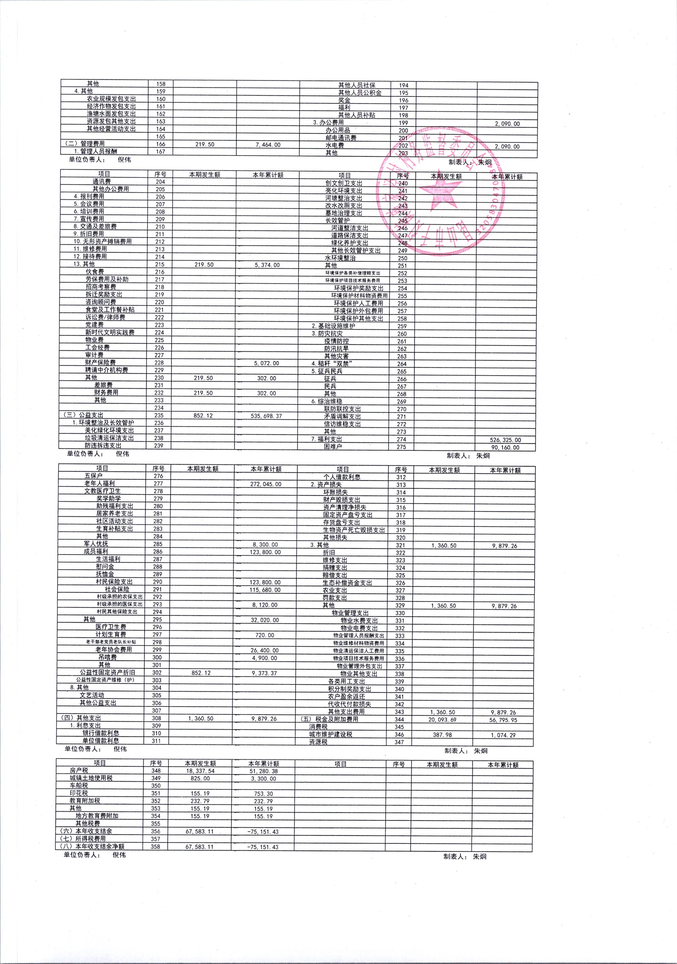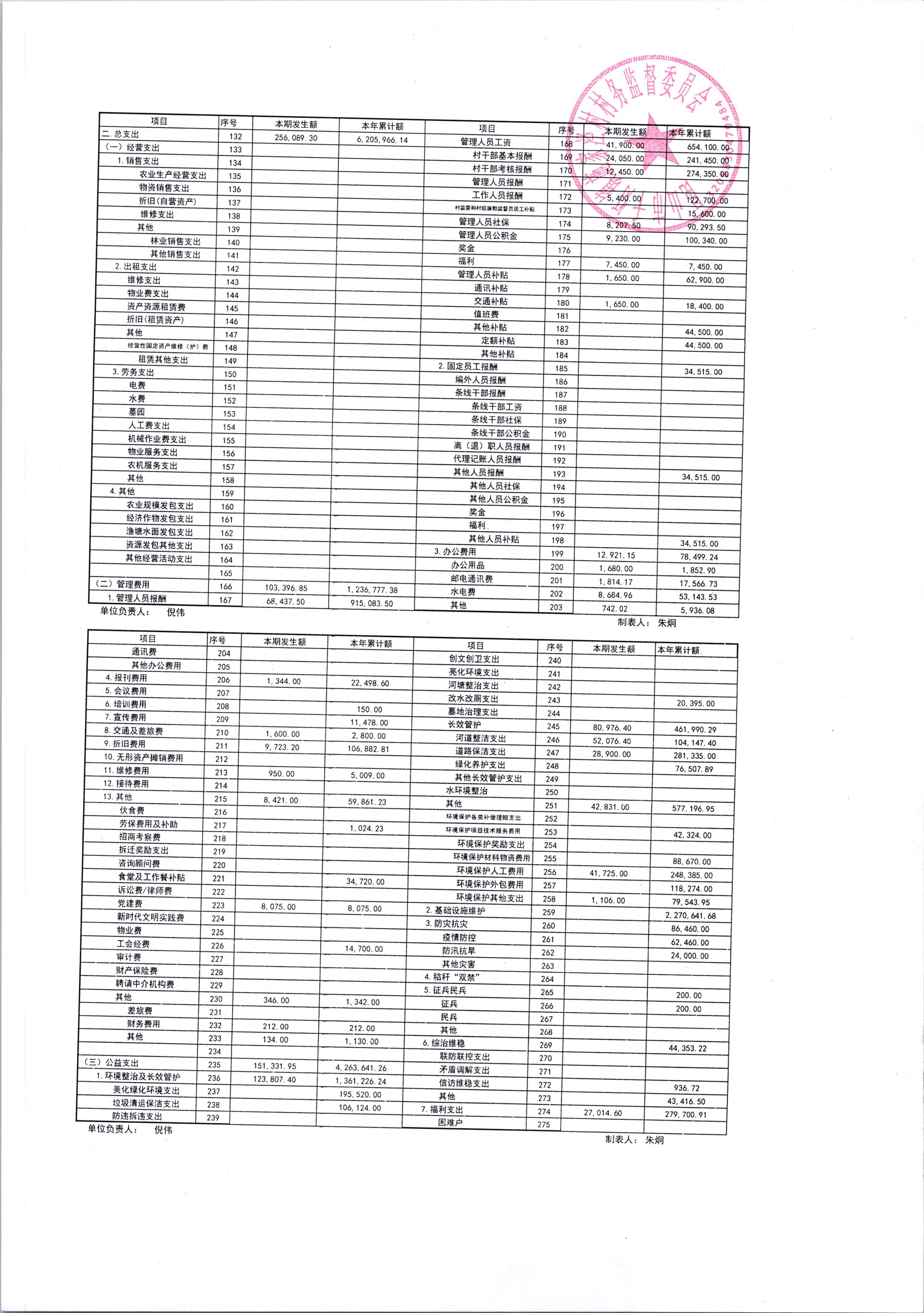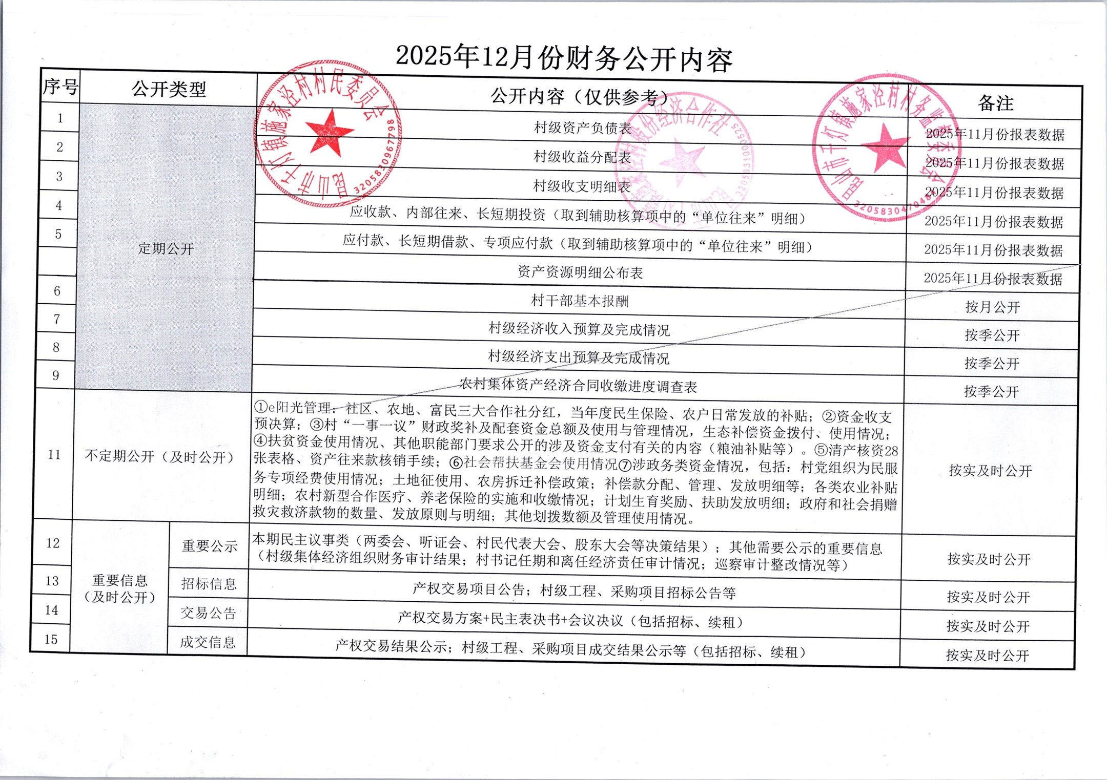 2025年12月份施家泾村财务公开