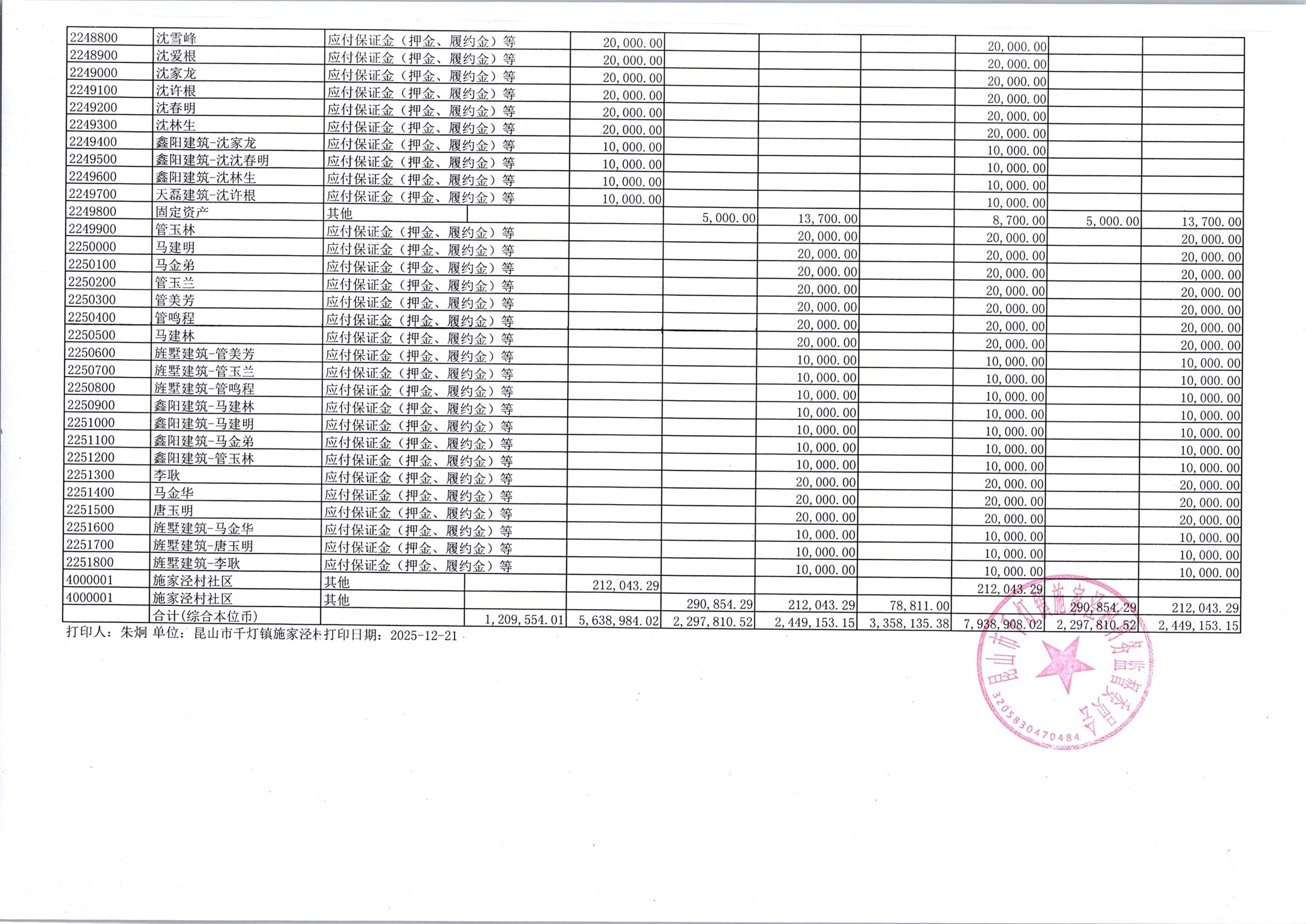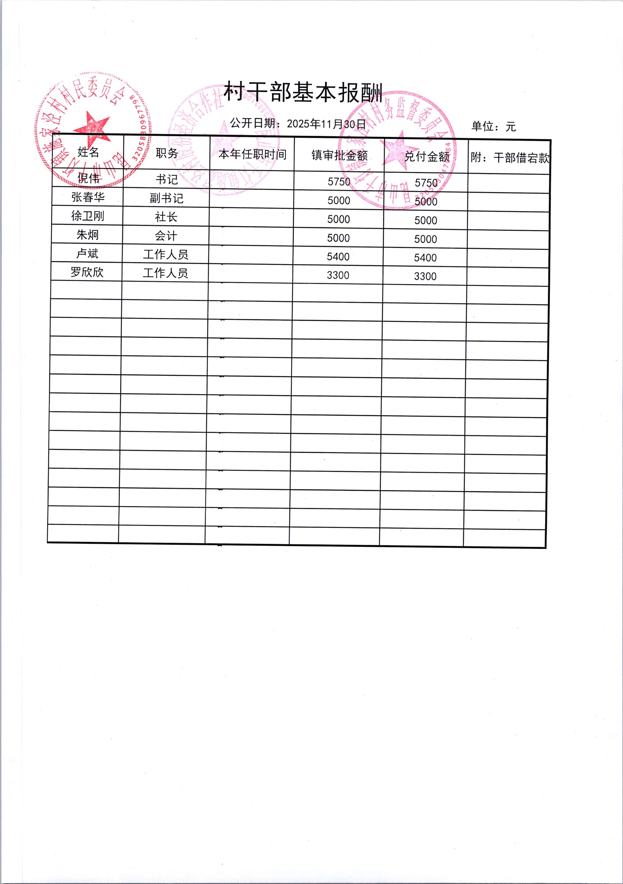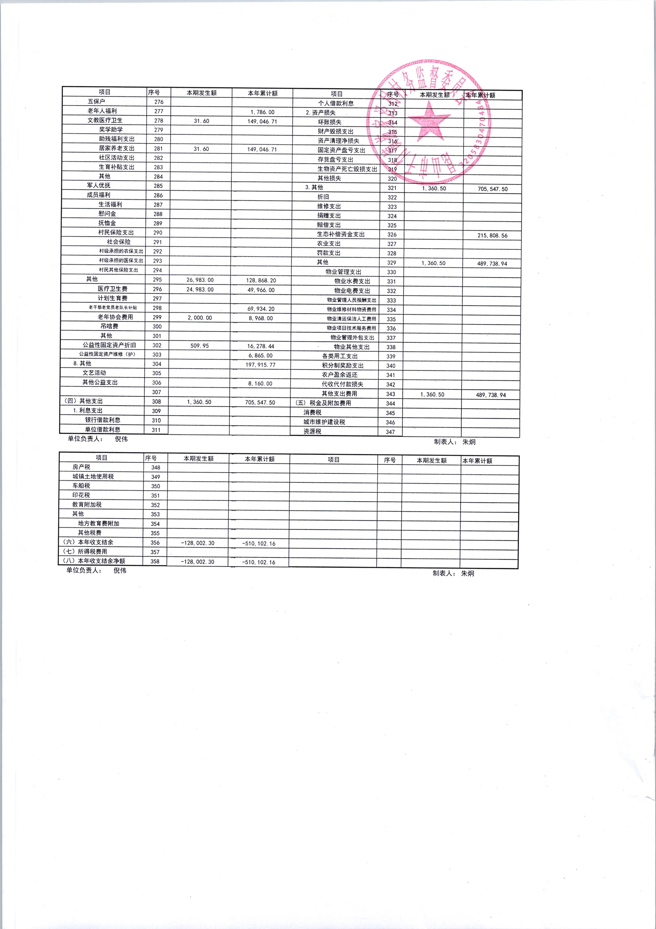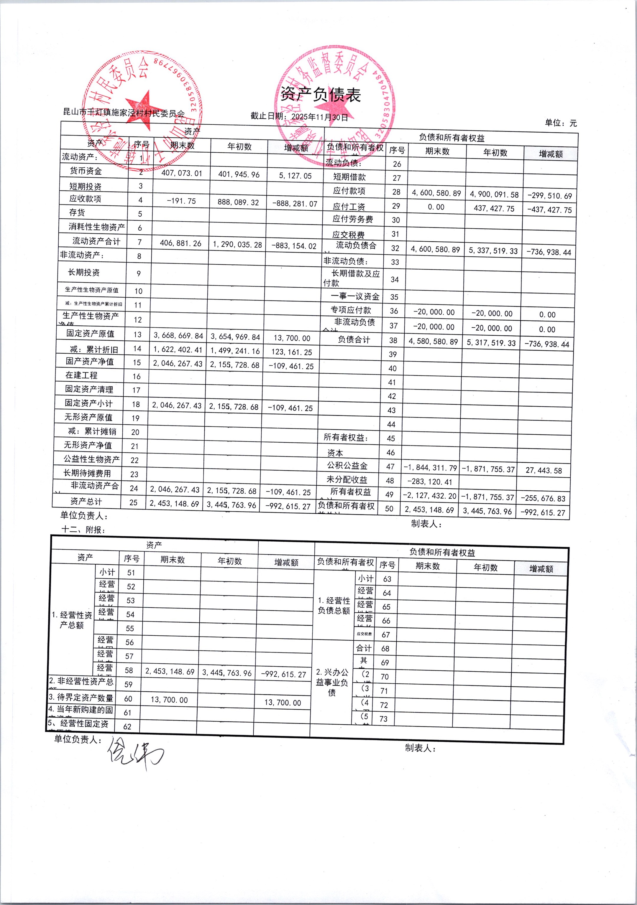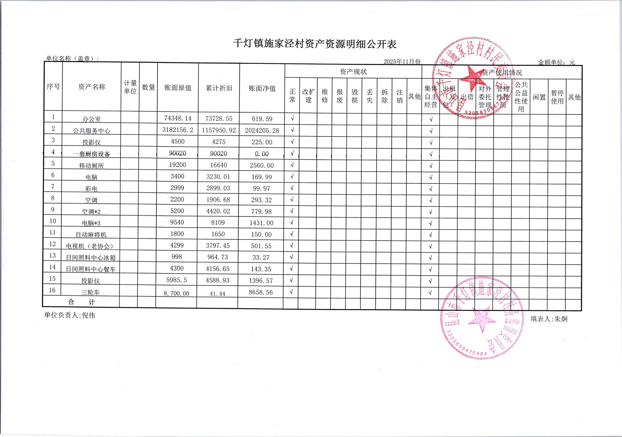2025年12月份施家泾村财务公开